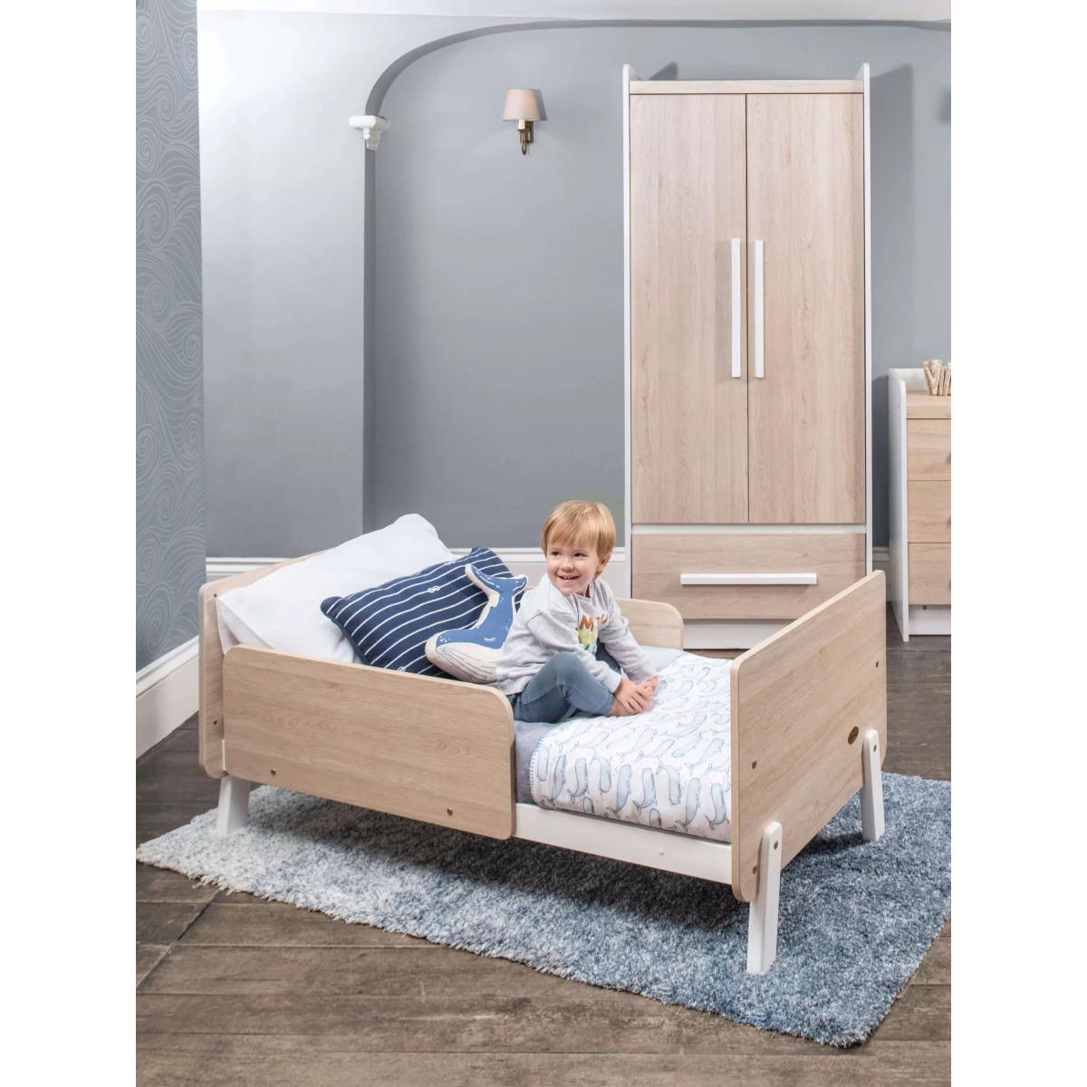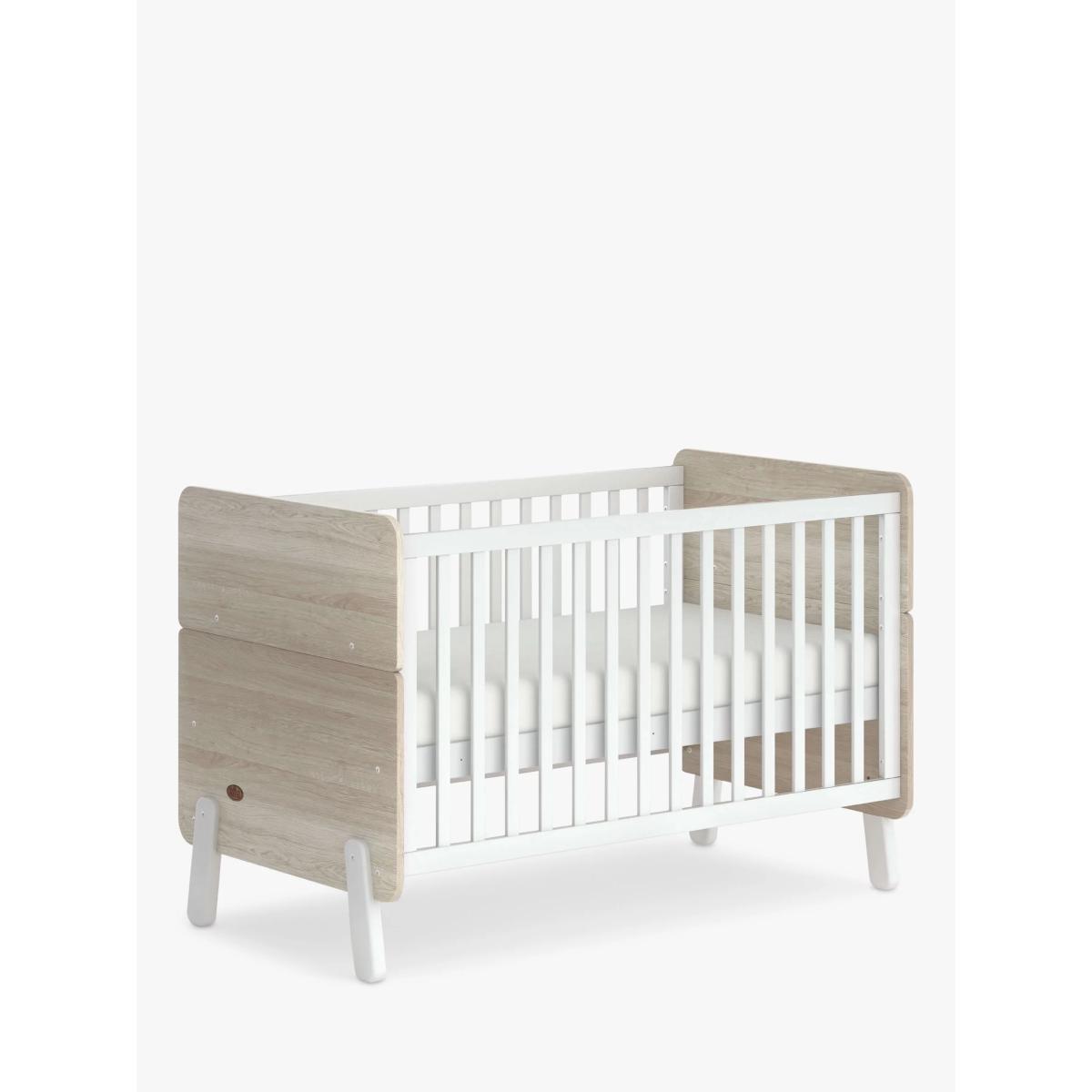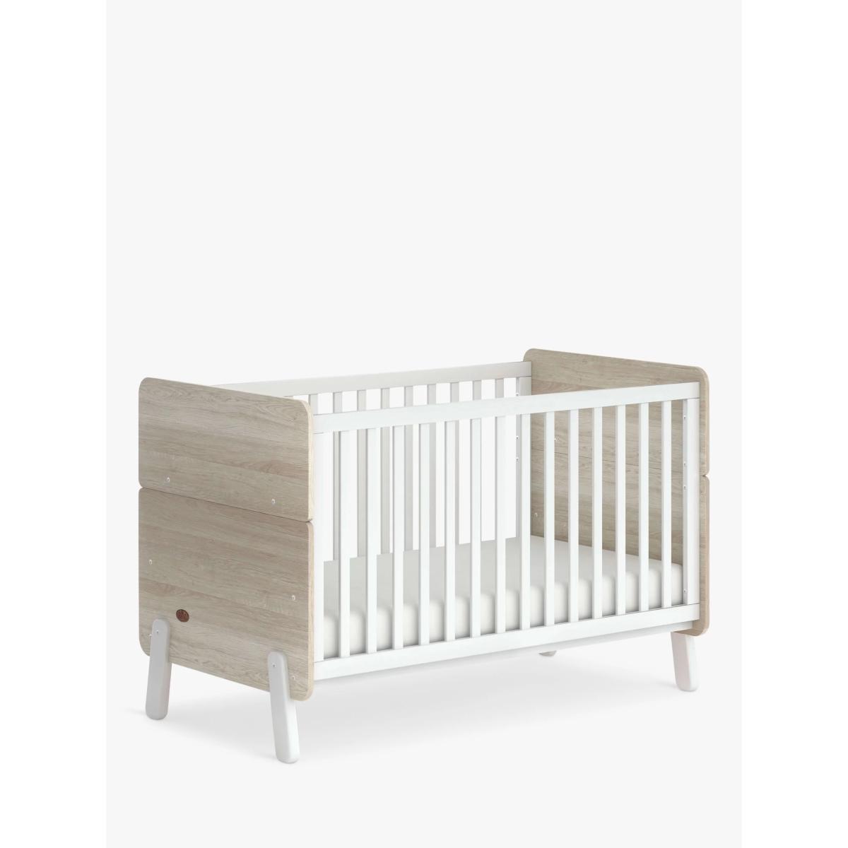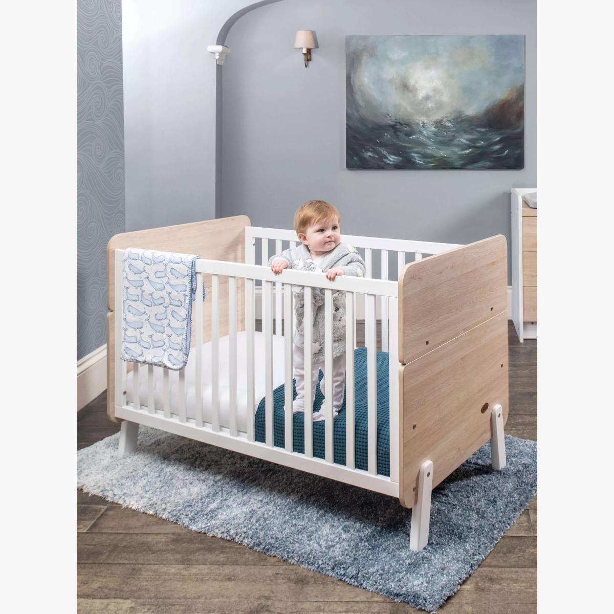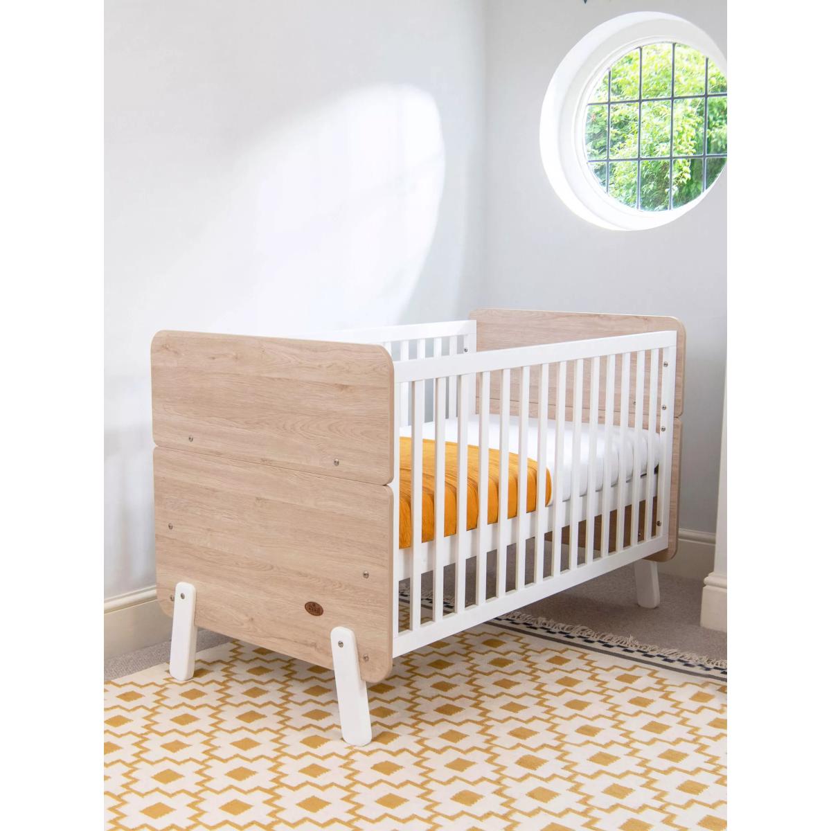 With rounded corners and playful angled feet, the Natty Cot Bed will make a charming addition to the nursery. Its modern aesthetic makes it perfect for those looking for a cot to fit in seamlessly with Scandinavian or contemporary design schemes. Designed to grow with your child, the Natty Cot Bed has two base height levels to accommodate for newborn and older babies. When the time comes it can then be transformed into a toddler bed with two guarded sides using parts from the cot end panels. No additional purchase required!. Key Features: Converts from cot to toddler bed suitable from birth to around 5 years with two guarded sides using parts from the cot end panels. No separate purchase of conversion kit required. 2 base heights - the higher base height for easy access to newborns, lower base height for when baby is able to pull themselves up. Crafted from a combination of engineered timber and sustainable solid Australian Araucaria Requires a L132 x W70cm mattress (included)