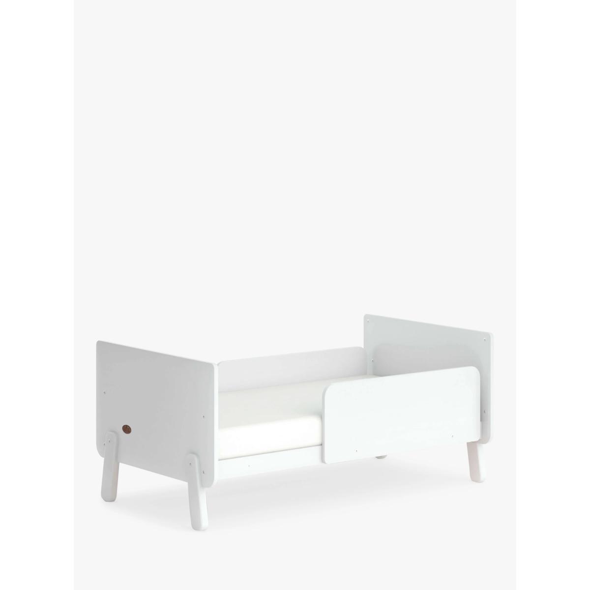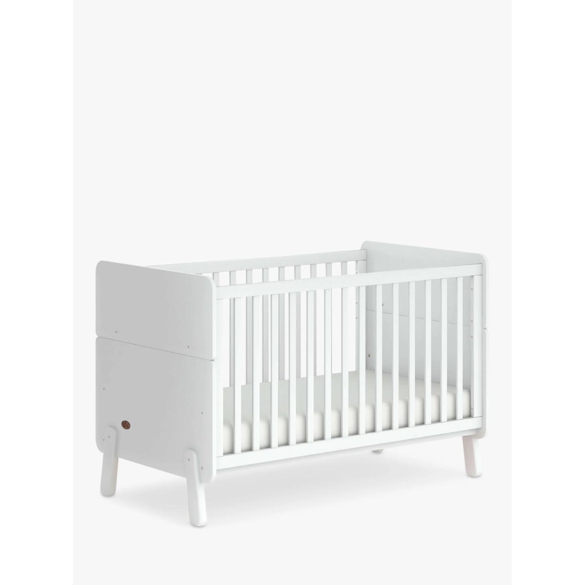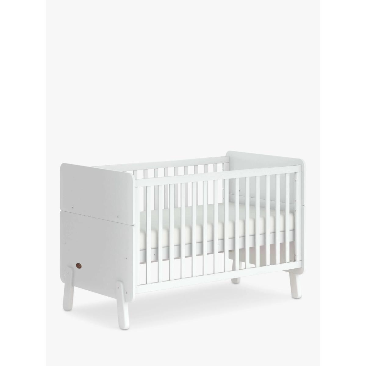 With rounded corners and playful angled feet, the Natty Cot Bed will make a charming addition to the nursery. Its modern aesthetic makes it perfect for those looking for a cot to fit in seamlessly with Scandinavian or contemporary design schemes. Designed to grow with your child, the Natty Cot Bed has two base height levels to accommodate for newborn and older babies. When the time comes it can then be transformed into a toddler bed with two guarded sides using parts from the cot end panels. No additional purchase required!. Key Features: Converts from cot to toddler bed suitable from birth to around 5 years with two guarded sides using parts from the cot end panels. No separate purchase of conversion kit required. 2 base heights - the higher base height for easy access to newborns, lower base height for when baby is able to pull themselves up. Crafted from a combination of engineered timber and sustainable solid Australian Araucaria Requires a L132 x W70cm mattress (included)