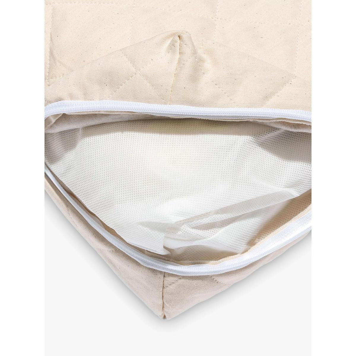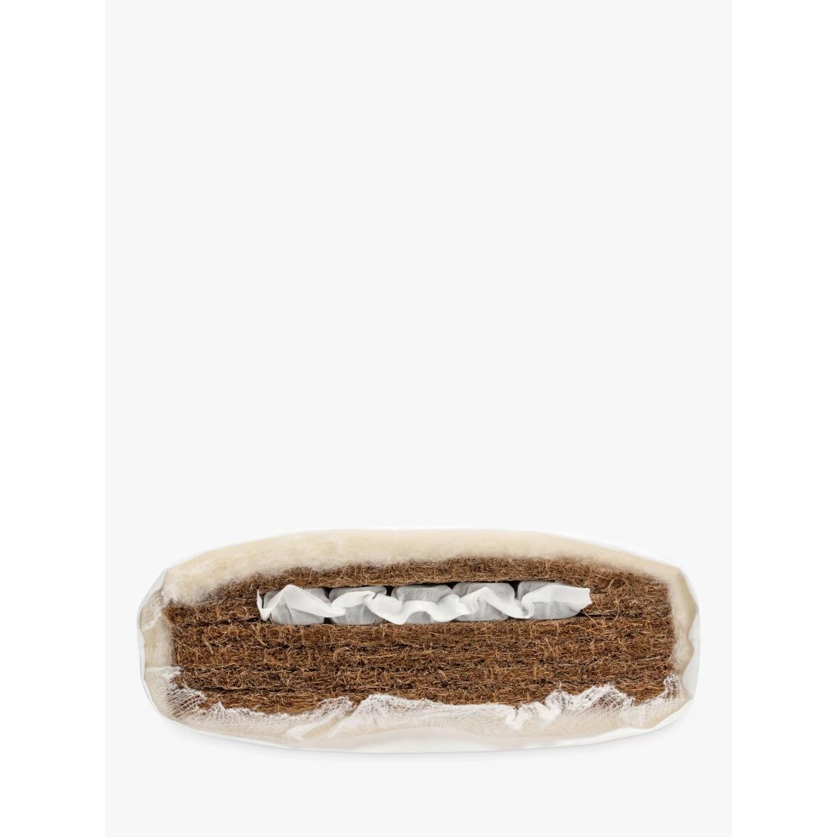 Boori’s natural pocket spring cotbed mattress is perfect if you’relooking for a natural option for your baby’s mattress, but don’t want to compromise on support and comfort. It’s handmade using a combination of high-quality natural organic materials including coconut coir fibres, latex and British wool that work together with individual high-count ‘Posturfil’ pocketed springs for increased airflow and optimum support. With its innovative Dual. Tech technology, the mattress features a firmer side for newborns and a softer side for toddlers to promote perfect posture for your little one. A wipe-clean inner care cover protects the mattress core and the herringbone quilted natural organic cotton twill cover is removable for easy cleaning. This mattress is not suitable for some older models of Boori cot beds. Please check the suitability sticker on the base of your cot bed as once opened, the product cannot be returned.