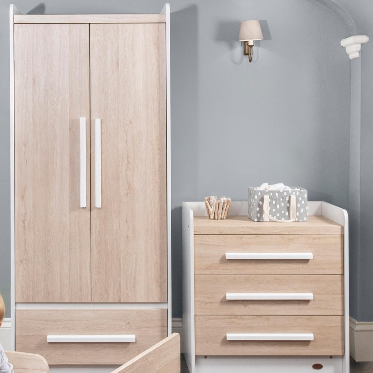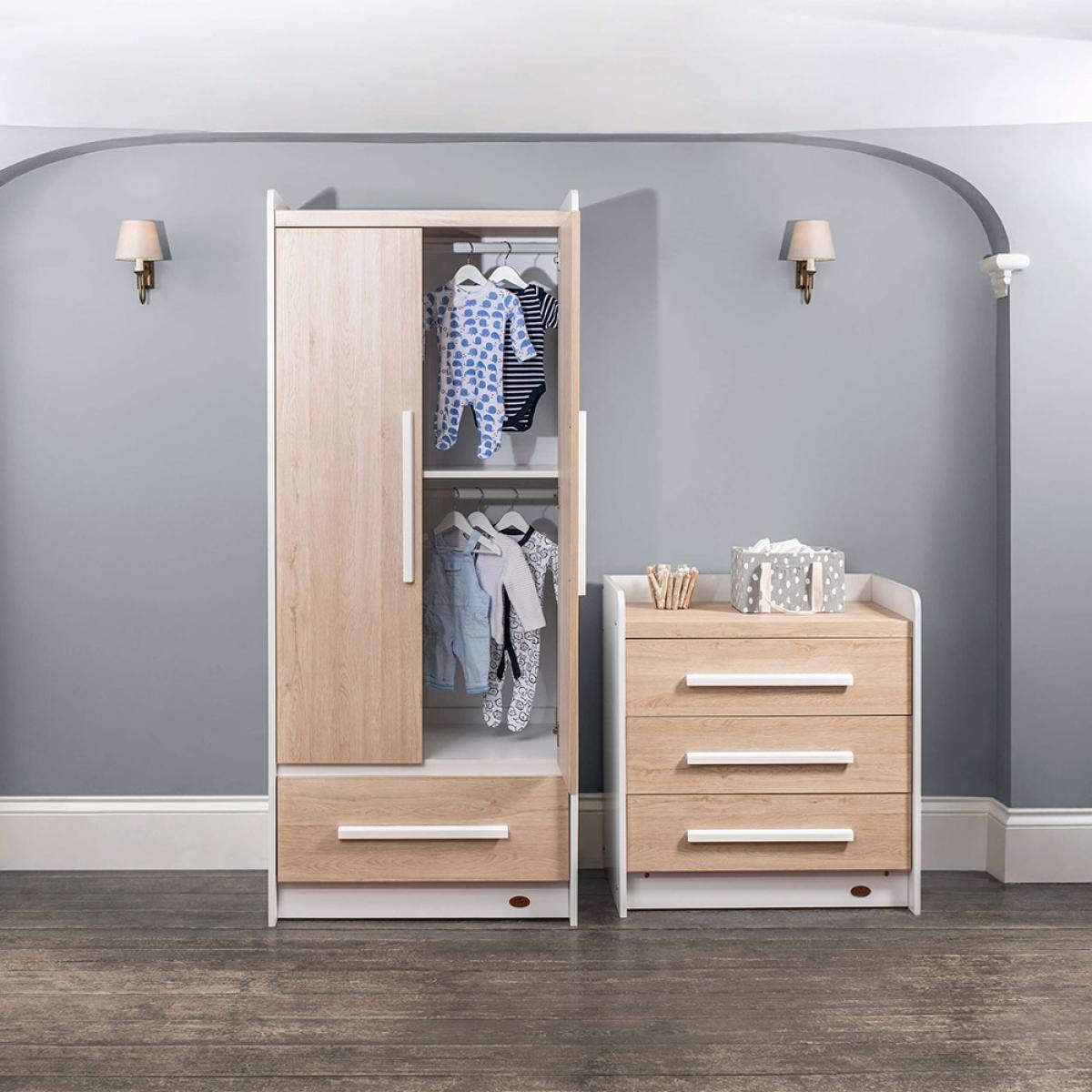 Hang and fold away all your tiny tot's little tees and trousers within the Neat 2 Door Wardrobe from Boori. No more excuses of your bambino's room being a mess, choose 2 hanging rails or 1 hanging rail and a shelf and keep those dinky outfits crinkle-free. Offering ample room for storing those 'next size up' purchases all ready for when your dinky delight has a growth spurt! With two neutral colourways available, whether you're expecting a boy or girl, either will blend perfectly into any nursery interior. Once talking and walking have been achieved, teach your little one to be tidy. With hopefully no more trip hazards hanging around! With a full width drawer for all other essentials, maybe store spare bedding, their favourite cuddly toys or those bedtime books!.