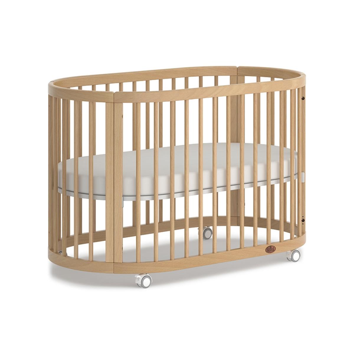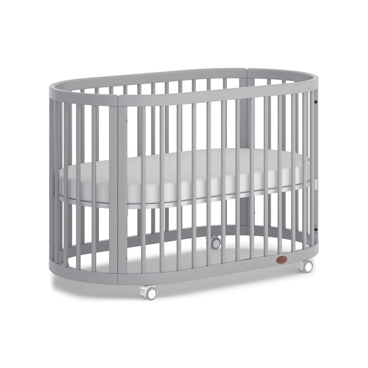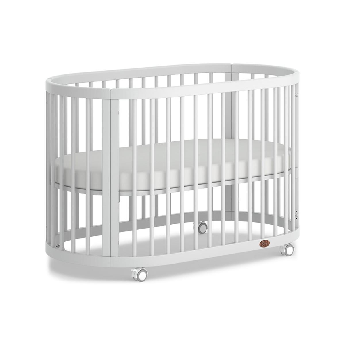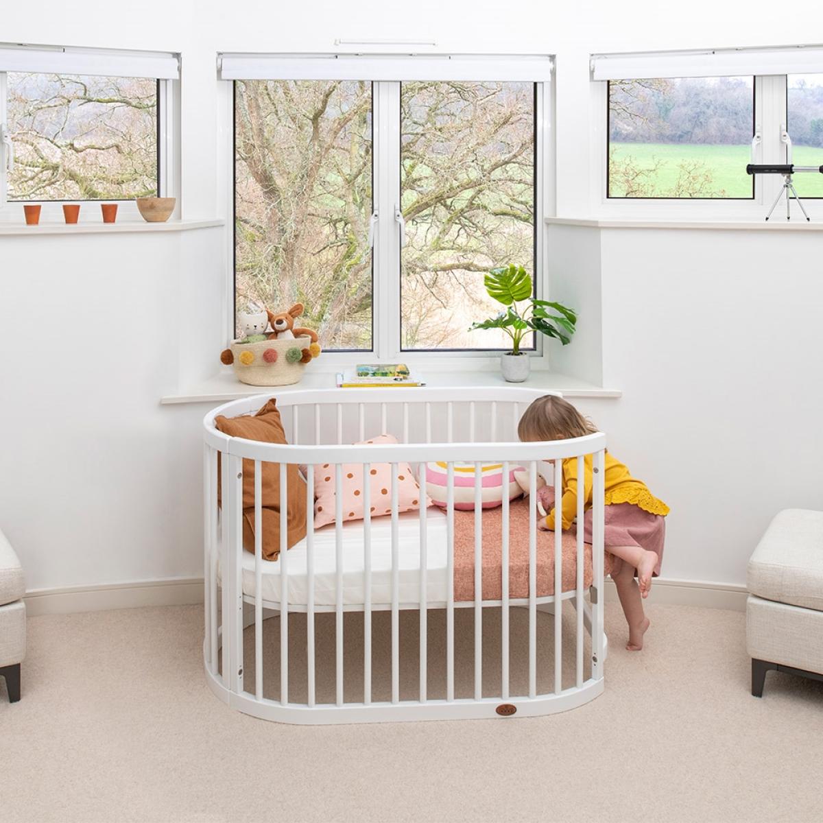 Create a calm and soothing nursery with the Boori Oasis Oval Cot. Skillfully crafted from sustainable solid wood and finished with child-safe paints; both cot and baby will be protected. Featuring open spindle sides and lockable castors; perfect for keeping a close eye on them while they're sleeping or to be used as a stylish bedside sleeper when the little one isn't able to settle. With the 2 mattress base heights integrated, transform to suit their development, making sure they are safe and secure at all times! Once the cot has been outgrown simply transform into a toddler bed to develop their independence further. With 3 neutral colours to choose from, whether you're expecting a girl, boy or waiting for a surprise, all 3 colours will blend beautifully with existing décor. Let the excitement commence and be sure you're all prepared for their arrival!.