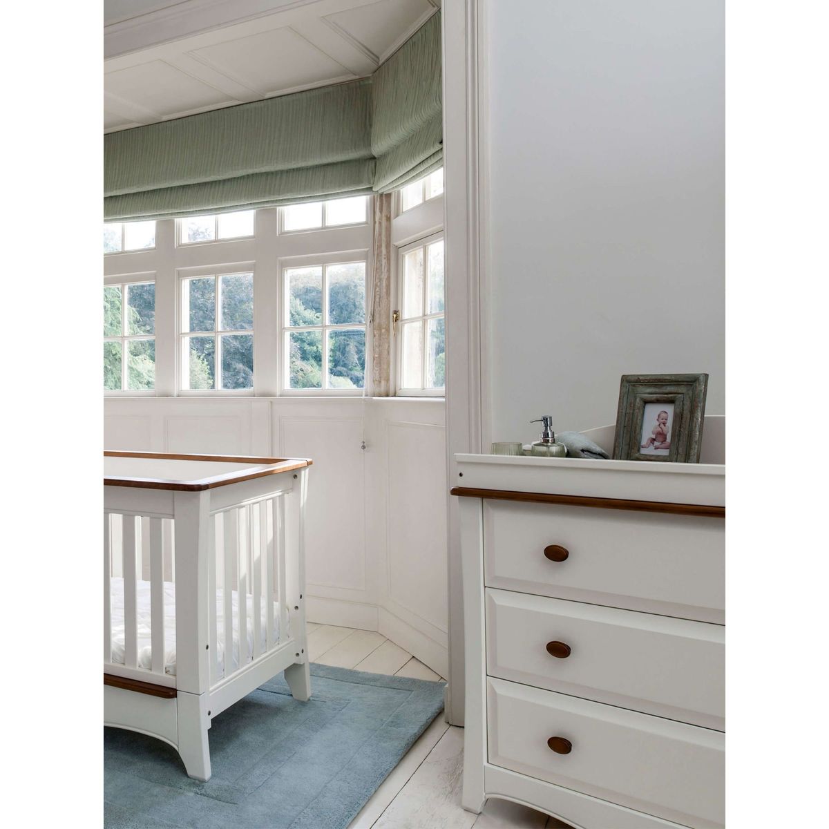 The charming elegance of this French-inspired collection gives a touch of subtle sophistication to any nursery. This dresser has 3 deep and fully extendible storage drawers for maximum storage and easy access. It comes with a changing station with a bell curve design that sits on top of the dresser, or can be removed. The matching Provence wardrobe and cotbed is also available in this range.