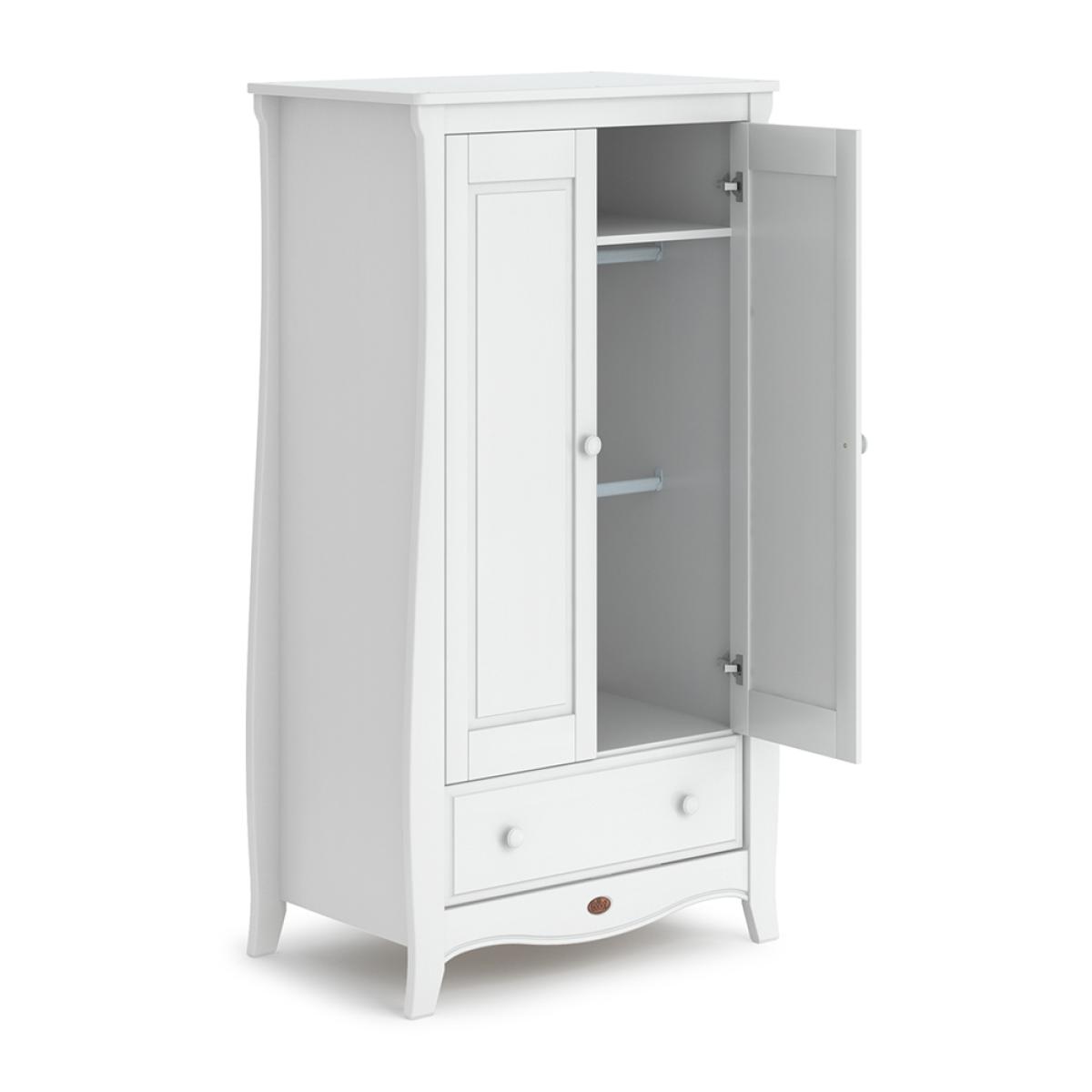 Sturdy, stylish and spacious. The Sleigh 2 Door Wardrobe from Boori has it all. Featuring 1 large, fully extendable drawer with a storage shelf and hanging rail, your bambino's essentials can be stored away neatly. With ample room for storing away those 'next size up' purchases all ready for when your dinky delight has a growth spurt! Available in two neutral colourways, whether you're expecting a boy or girl, either colour will blend perfectly into existing nursery décor. And once talking and walking have been mastered, your little man or miss can finally start their independent stage choosing how to lay out their clothes and essentials within. Match together with other items from the collection, making sure you have everything ready for your little one's arrival!.