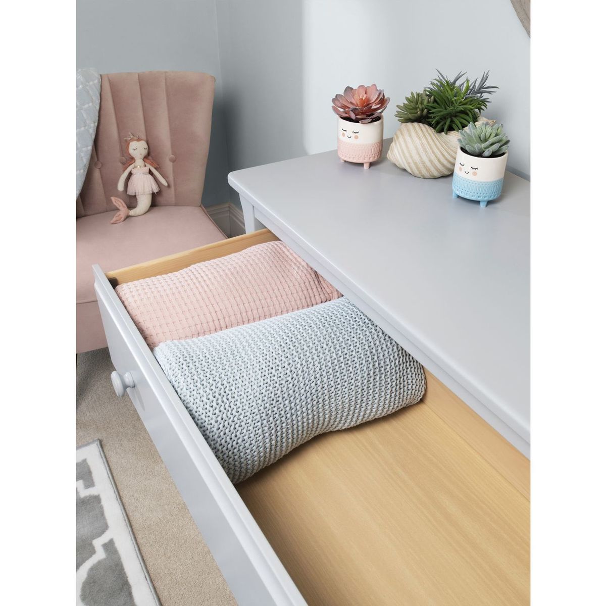 I love this chest in its Pebble tone, as it offers a subtle, neutral look that pairs well with both traditional and contemporary children’s rooms. Its classic sleigh design adds a touch of charm without feeling overly ornate, making it versatile for various themes. It works particularly well in spaces styled with soft pastel palettes or muted tones, subtly anchoring the room’s colour scheme. For practical styling, consider pairing it with rounded or textured accessories - like soft fabric toys, woven baskets, or simple wall art - to create a balanced, inviting space. This piece also works beautifully in nursery setups or older children’s bedrooms where durability and timeless style are priorities.