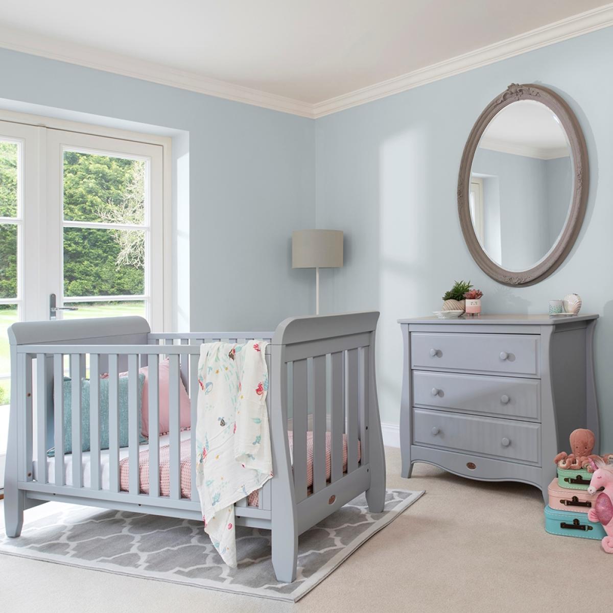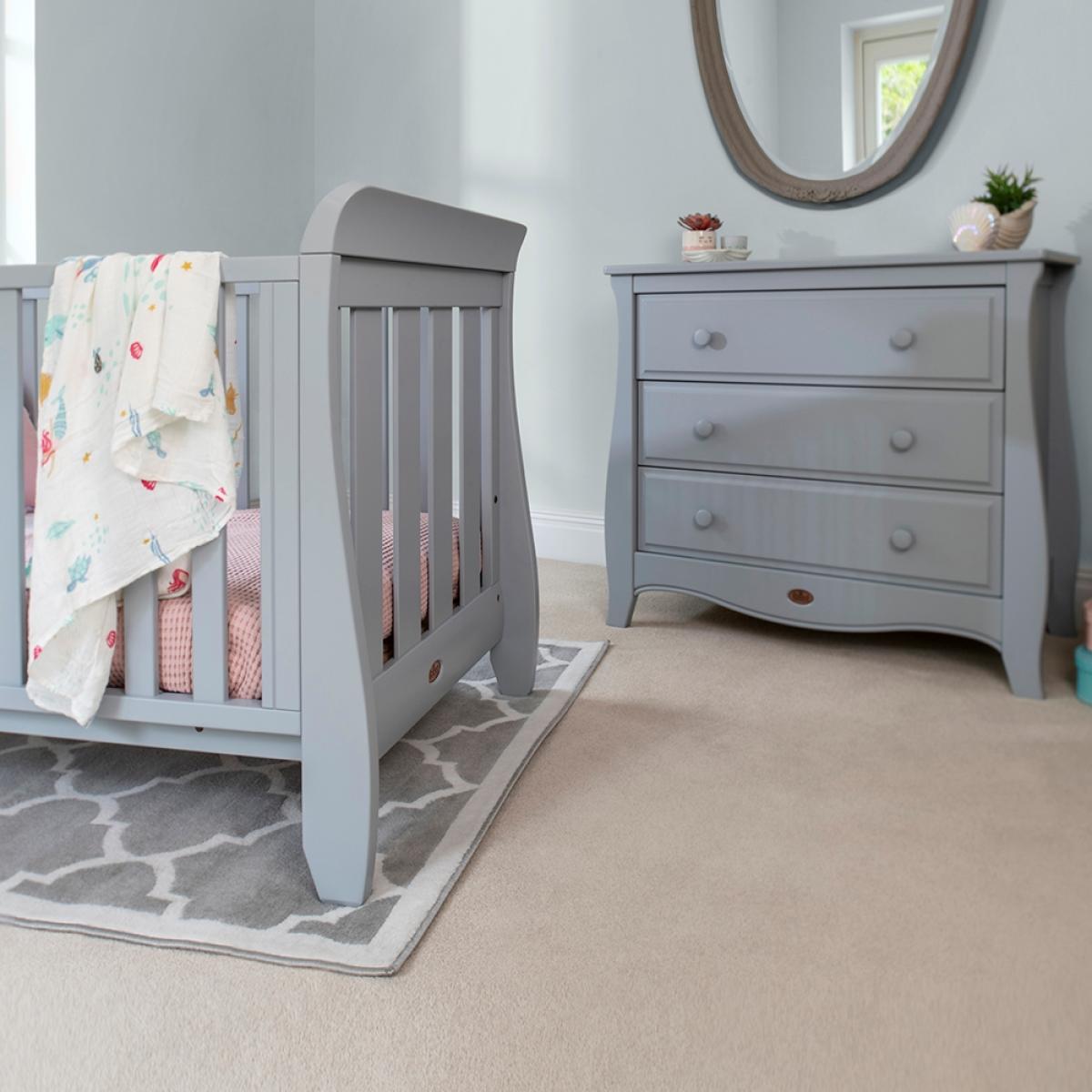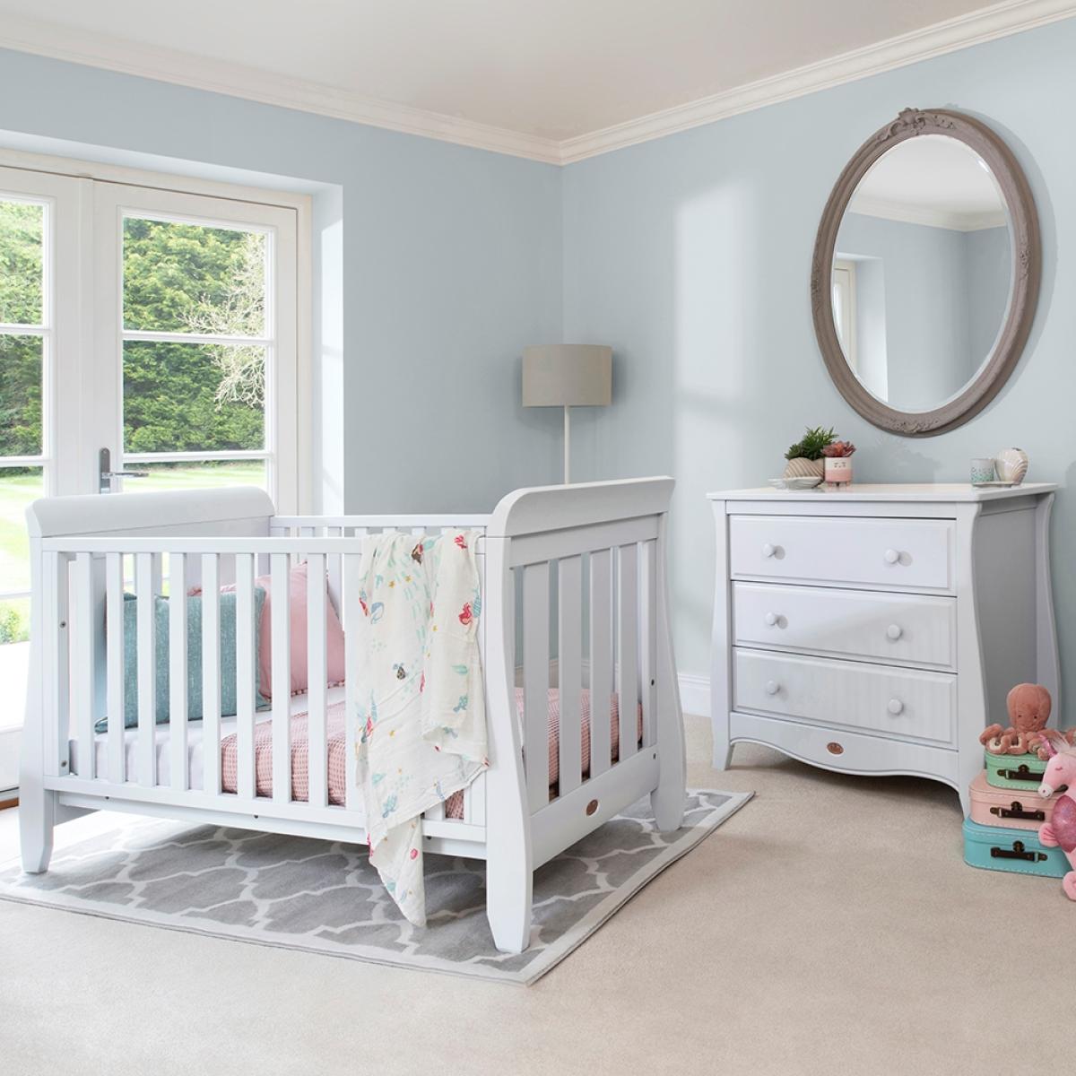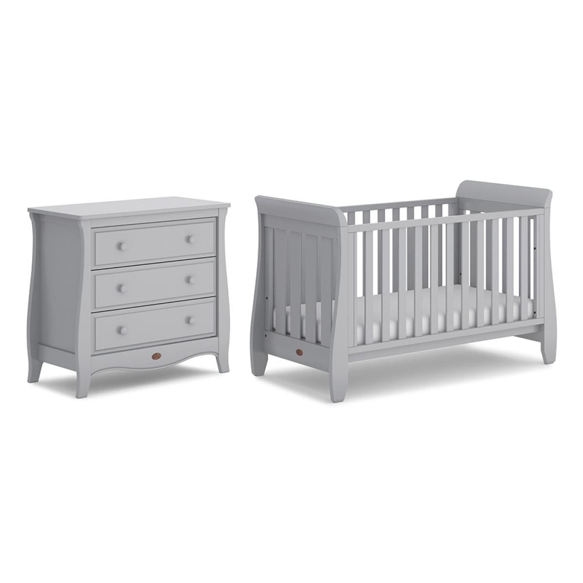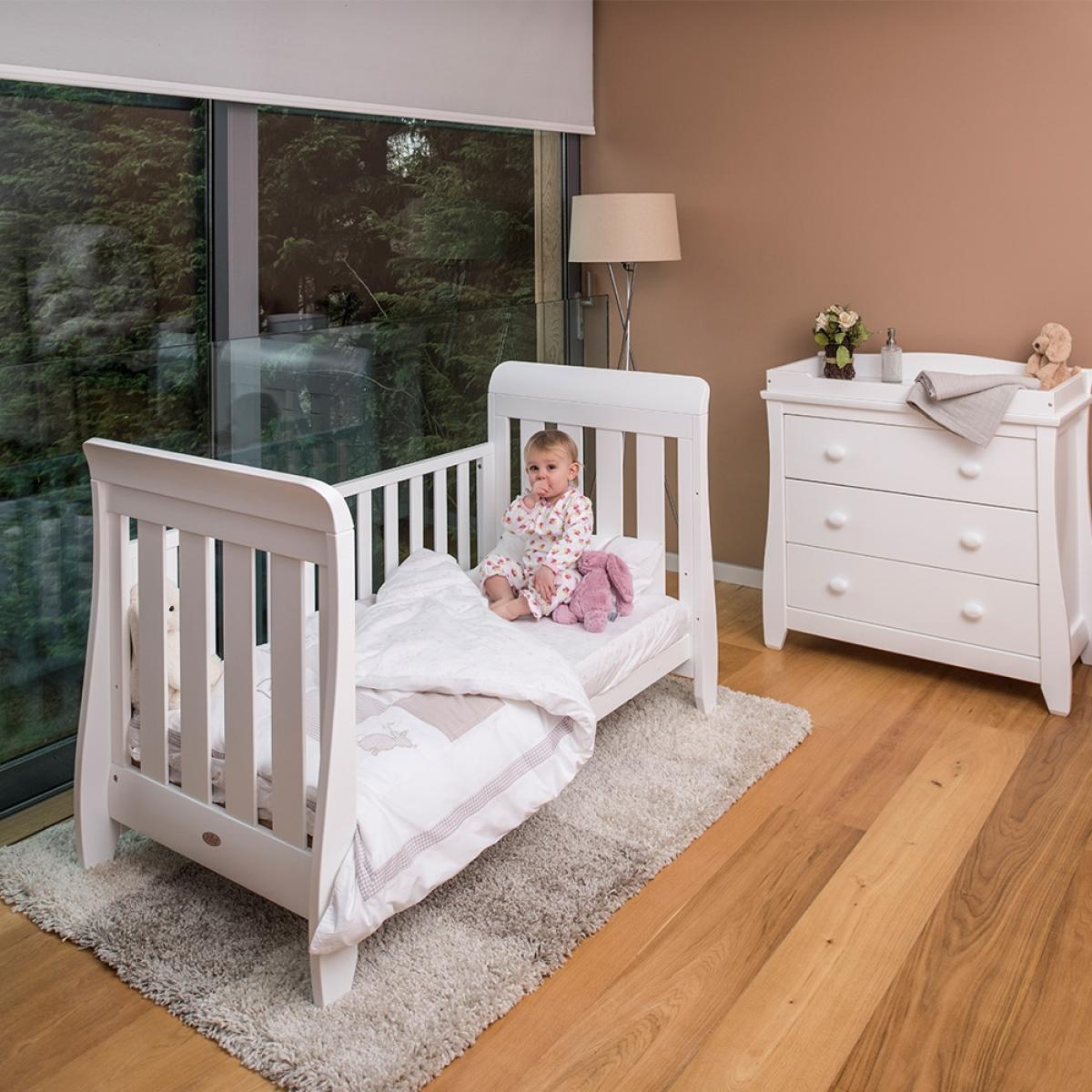 Finish the nursery off in style with the Sleigh Urbane 2 Piece Nursery Furniture Set from Boori. Supporting your little man or miss for up to 5 years, the adjustable cot bed and dresser will see them through those first important years. Featuring 4 sleek slatted sides, the design is perfect for when they are dozing and you want to keep an eye on them! With the height adjustable mattress base, your tot will be kept safe throughout their development, so once sitting and standing have been mastered rest assured there'll be no escapes. Convert again into an equally stylish day bed style toddler bed for them to develop their independence further. Paired with a handy chest of drawers, ideal for storing all their essentials, dinky outfits and toys, continue using this gorgeous FSC wooden design throughout their childhood. Whether you're having a boy or a girl, this set will suit both and all existing furnishings too. Let the exciting new adventure commence!.
