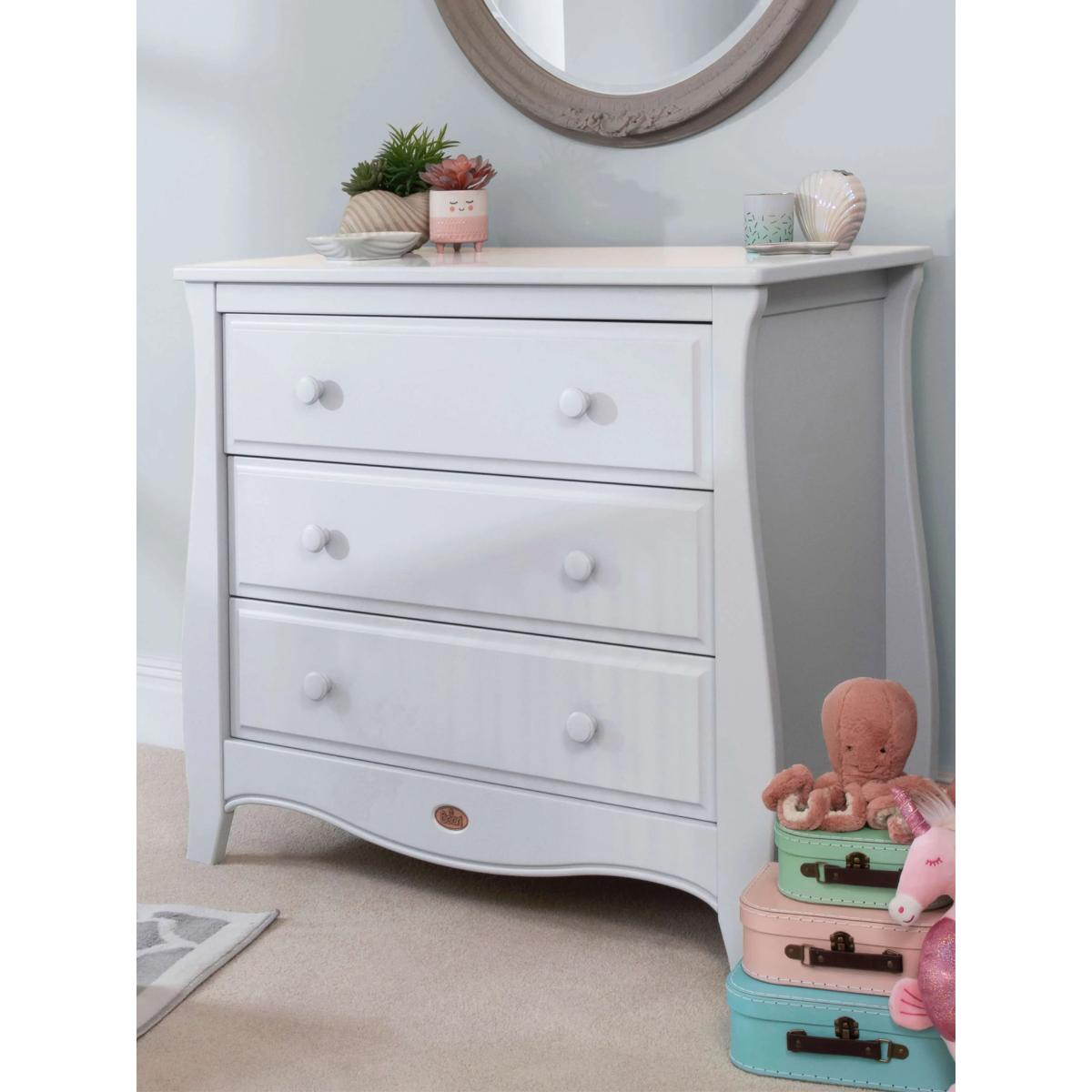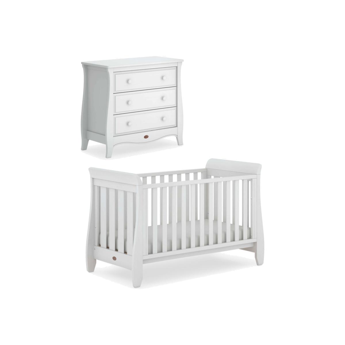 Boori combines classic heritage with contemporary trends to create nursery furniture to treasure for years to come. This stylish 2 piece nursery furniture set includes a Sleigh Urbane Cotbed and the Sleigh 3 Drawer Chest with Smart Assembly technology. Cotbed: : Offering a beautifully modern update on a timeless classic, this Boori's Sleigh Urbane Cot Bed boasts unmistakable sleigh detailing but in a sleek and petite silhouette. This stylish baby cot is crafted with sustainable solid wood and has the ability to transform into a toddler bed, lasting you from birth to around 5 years. Converts from cot to toddler bed suitable from birth to around 5 years Crafted with sustainably sourced Australian Araucaria and New Zealand Radiata wood. The unique paint finishes are nursery-friendly and enhance the natural beauty of the sustainable timber. Option to rotate the fixed side panel to provide a low side when converted to toddler bed for greater safety and stability Two base heights. Higher base height for easy access to newborns, lower base height for when baby is able to pull themselves up Requires a L132 x W70cm mattress (included) A Toddler Guard Panel can be purchased separately for additional peace of mind Dresser: Boori believe building your nursery should be a memory to treasure, which is why they've done away with fiddly tools and have instead replaced them with innovative technologies. This unique chest of drawers features 3 fully-extendable drawers with dovetail joints for extra stability, the chest top features plenty of space for a change pad and changing essentials. Smart Assembly - No need for any fiddly tools Strong and sturdy design Solid wood frame, top and drawer-sides Dovetail jointed drawers