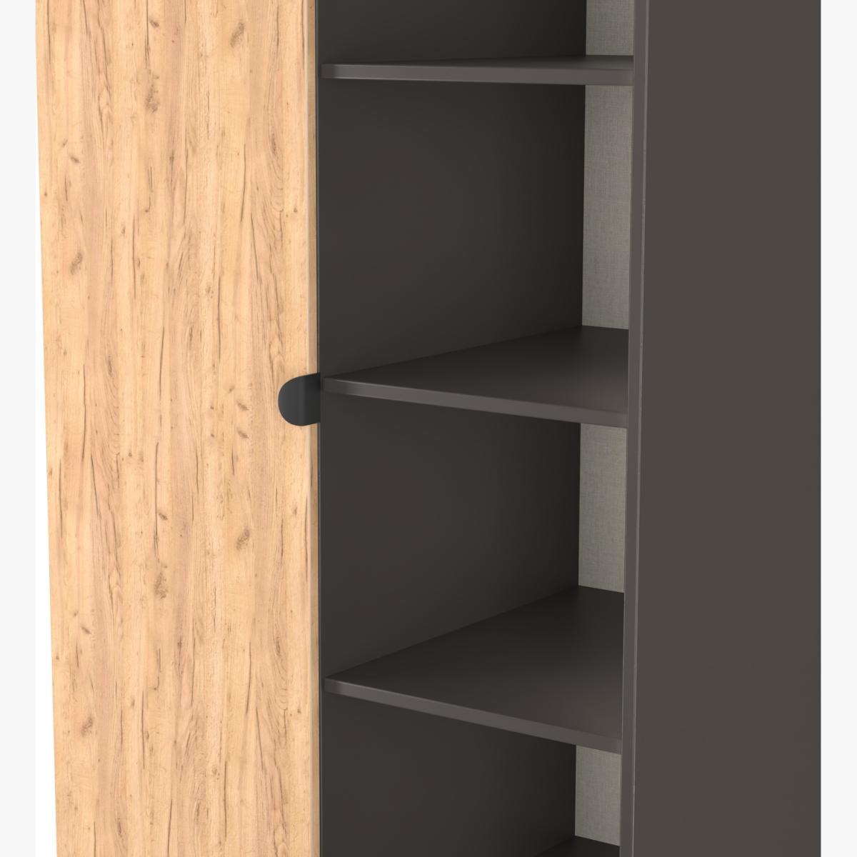 This tall wardrobe features a single door full height storage compartment on one side and an open shelf area on the other side. The modern Bora range really stands out. With Semi-Circular Black metal Pull handles and many pieces featuring open shelf storage, making this affordable range both stylish and practical. All our furniture is made in the United Kingdom, to the highest quality using responsibly sourced materials. It is delivered direct to your location of choice by one of our two man delivery teams, and comes fully assembled (although items with legs will have those legs removed during transit to avoid damage).