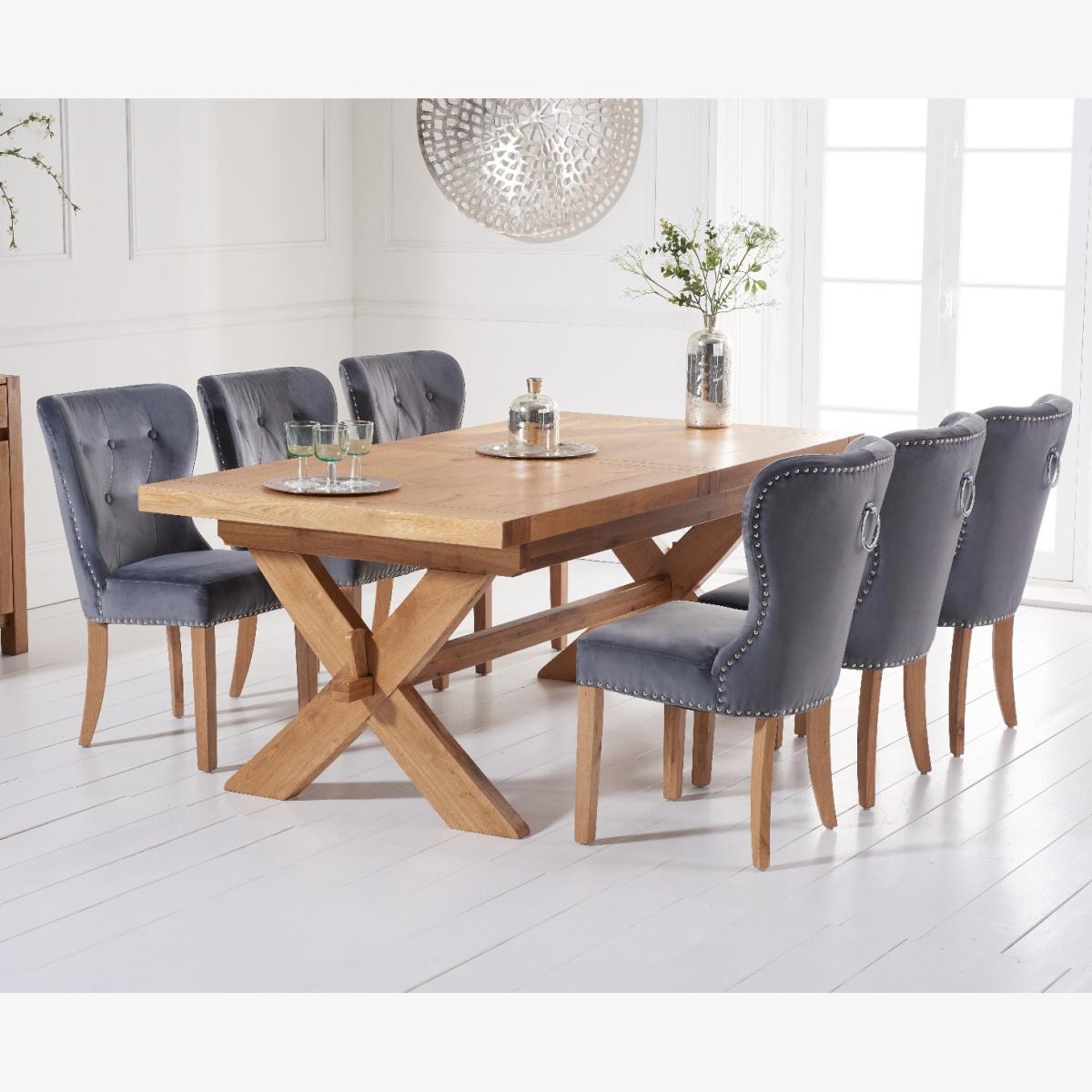 Bordeaux 200cm Solid Oak Extending Dining Table With 10 Blue Knightsbridge Velvet Chairs