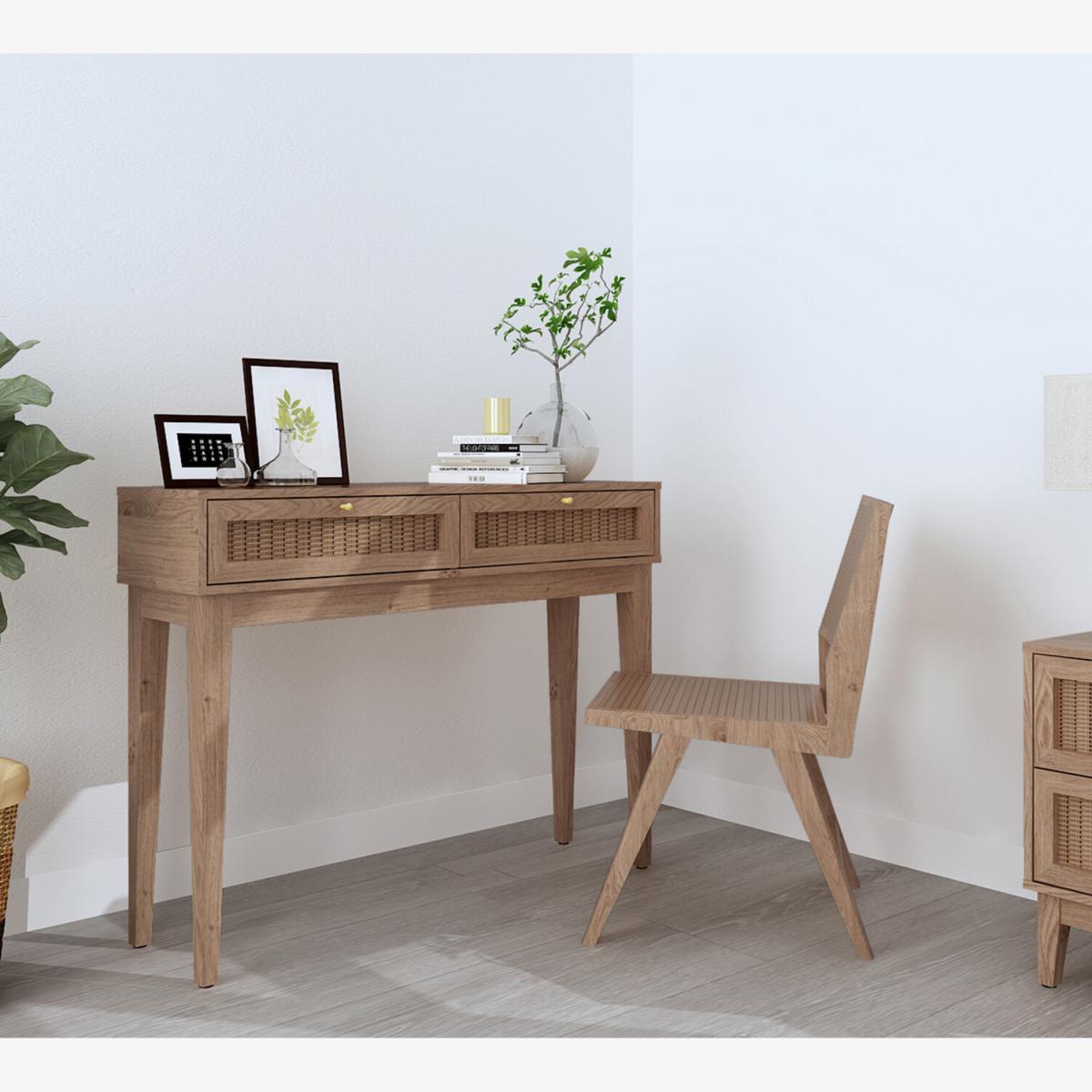 The Bordeaux dressing table in oak is a versatile piece that works well in both contemporary and Scandi-inspired interiors, thanks to its clean lines and natural wood finish. I love its understated design, which makes it adaptable for various styling choices - from a minimalist setup with simple decor to a more layered look with colourful accessories and decorative trays. To maximise space and organisation, consider adding a few small storage containers or organisers on top, while keeping the surface uncluttered. Pairing it with a matching or contrasting wooden stool or chair creates a cohesive look, and layering with textiles like a soft rug or textured cushions can add warmth and comfort to the space. Its neutral tone makes it a great focal point that complements a range of colour schemes.
