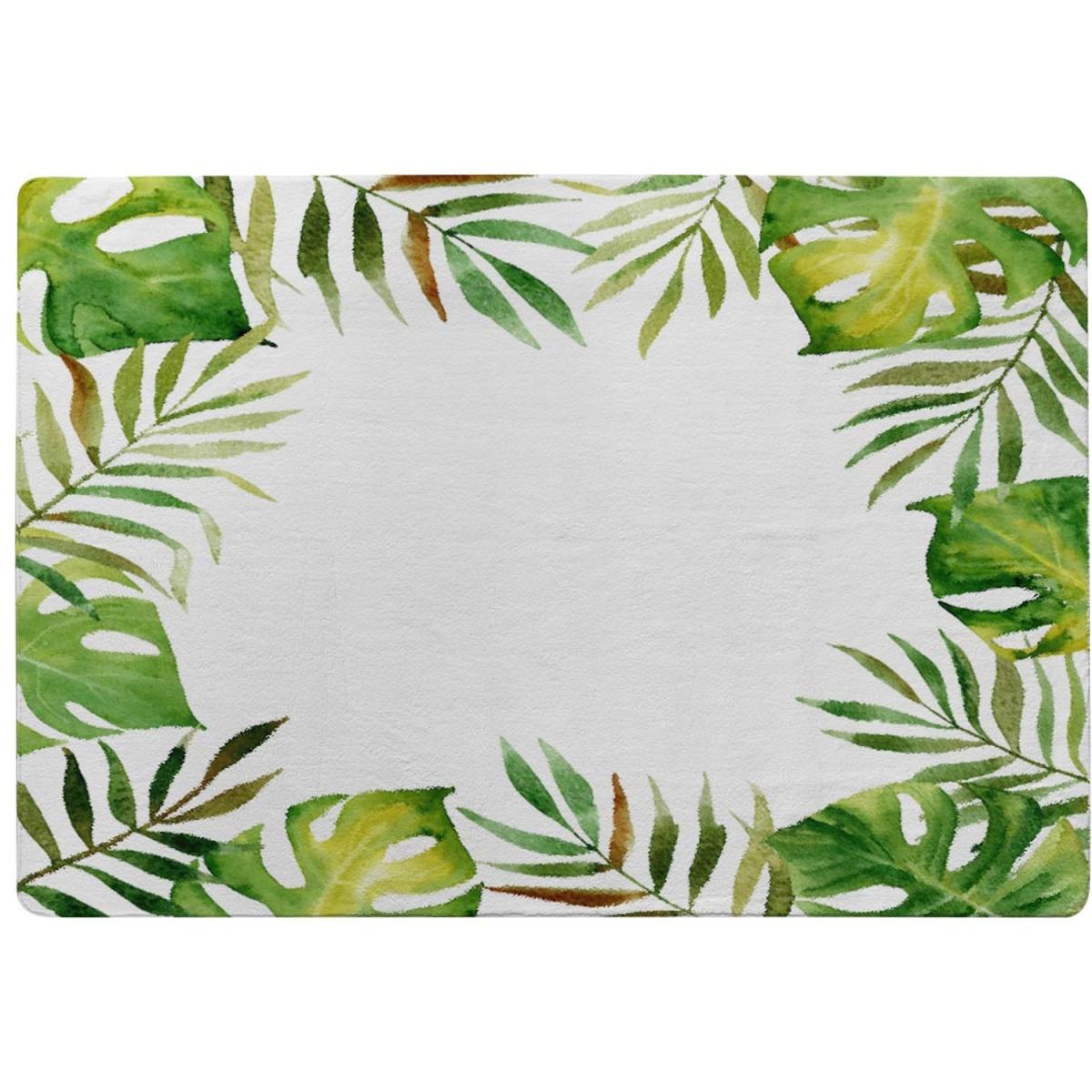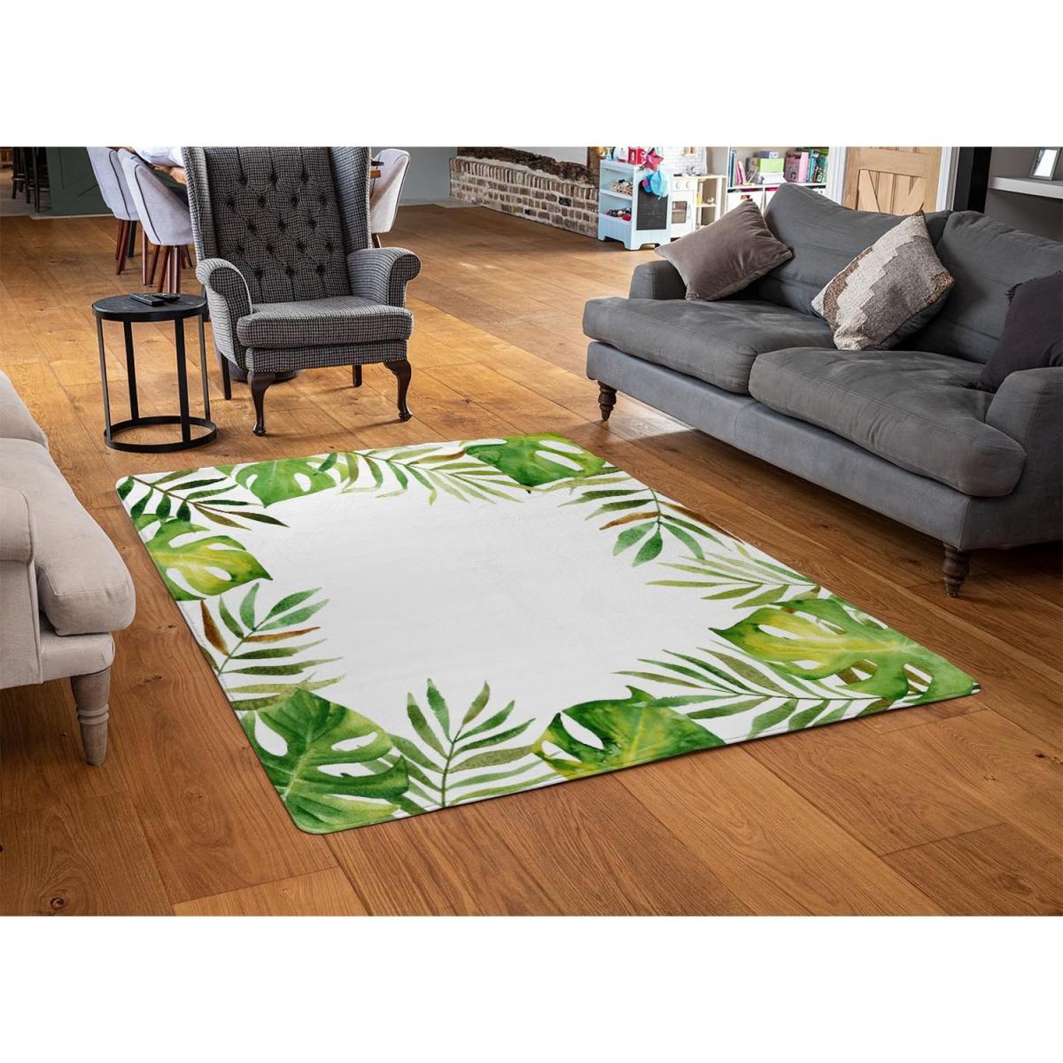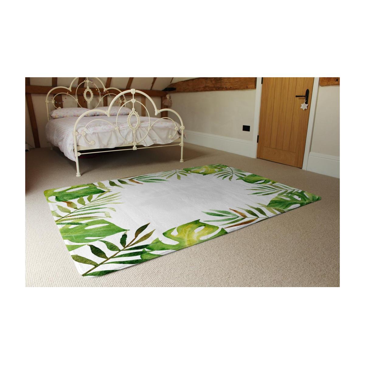 Border Of Botanical Leaves Designer Rug - Green / 230cm