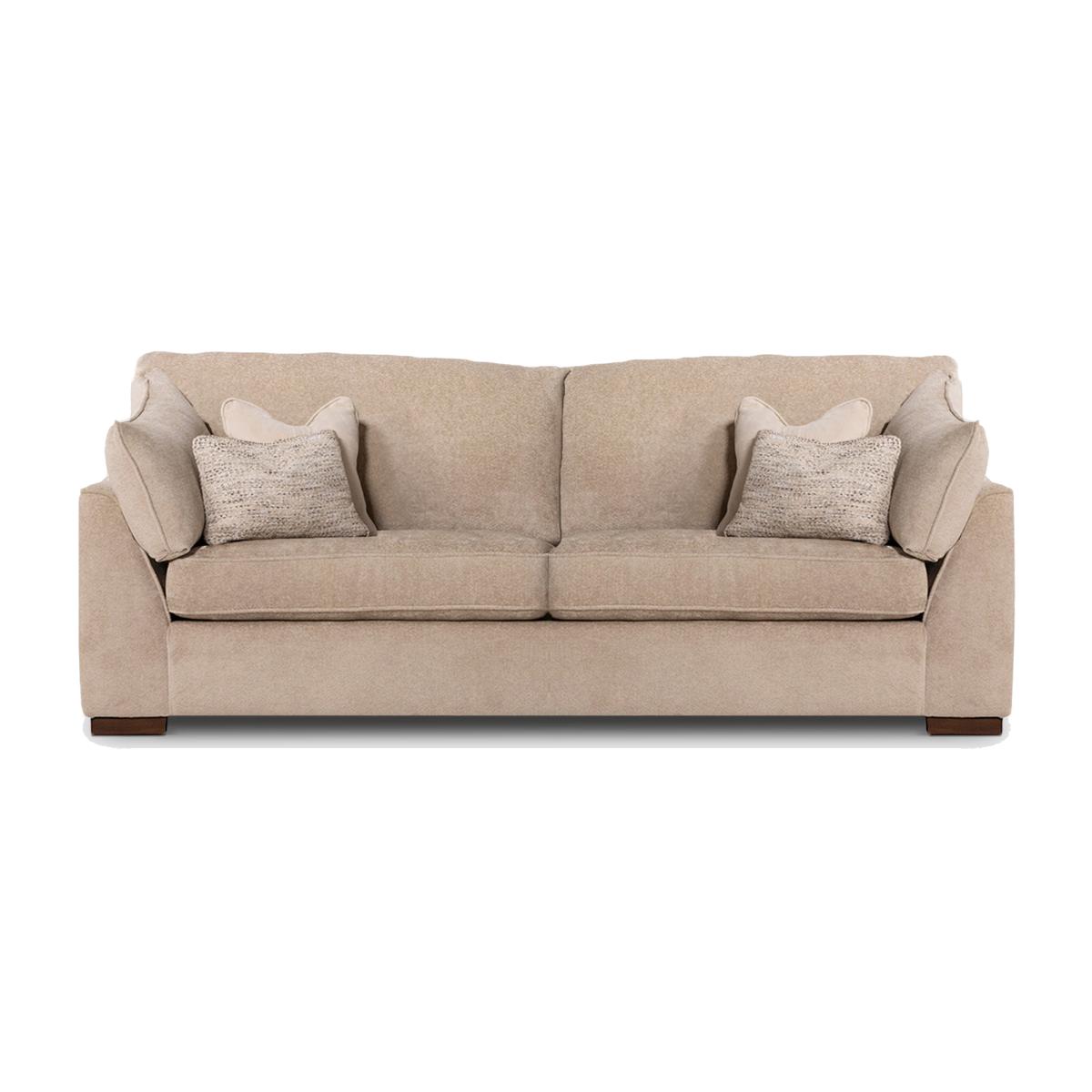Perfectly plump and full of homeliness, the Borelly 4 seater sofa is as stylish as it is inviting. Boasting incredible comfort, it features firm foam seats and a full fibre back, whilst the 4 feather filled cushions ensure everyday lounging is extra luxurious.  The sloping armrests, rounded edges and subtle piped detailing hint at elegance, whilst a solid base set upon chunky hardwood feet retains simplicity. With a versatile design that suits a range of interior looks, and a variety of quality textured fabrics to choose from, youre certain to find a style thats perfect for you.