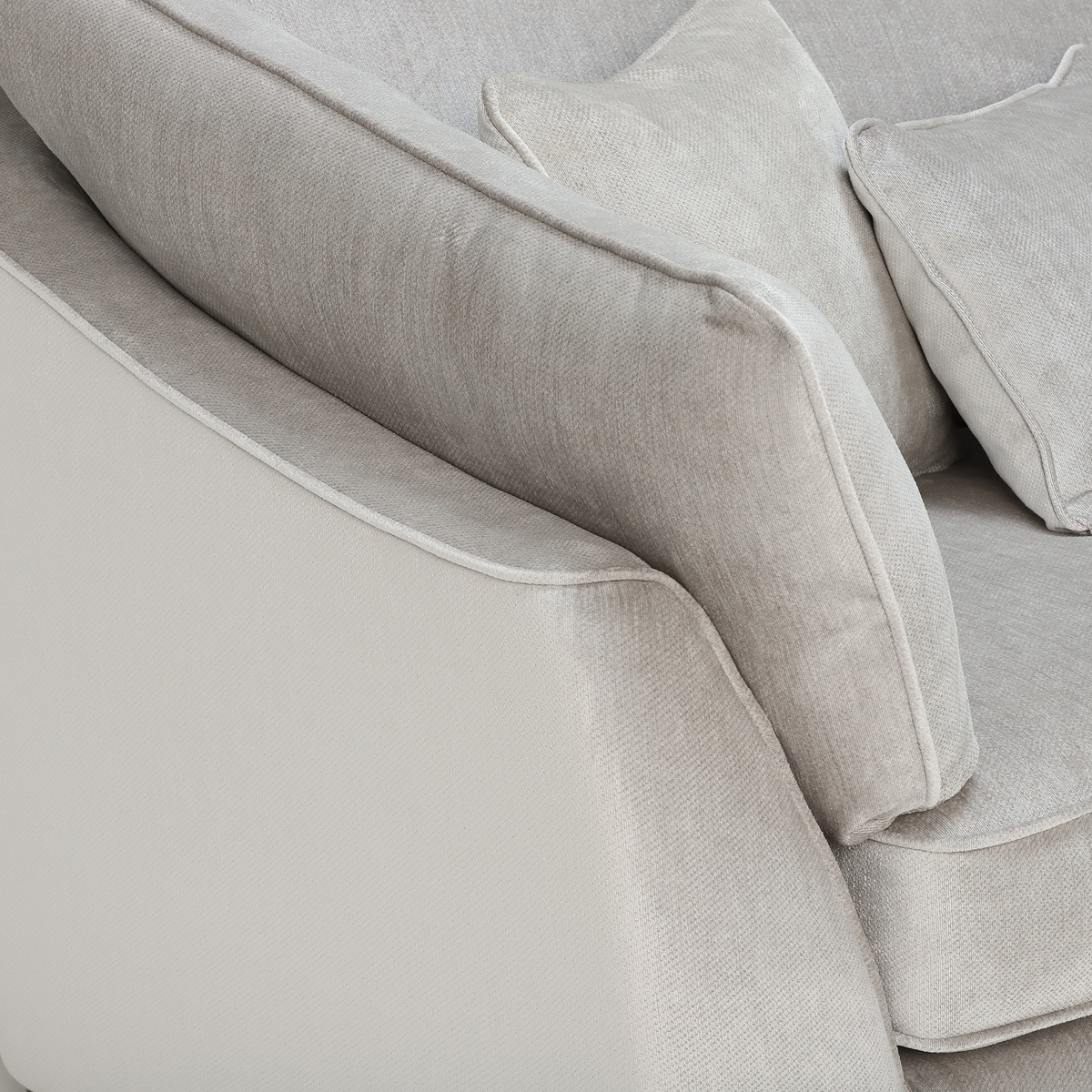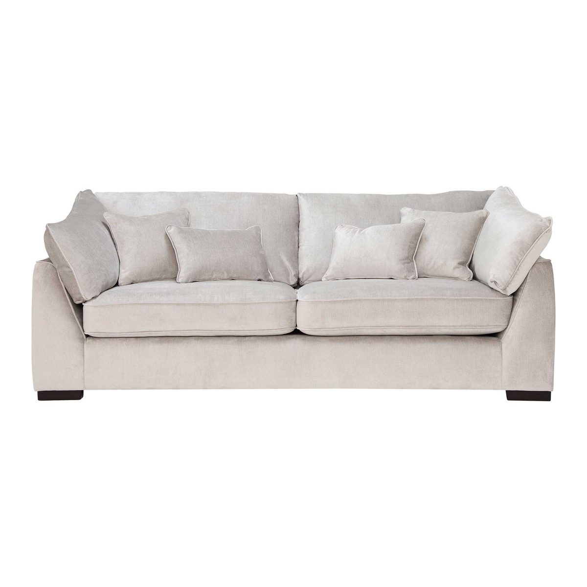 Design. Perfectly plump and full of homeliness, theBorelly. 4 seatersofa is as stylish as it is inviting. Boasting incredible comfort, it features firm foam seats and a fullfibreback, whilst the 4 feather filled cushions ensure everyday lounging is extra luxurious. The sloping armrests, rounded edges and subtle piped detailing hint at elegance, whilst a solid base set upon chunky hardwood feet retains simplicity. With a versatile design that suits a range of interior looks, and a variety of quality textured fabrics to choose from, you’re certain to find a style that’s perfect for you.