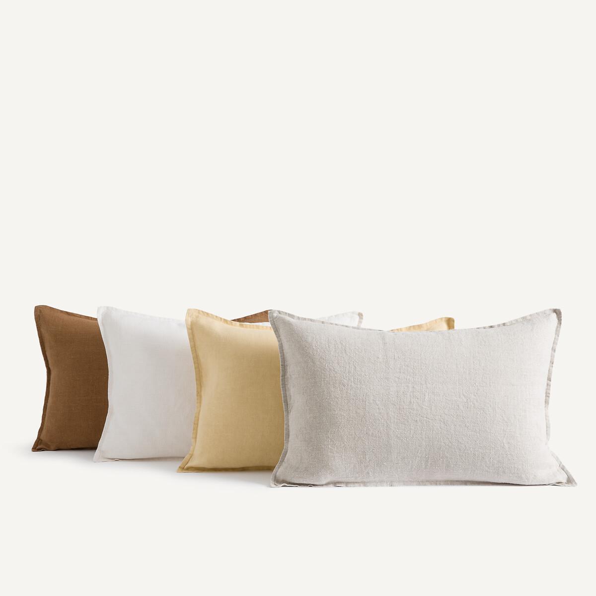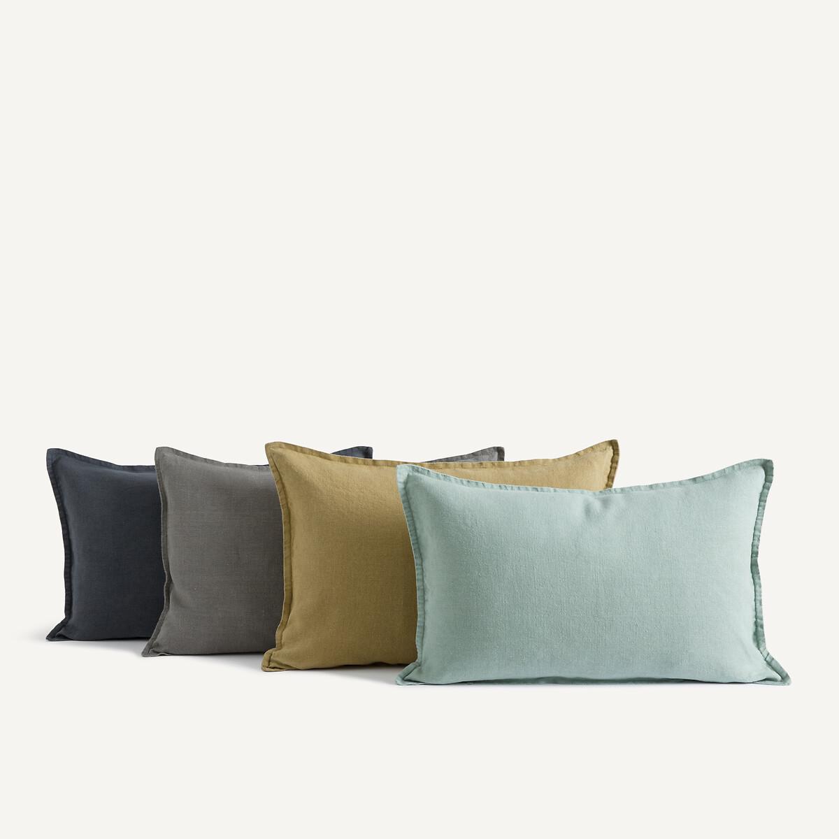 Made in Portugal from thick linen thread, the Boreo cushion cover is densely textured and has a soft, supple feel. Its tight weave creates a refined and elegant visual effect. It is available in a range of plain colours. Product Details • 100% thick linen, 400g/m² • Flat hem • Invisible tone-on-tone zip-up closure. Care Advice Follow our care tips to maintain the quality of your linens • Machine washable at 30°C • Tumble dry at low temperature • Iron at low temperature Dimensions • 50 x 50cm • 60 x 40cm • MADE IN PORTUGAL. • OEKO-TEX® Standard 100. Standard 100 certification by OEKO-TEX® tests textile products for harmful substances via an independent, international label.