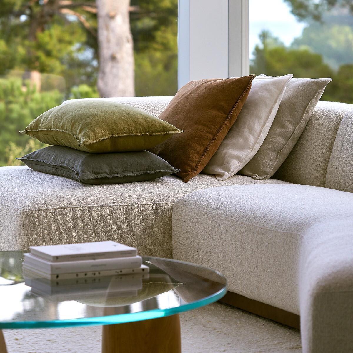 Made in Portugal from thick linen thread, the Boreo cushion cover is densely textured and has a soft, supple feel. Its tight weave creates a refined and elegant visual effect. It is available in a range of plain colours. Product Details • 100% thick linen, 400g/m² • Flat hem • Invisible tone-on-tone zip-up closure. Care Advice Follow our care tips to maintain the quality of your linens • Machine washable at 30°C • Tumble dry at low temperature • Iron at low temperature Dimensions • 50 x 50cm • 60 x 40cm • MADE IN PORTUGAL. • OEKO-TEX® Standard 100. Standard 100 certification by OEKO-TEX® tests textile products for harmful substances via an independent, international label.