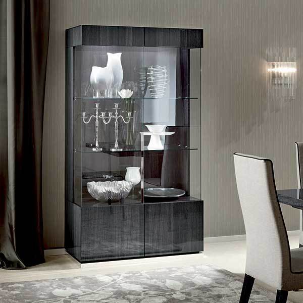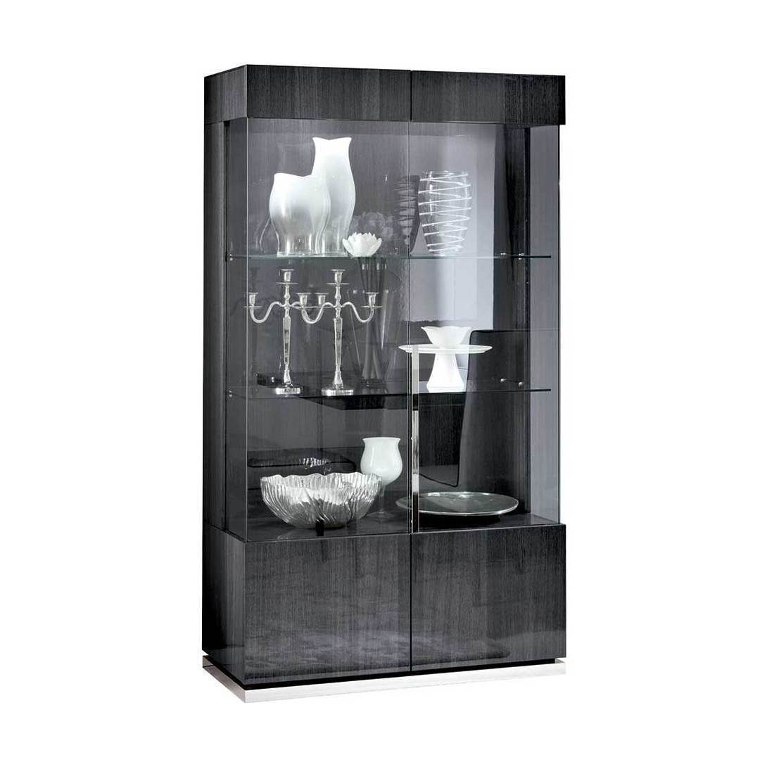 Borgia 2 Door Koto Wood Display Cabinet, Grey Highgloss