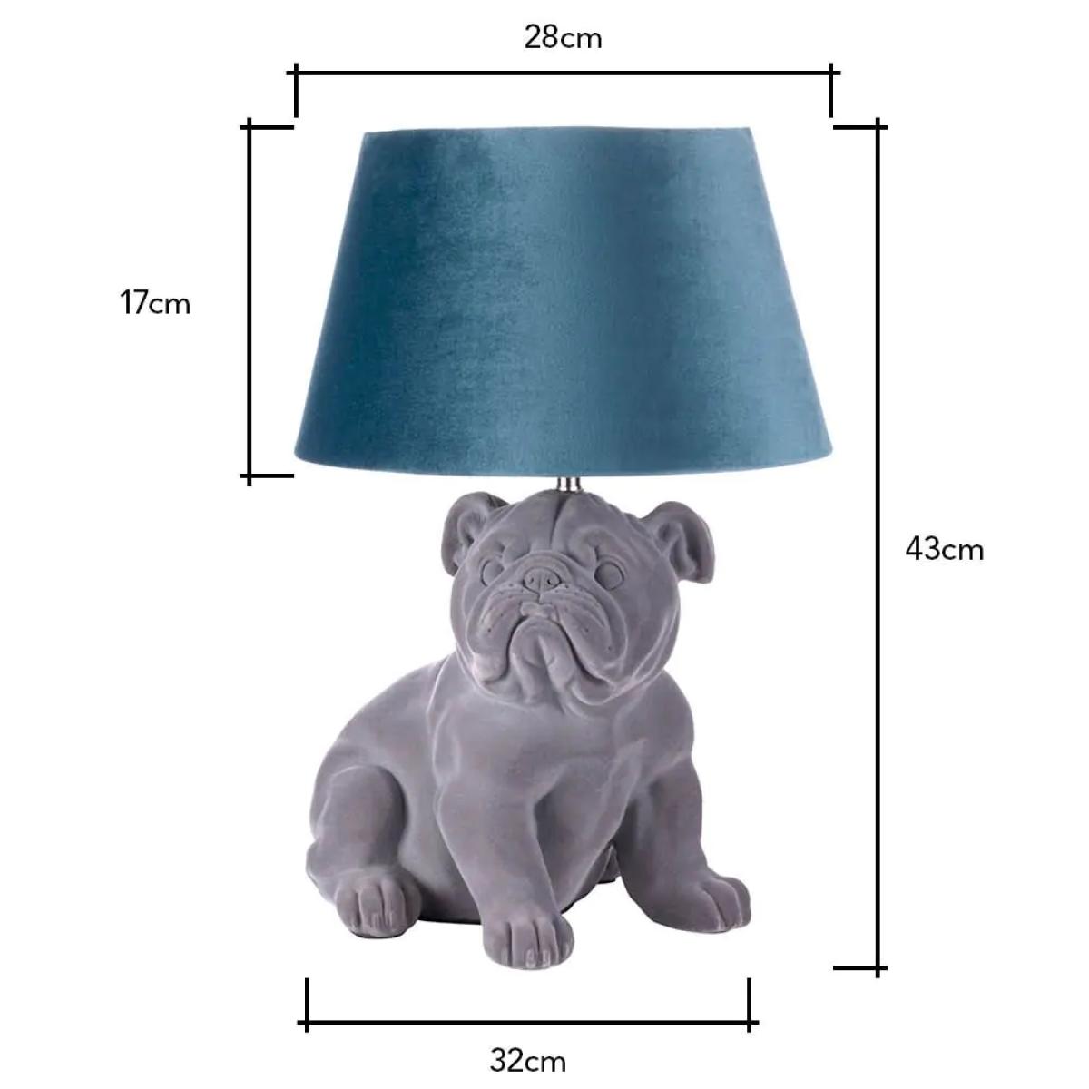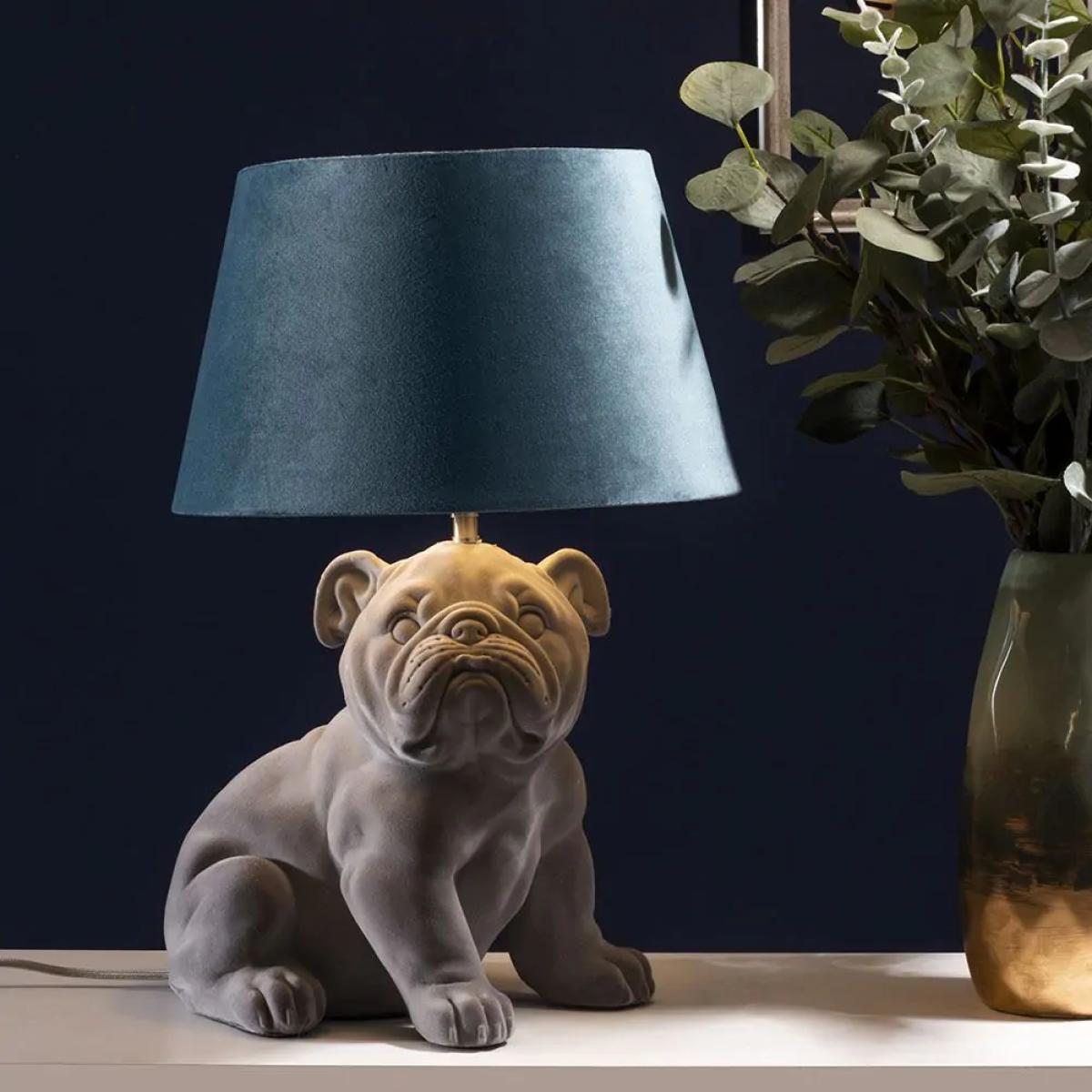 I love this little bulldog lamp for its playful yet stylish character. Its soft velvet shade in grey makes it versatile enough to work in both contemporary and quirky interiors, such as a children's room, a cosy lounge, or a fun corner in a modern office. The whimsical bulldog base adds personality without overwhelming a space, making it a great statement piece. For styling tips, consider pairing it with neutral-coloured or minimal furniture to let it stand out, or with other grey and textured accessories for a more layered look. It’s practical too: perfect as a bedside or side table lamp, providing a warm, inviting glow.