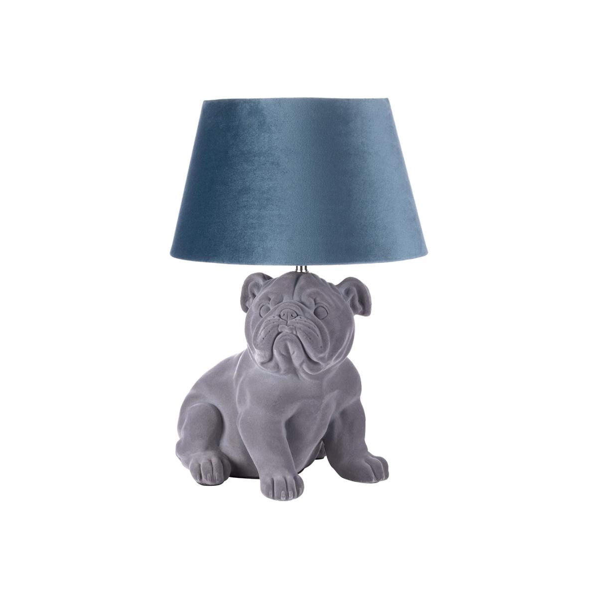 Boris Bulldog Flock Table Lamp with Velvet Shade, Grey