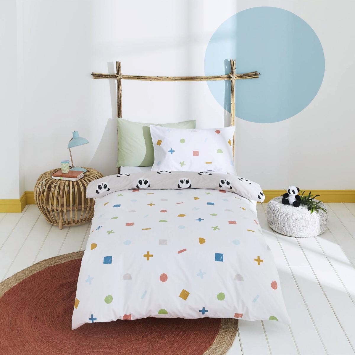 I love this bear-themed duvet set because it’s playful yet versatile, making it a great addition to a child's room. Its neutral tones and fun panda print lend themselves well to both modern minimalistic spaces and more eclectic, cosy interiors. It’s a practical choice for parents, too, as the natural colour palette pairs easily with soft pastels or brighter accents. For styling, try layering with light green or pastel bedding for a fresh look, and add tactile accessories like textured cushions or a cosy throw in natural fibres to create a welcoming environment. Its cheerful print can complement a woodland or nature-inspired theme, or work just as well as a stand-alone statement piece in a more pared-back space.