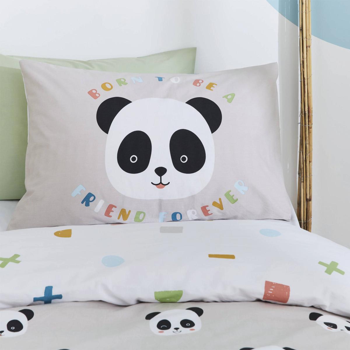 Born To Be A Pandas Friend Duvet Cover and Pillowcase Set Natural