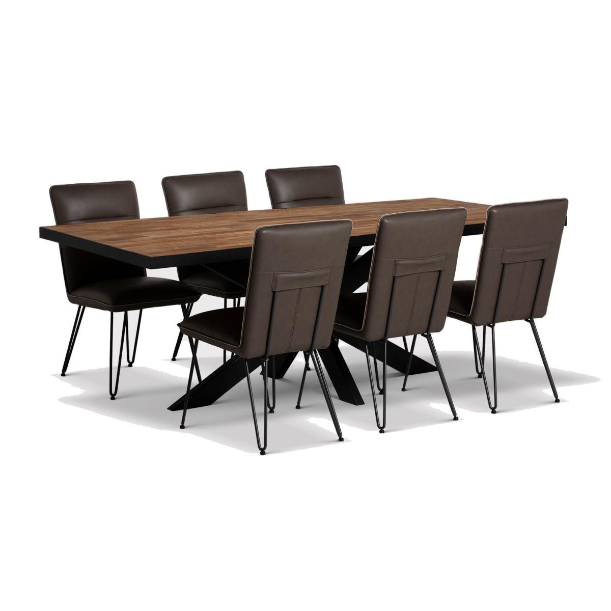 The Dining Table Boasts A Reclaimed Teak Veneer On An Engineered Wood Top, Blending Sustainability With Modern Design. The Dining Chairs Are Made From Faux Leather 100% Polyester. Borneo D. tbl 220Cm X 6 Bron D. chr, Teak Wood | Barker & Stonehouse