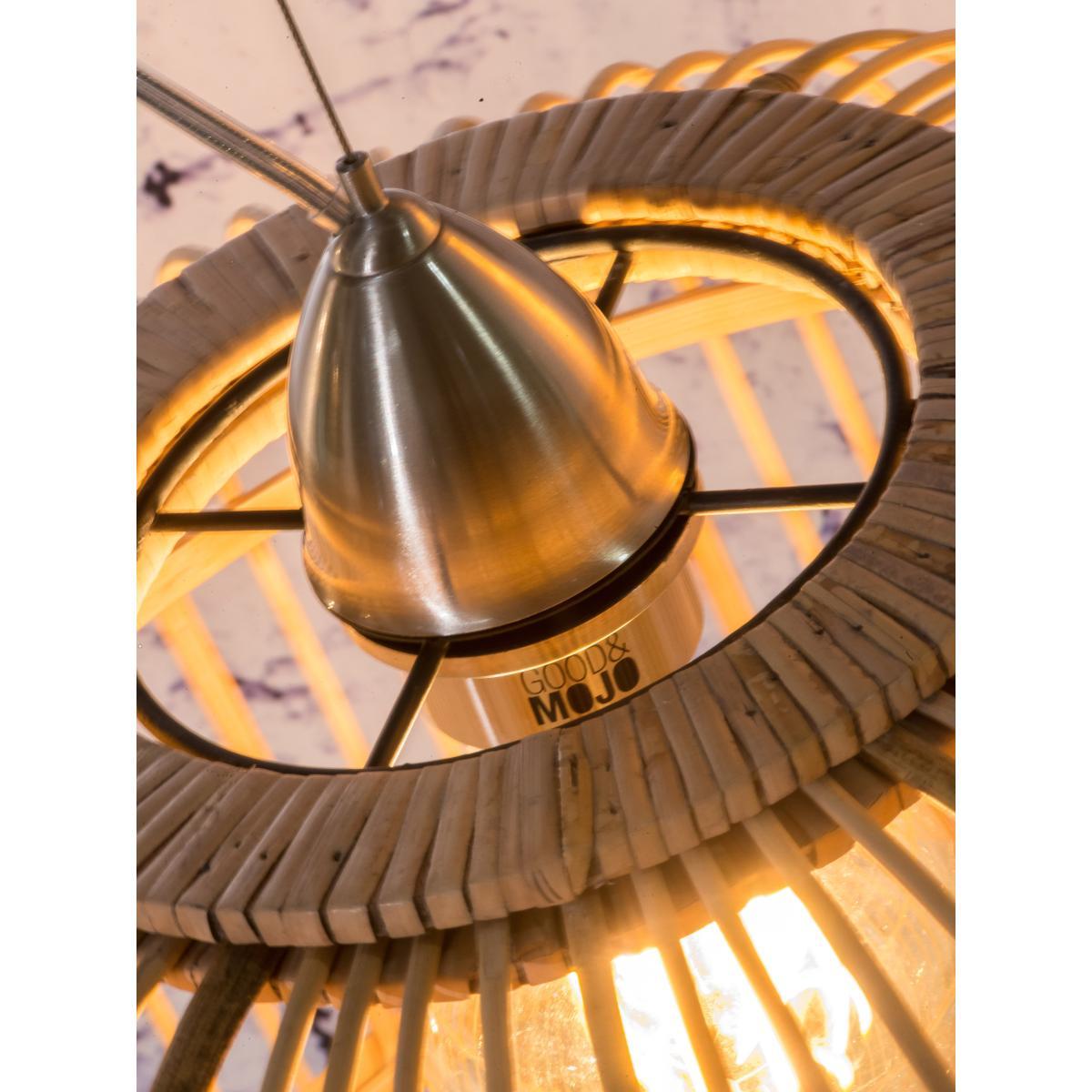 Launched by the Dutch “It’s about Ro. Mi” company, the GOOD&MOJO collection is a selection of eco-friendly light fixtures created only from durable and/or recycled materials. This is a wonderfully delicate bamboo pendant boasting a sleek and contemporary shape in harmony with the warmth of the natural wood. Borneo has a beautifully light visual appearance thanks to the openwork in its structure. The bamboo twigs cast delicate shadows over the walls. These Borneo pendants are handmade. Each item is a real technical challenge, an example of exceptional craftsmanship. Its stylish details: its remote cable, which allows you to move the position of the lampshade in relation to the power supply. You can therefore hang your lampshade from anywhere on the ceiling without having to worry about where the power arrives. GOOD&MOJO is also a solidarity initiative, because 5% of the sale price of each light fixture purchased is donated to the Waka Waka Foundation. This foundation, based in the Netherlands, distributes solar lamps for people located in crisis areas, in close collaboration with humanitarian organisations.