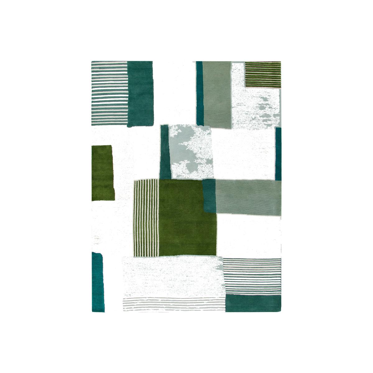 The Boro rug is a true piece of art, accentuated by timeless colours and geometric prints. Maison Sarah Lavoine creates a world of subtle hues in which the tones engage in a true dialogue. This rug boasts a palette of green tones. Mixed with striped patterns, the juxtaposed coloured bands give rise to an unstructured assembly of spaces of pure colours. This rug reflects the image of a world full of light, happiness and optimism. Knotted carefully by hand in India, this rug is worked on as if it were a painting. Created on a vertical loom, it comes from an ancestral technique for which India holds the secret.