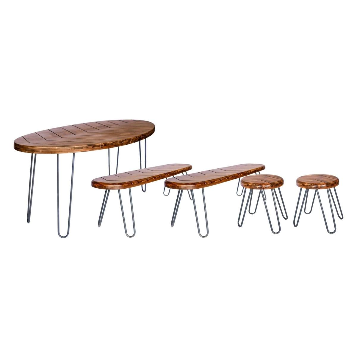 Seat all guests in style and comfort with the Borough 5-Piece Furniture Set, which includes a spherical wooden table, two chic stools and two benches – all supported by a strong, powder-coated steel frame. Layered with UV stable resin, the 5-Piece Furniture Set is outdoor suitable – meaning that, whether it be raining or sunny, you can rest assured that your furniture will remain unblemished. In fact, not only is this contemporary dining set comprised of high quality, but you can also purchase a protective matching furniture cover – come on, let’s say yes to style this season!.