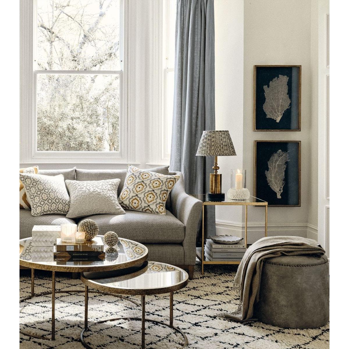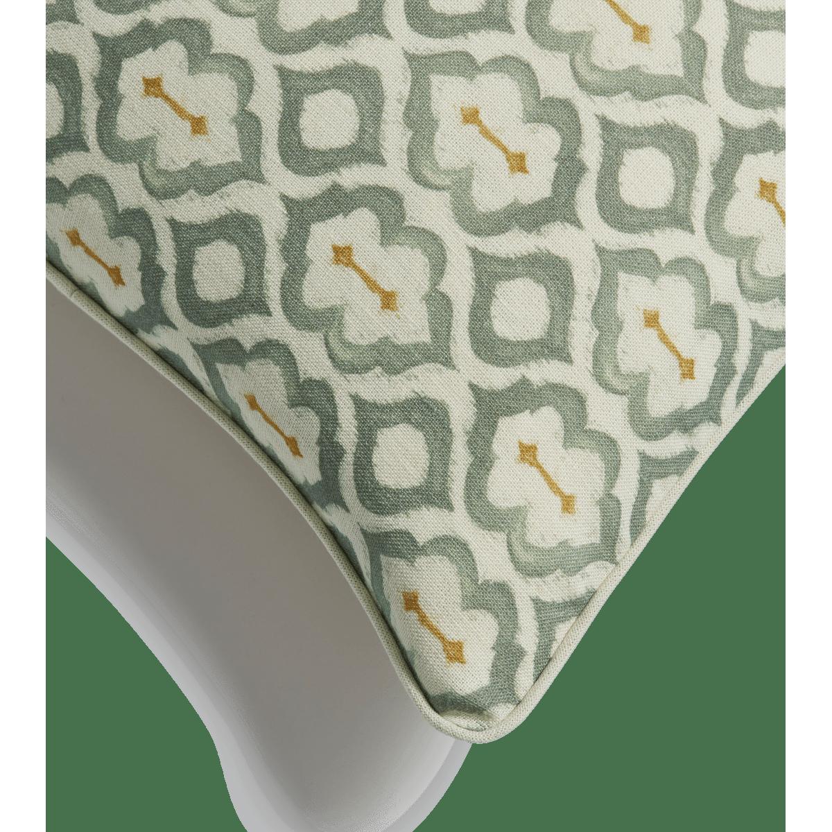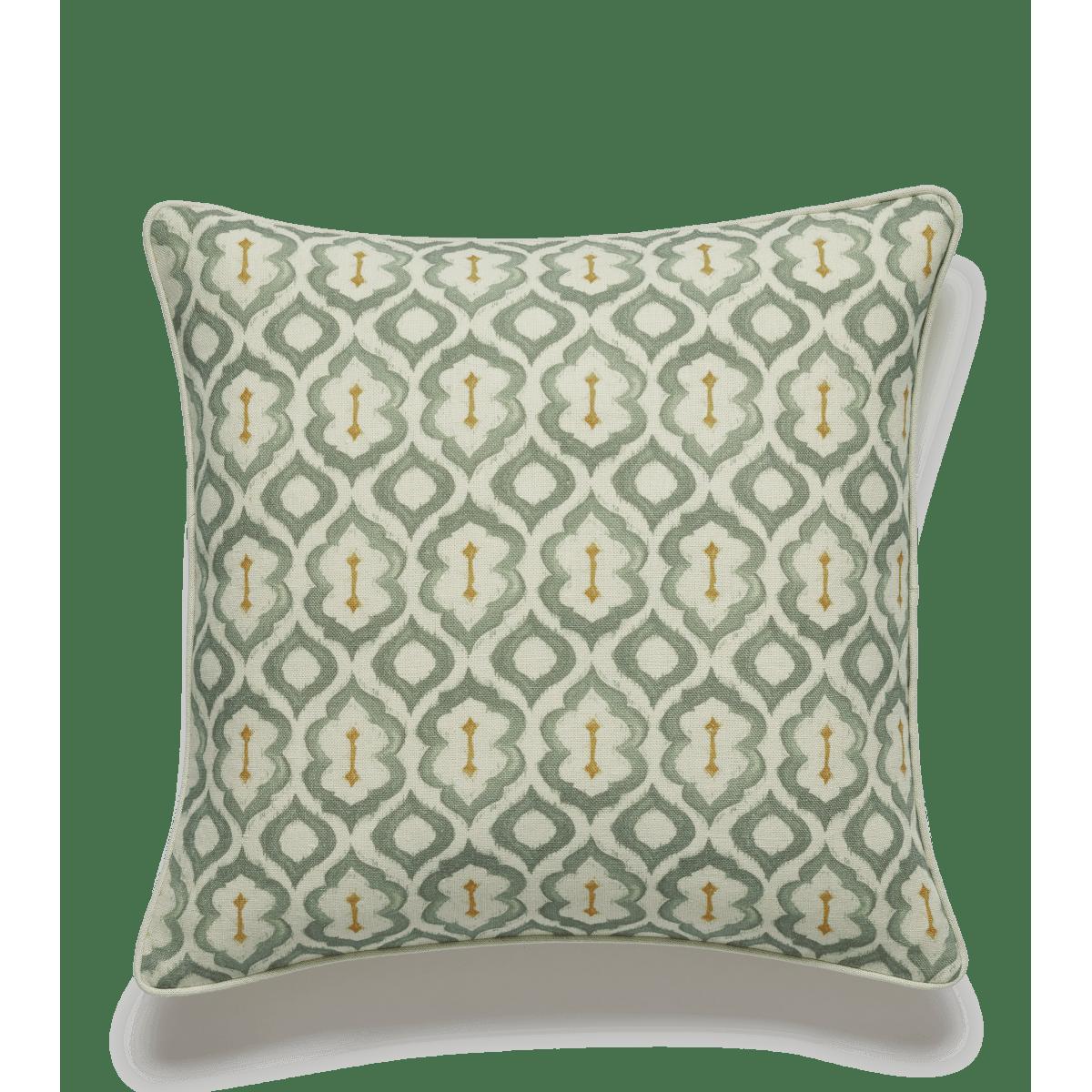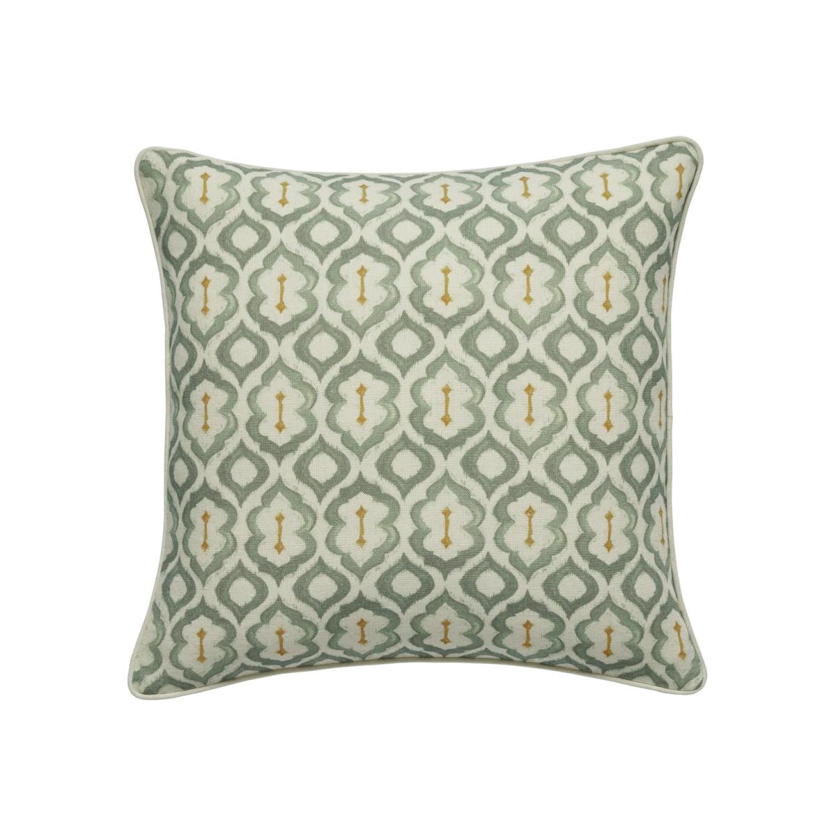 The heavy linen used for our Borrayo Cushion Covers has a quality feel that lends the perfect base for the artwork of our Ikat-style design. Ikat is an ancient dyeing technique that originates in Indonesia requiring the skill of masterful artisans. We have digitally printed the pattern onto the linen so that all the character of the paintwork is portrayed, from the pattern itself to the soft painterly lines that blend from the sage green and mustard yellow into the white. Our range is named Borrayo for this very reason – a play on the Portuguese word for ‘blur’, which is a distinctive quality of Ikat designs. This version features the most intricate of the designs, with arrowlike yellow lines at the centre of each curving shape.