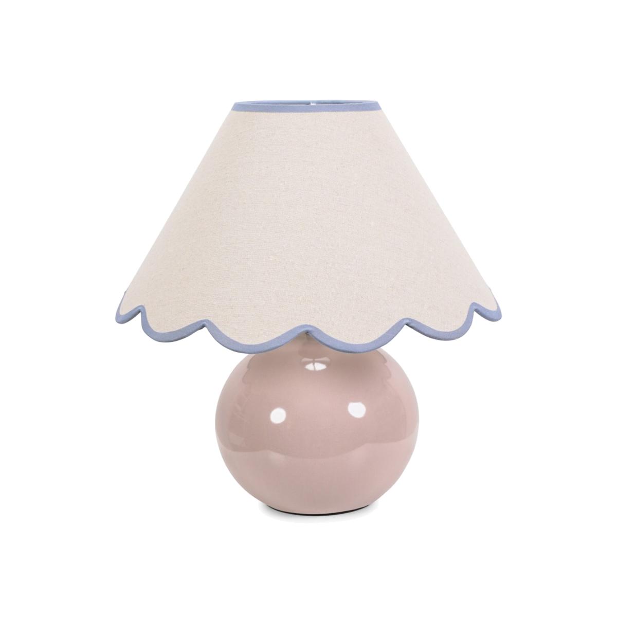 The Bosco ceramic table lamp in stone is an elegant and understated ceramic globe base. Perfectly matched with the pink trim scallop shade.