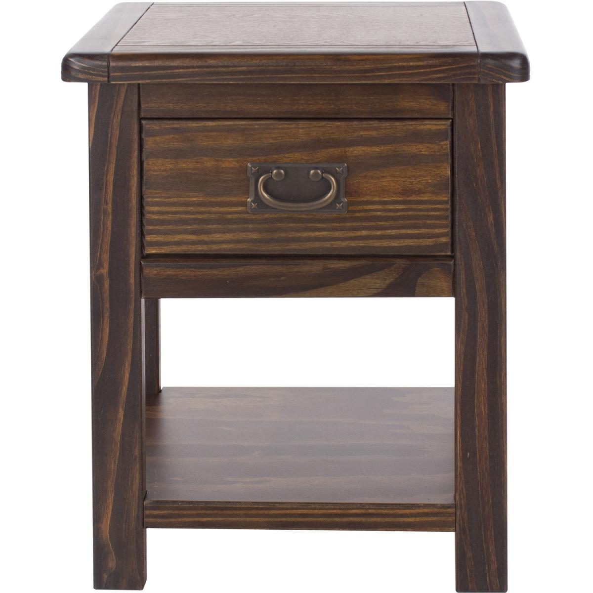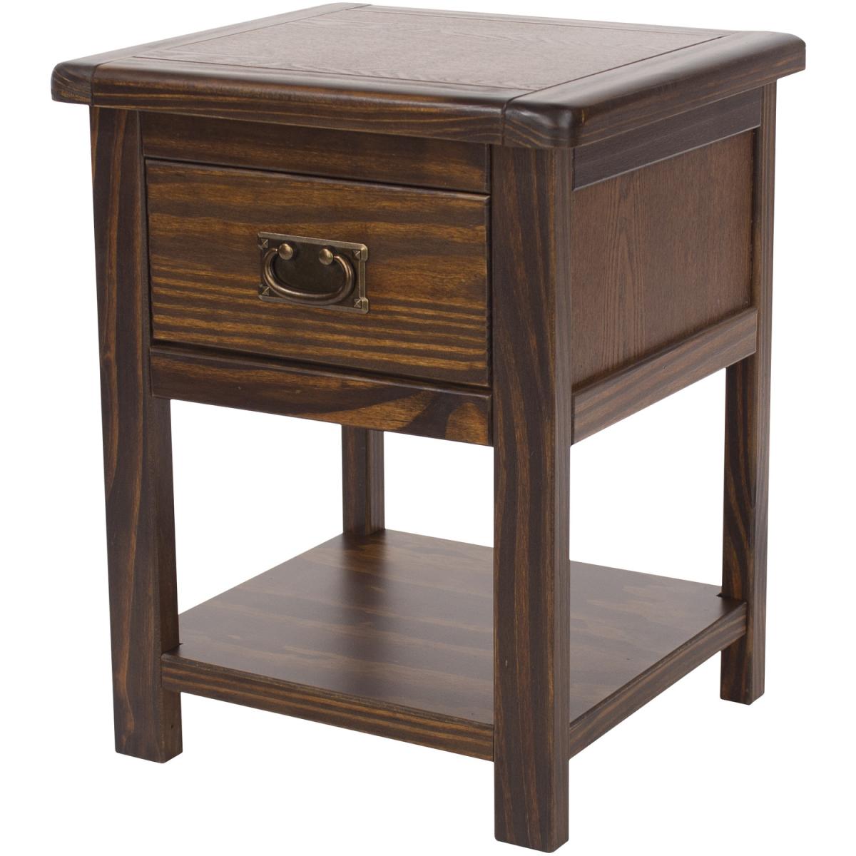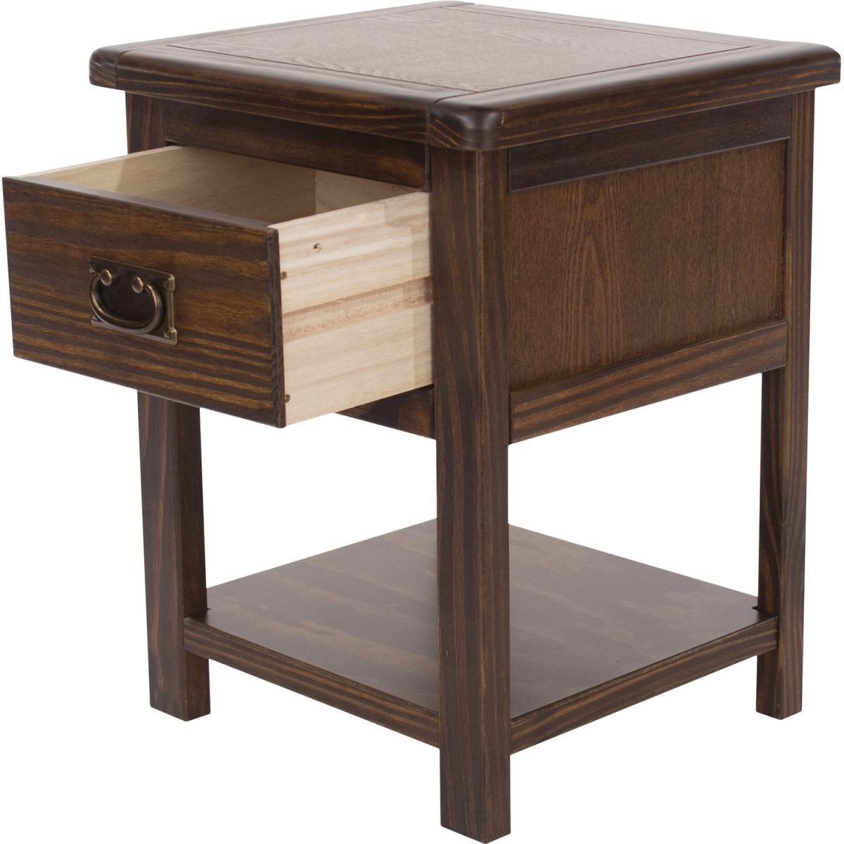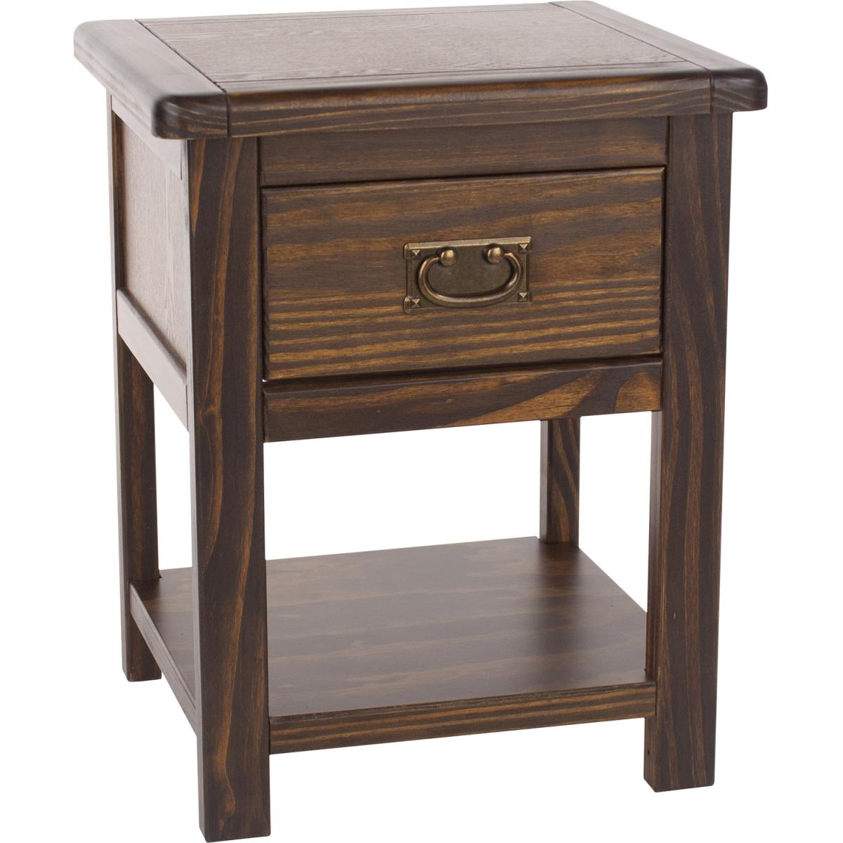 Add a touch of antique flair to your bedroom with this beautifully crafted Boston one drawer bedside cabinet. This cabinet is ideal for your alongside your bed for all your essentials or for using as a side table in your living room. The single drawer is useful for keeping the top free of clutter and allowing space for a lamp or alarm to be placed, the shelf underneath is handy for your reading material. The simple design and dark tone of the cabinet create a sense of opulence, with the antique brassed colour of the metal handles adding to the luxury.