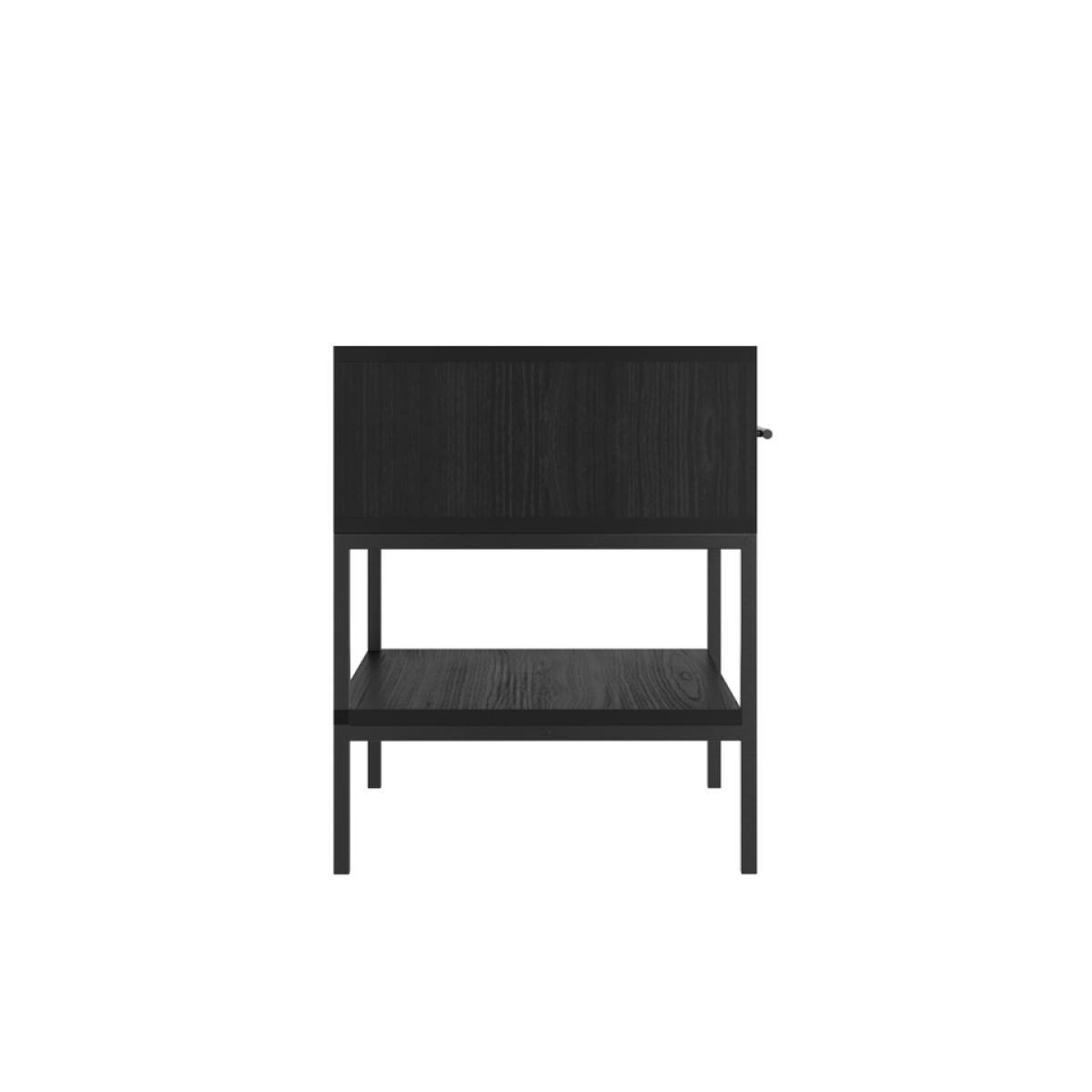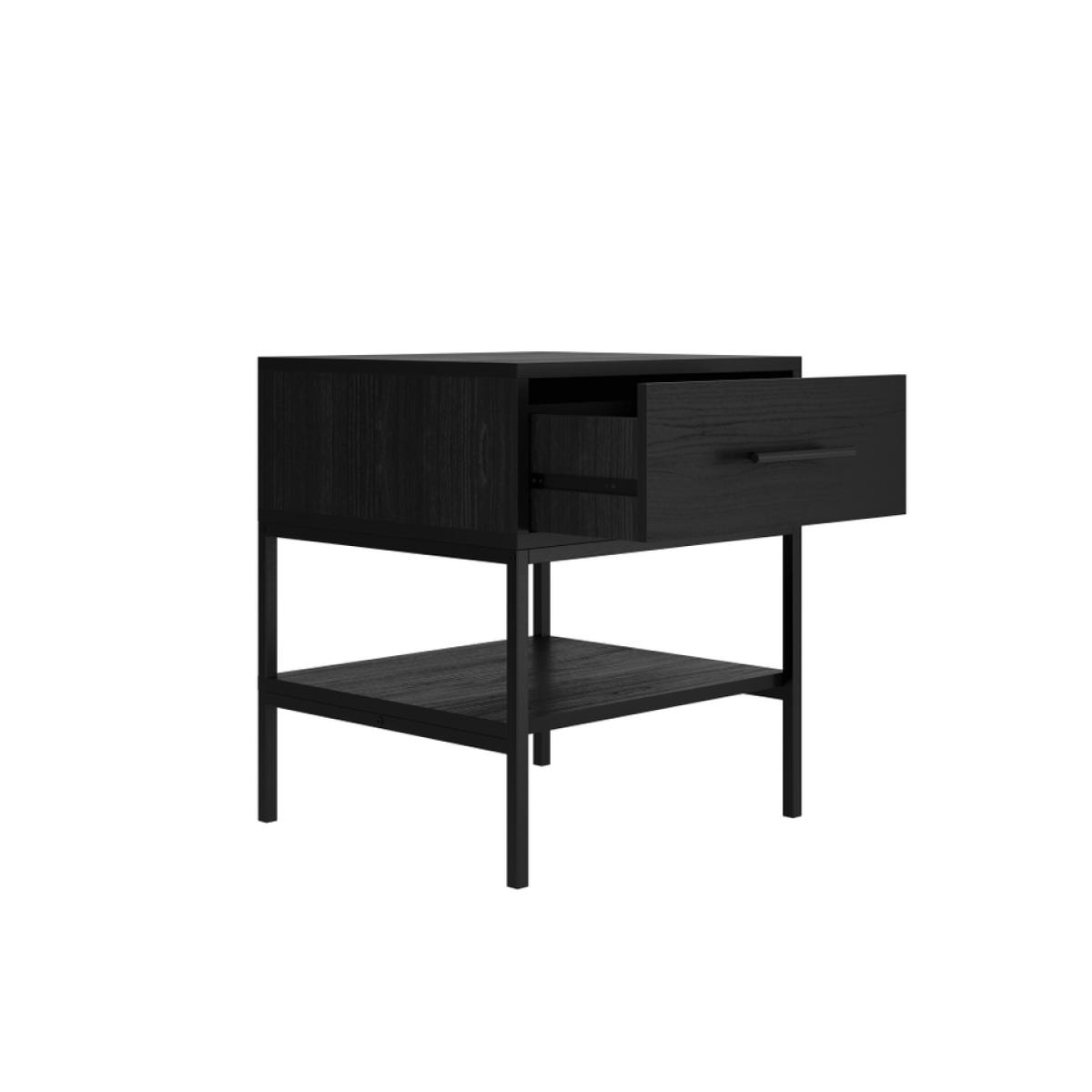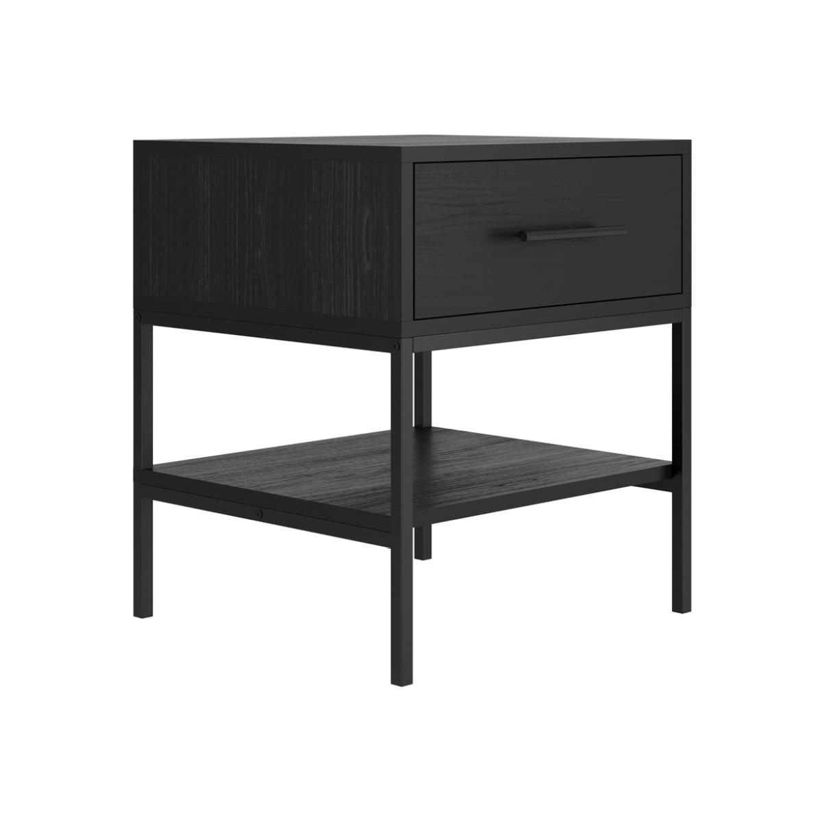 Introducing the Boston 1 drawer bedside table, a stylish storage solution with a matt black finish and a convenient drawer and shelf. Its neutral colour and metal frame blend seamlessly into any design scheme, while its industrial design adds a modern touch to your bedroom.