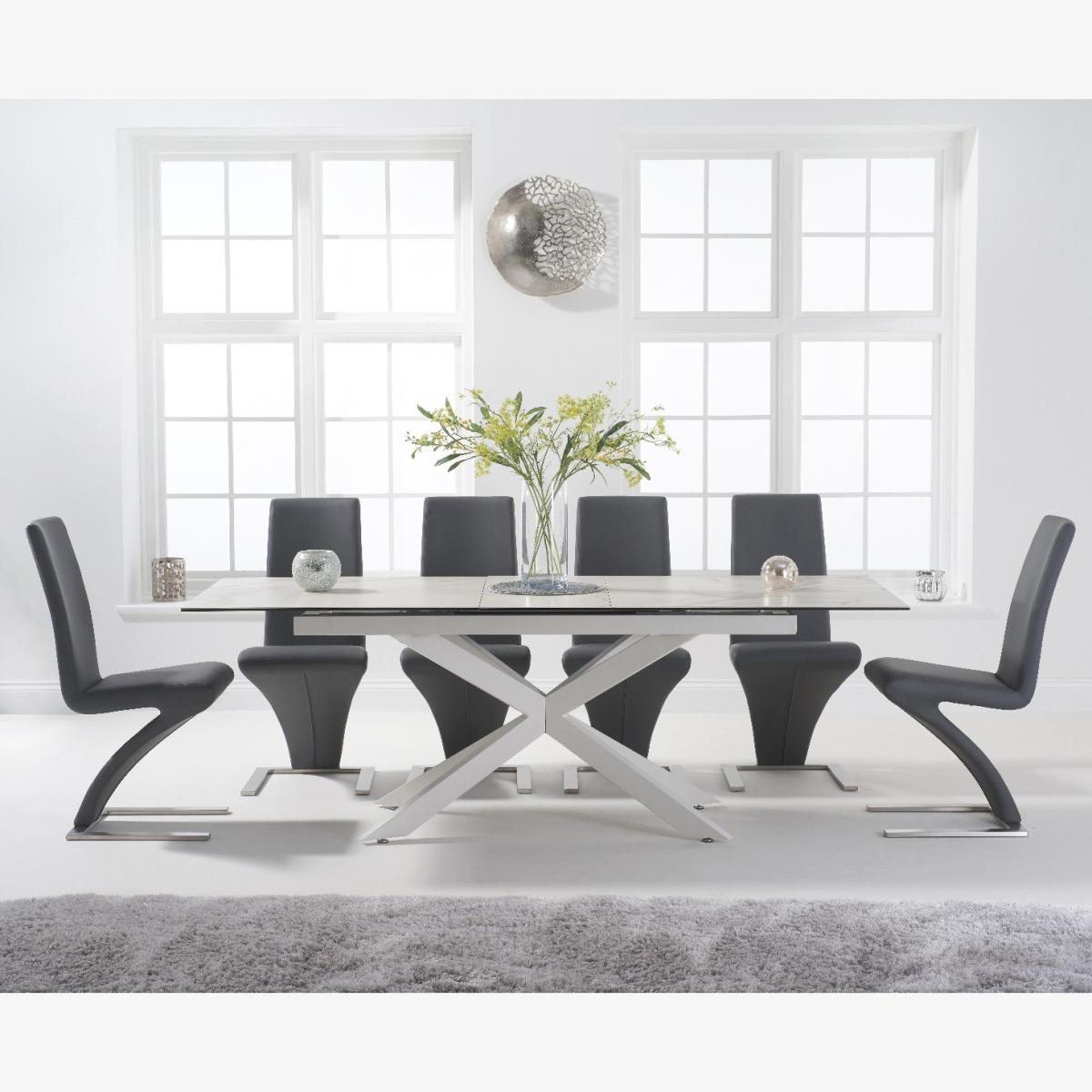 Boston 180cm Grey Stone Extending Dining Table with Hampstead Chairs is the perfect table for gatherings of 8-10 people.
