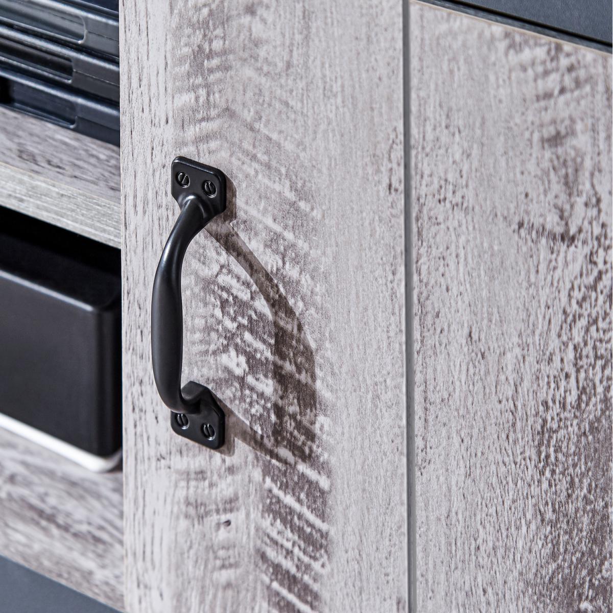 I love how the Boston unit’s weathered wood-grain doors and grey frame strike a balance between Scandi simplicity and casual farmhouse style. It slots neatly into minimalist, modern country or coastal schemes, offering concealed storage behind the doors plus an open shelf for your console. Keep styling pared-back: top with a couple of art books, a low-profile plant and a slim soundbar, then hang a round mirror or graphic print above. Tuck woven baskets into the cubby to hide remotes and cables and keep the look clean.