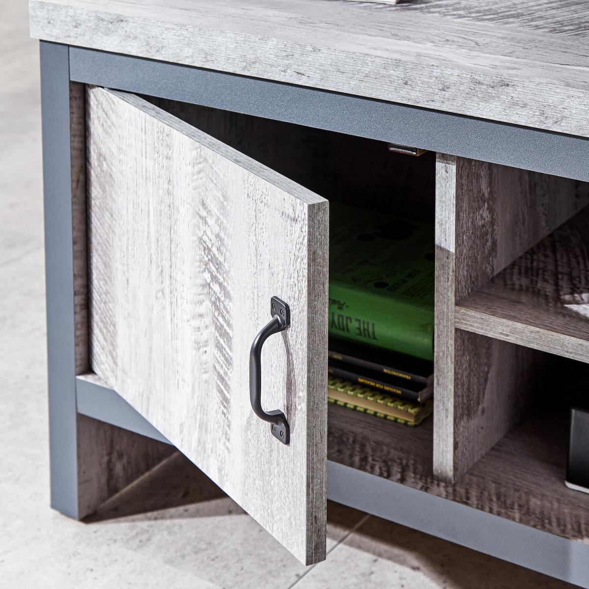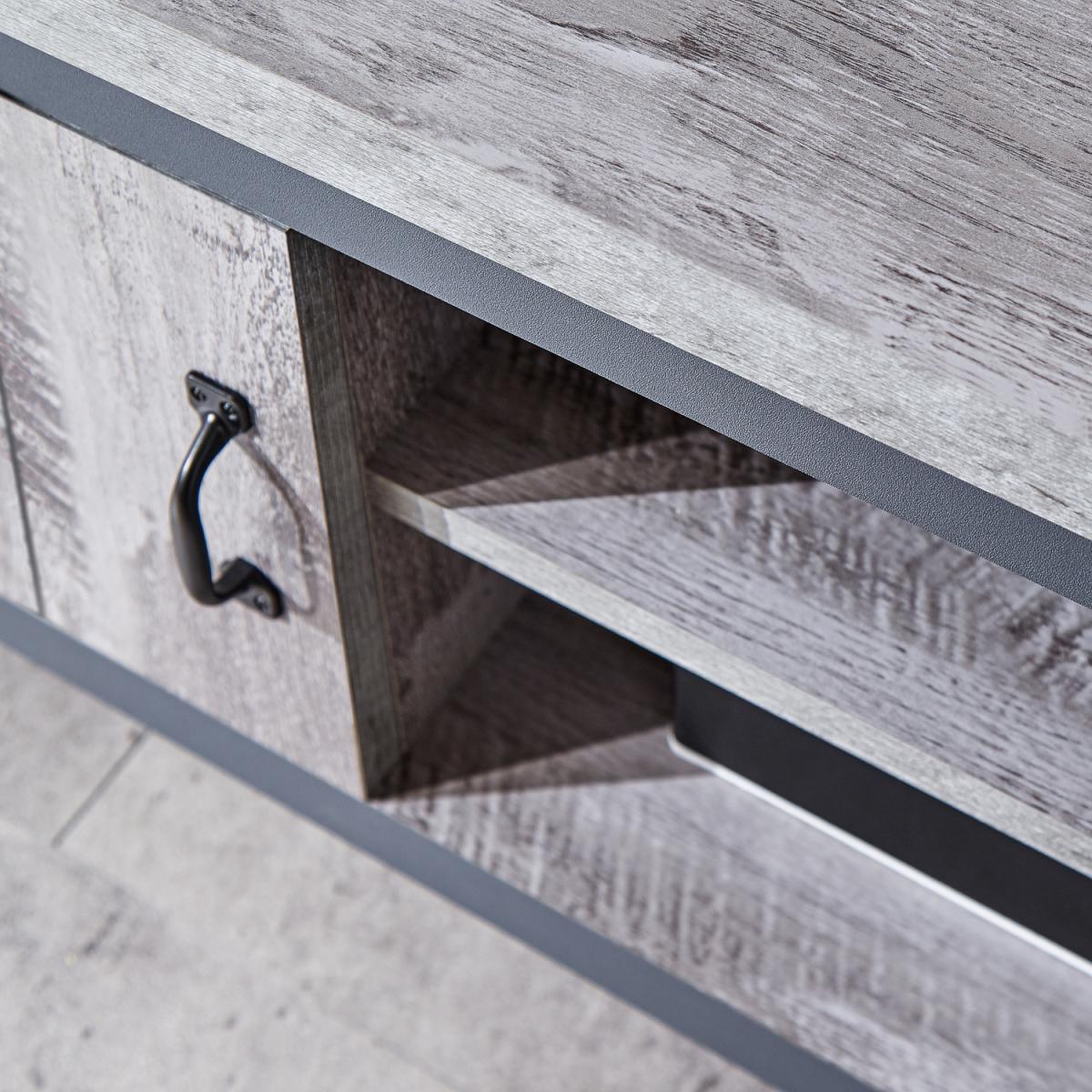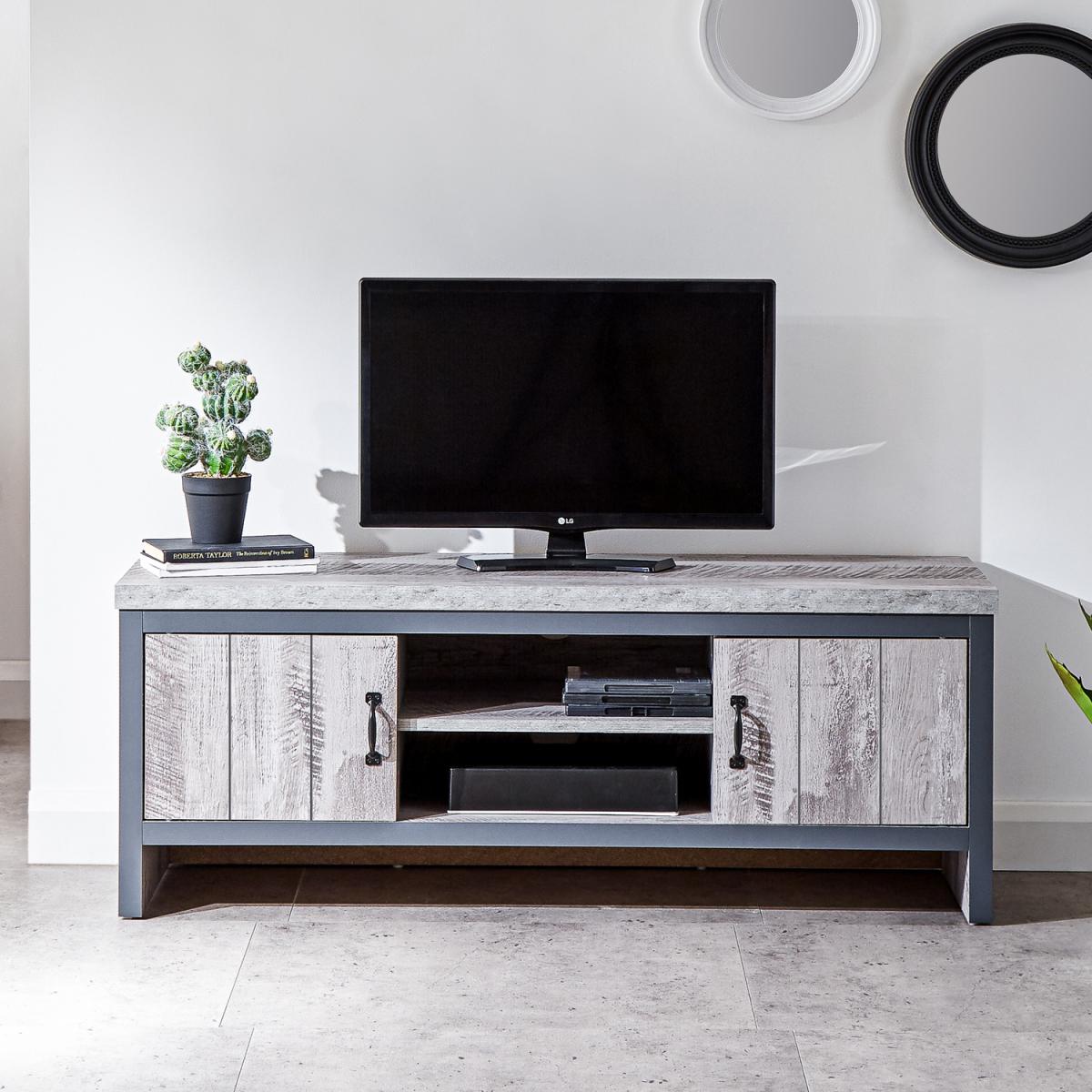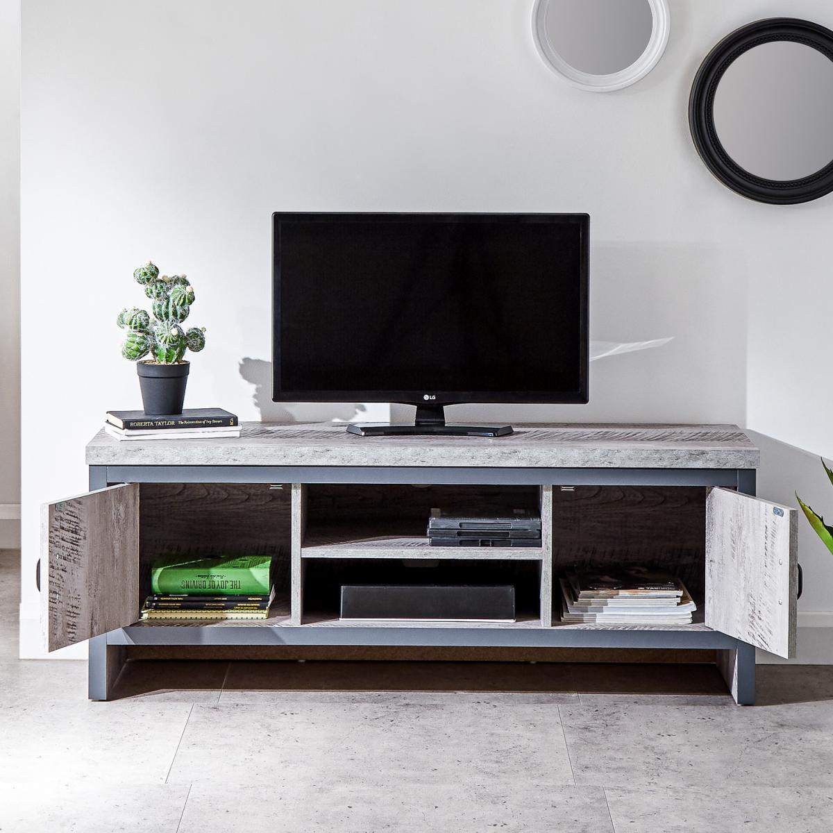 Even if you have only the most basic TV tech - TV screen plus viewing box or DVD player - you need somewhere to put it. If you'd prefer that your furnishings reflect an industrial aesthetic, this TV unit from the Boston range is a perfect choice. The unit's neat construction pairs a central open shelving section with a pair of magnetic door-fronted cupboards in a chunky format that screams urban chic. The 30mm top panel is complemented by a thick frame in contrasting dark grey. Ideal for an understated interior.