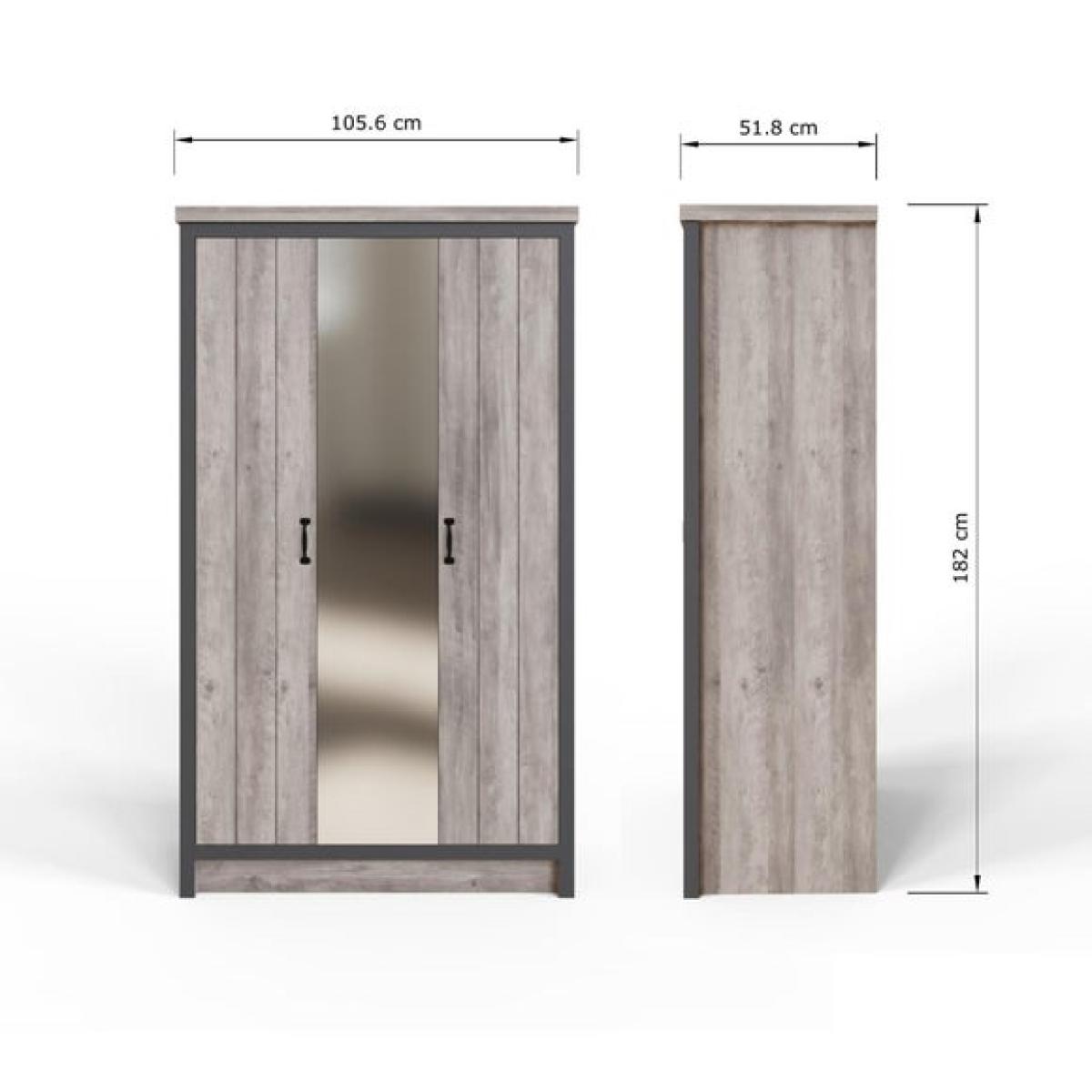 * Full length mirrored centre door * Panelled design with matt black handles * Hanging rail and shelving inside * Industrial style with modern touches The Boston 3 Door Mirrored Wardrobe brings together style and storage in one smart piece. Its panelled doors and matt black handles give it a modern industrial edge, while the full length centre mirror adds everyday practicality. Inside, there is a hanging rail and shelving to help keep clothes, shoes and accessories organised. The design suits a range of interiors, from contemporary to more relaxed spaces. It is built to offer generous storage without taking up too much room. A great choice for bedrooms that need both function and personality.