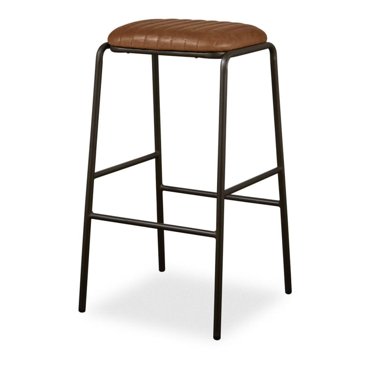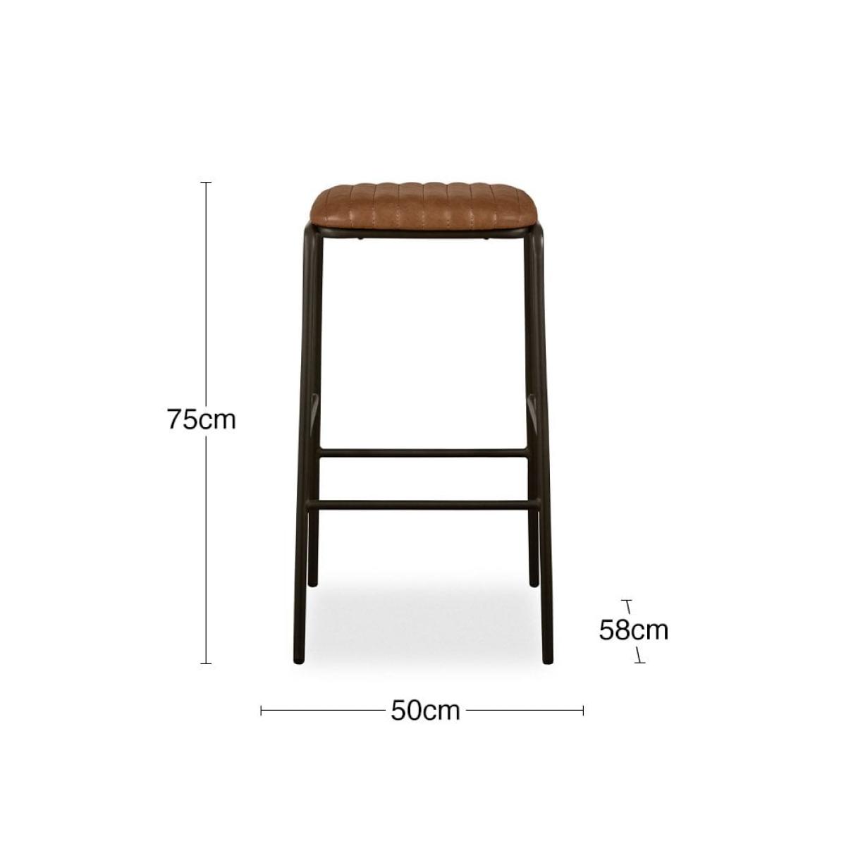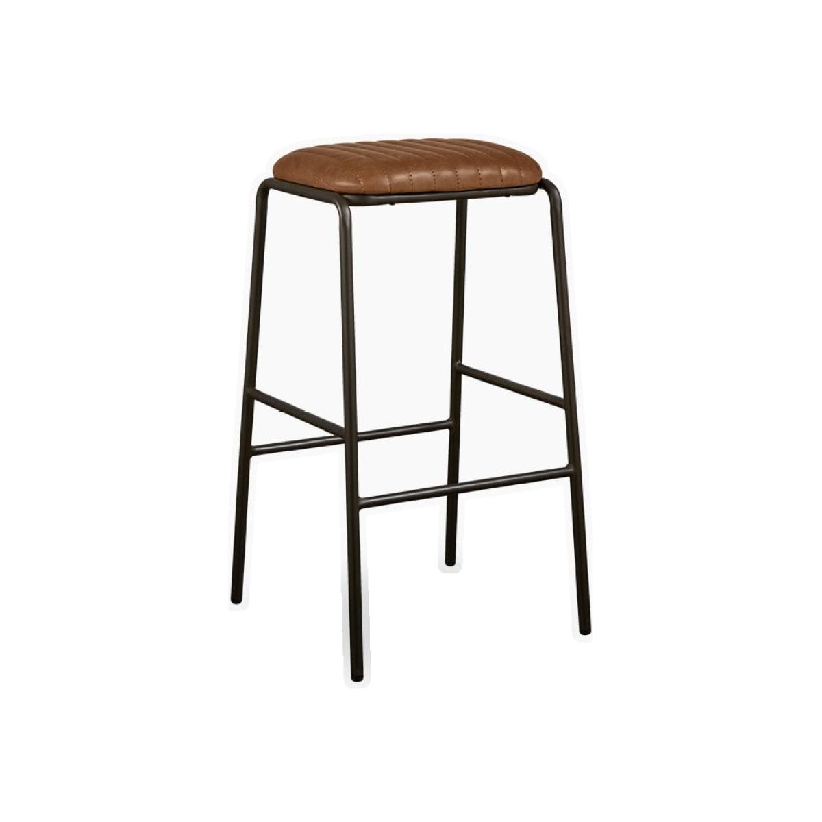 Introducing the Boston Bar Stool; a fresh take on a classic industrial design, this vintage tan faux leather upholstered bar stool without back features a padded seat and a black metal frame with a built-in footrest. Upgrade your kitchen breakfast bar or counter area without compromising comfort. View The Boston Range