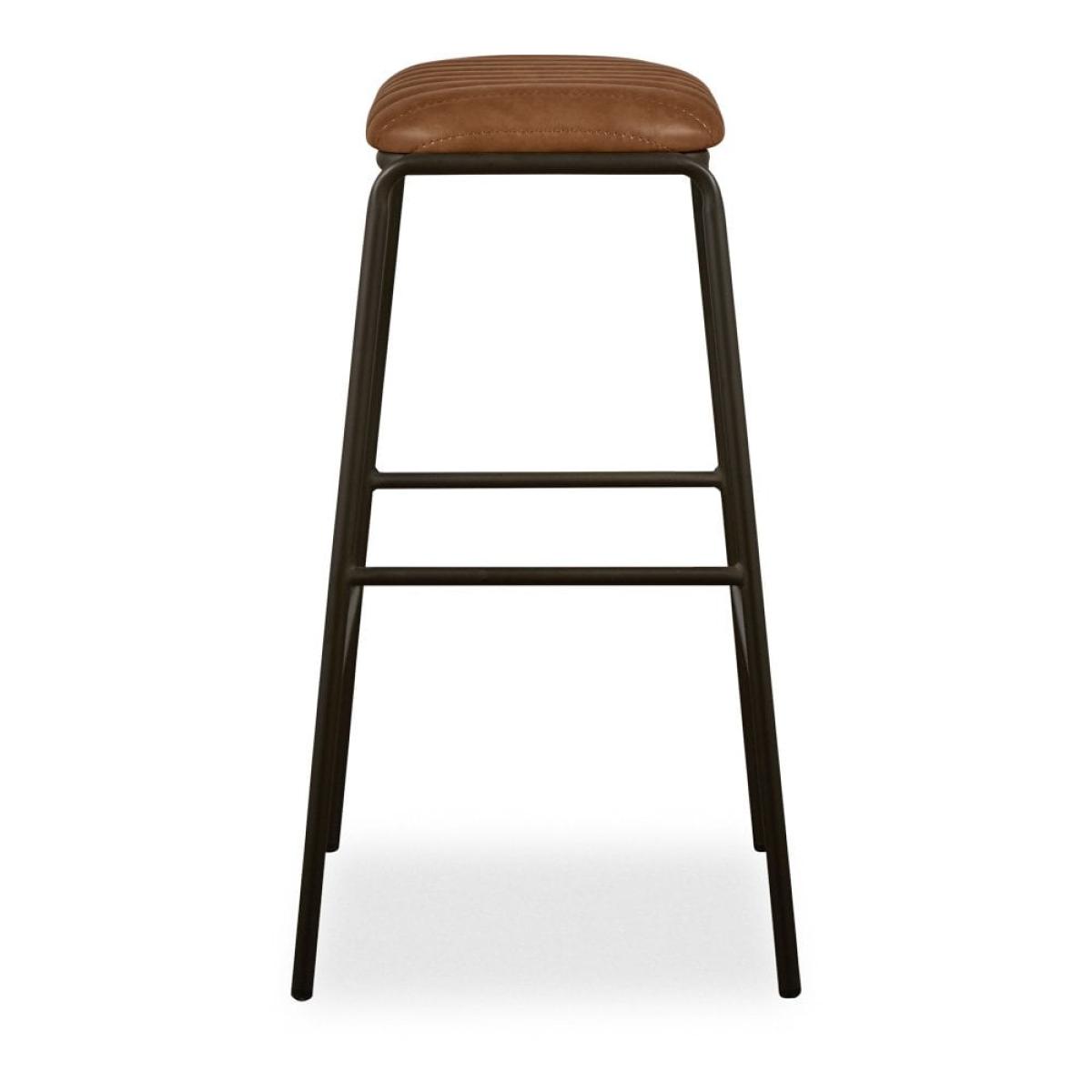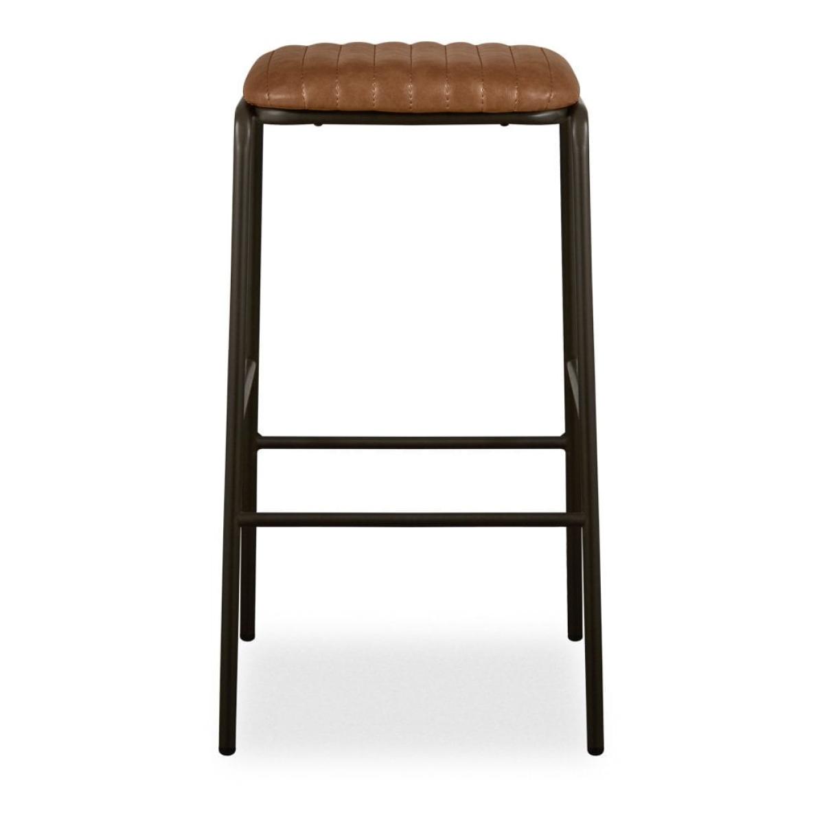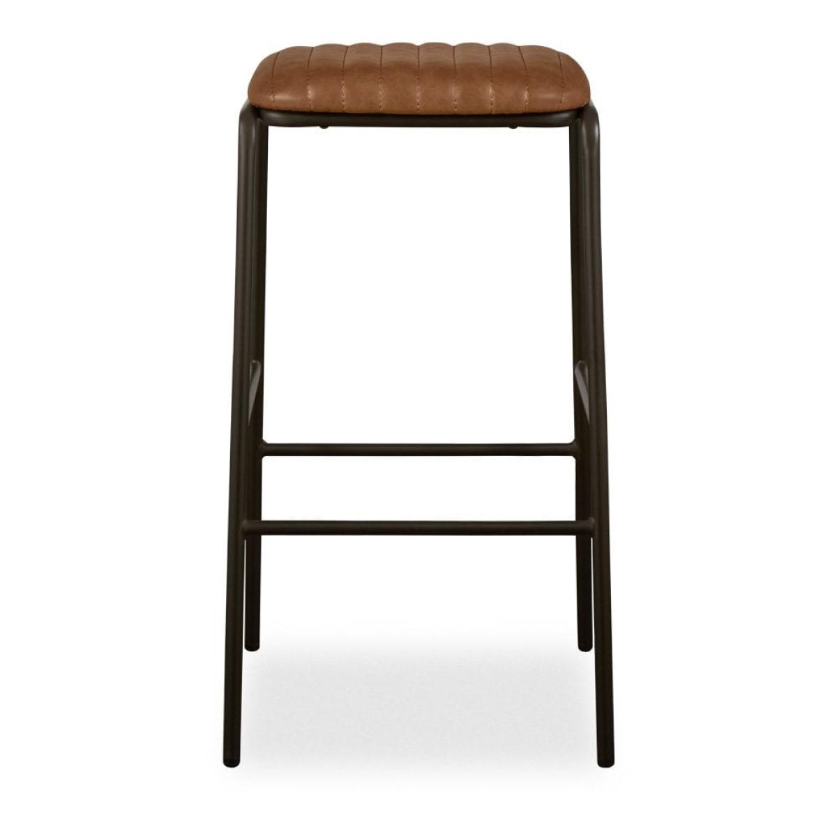 Introducing the Boston Bar Stool; a fresh take on a classic industrial design, this vintage tan faux leather upholstered bar stool without back features a padded seat and a black metal frame with a built-in footrest. Upgrade your kitchen breakfast bar or counter area without compromising comfort. View The Boston Range