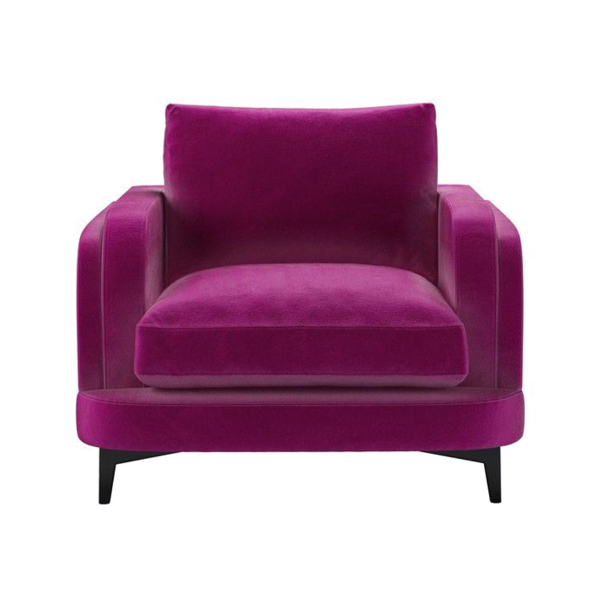 I love this armchair for its bold colour and plush velvet finish-it instantly elevates any room. The peony cotton mat velvet adds a luxurious touch while remaining practical for everyday living. It’s a versatile piece that works wonderfully in contemporary, eclectic, or even more traditional interiors when styled with contrasting textures and colours. For styling tips, pair it with a neutral or muted palette in surrounding furniture to let the chair stand out, or mix with other rich fabrics like tweed or leather for a layered look. Its curved arms and cosy depth make it perfect as a statement piece or a comfortable spot to unwind, especially when accessorised with a few decorative cushions.
