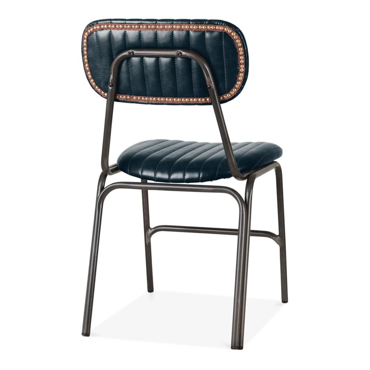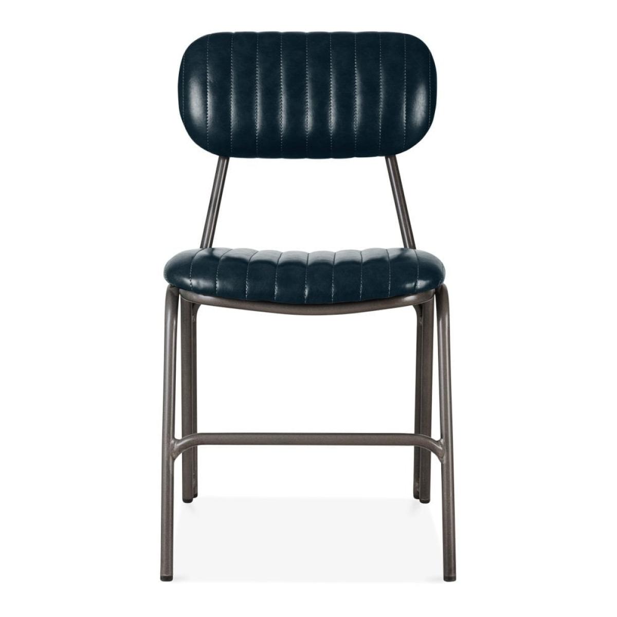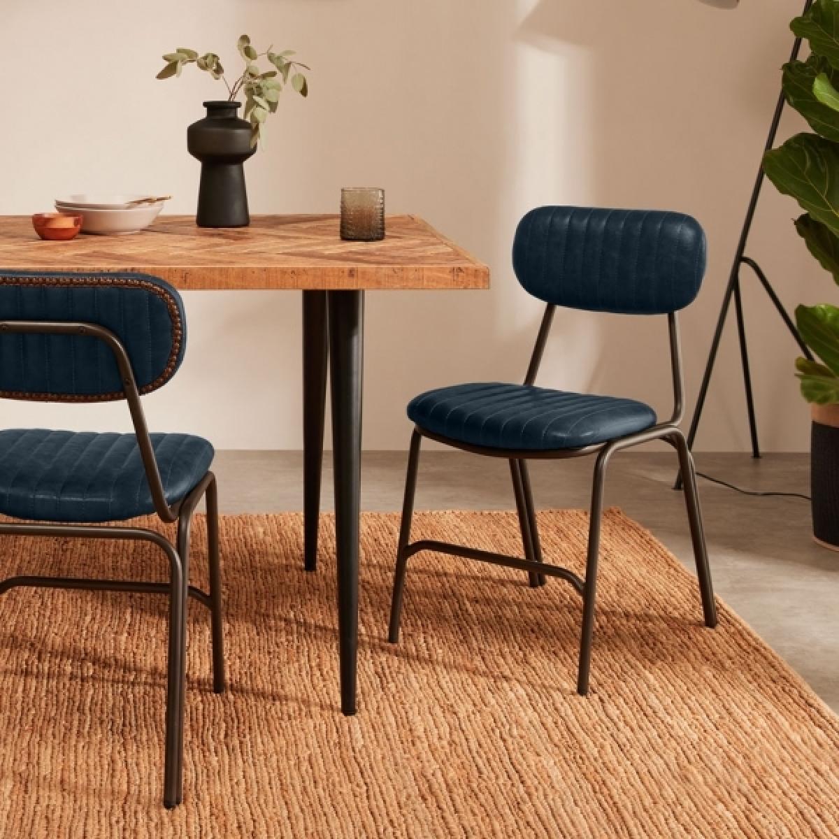 Showcasing the best of industrial design, the Boston dining chair is upholstered in soft dark blue faux leather with padded seat for extra comfort. Featuring ribbed backrest and slim dark gunmetal legs, the Boston is a modern chair for your dining room or kitchen. View The Boston Range