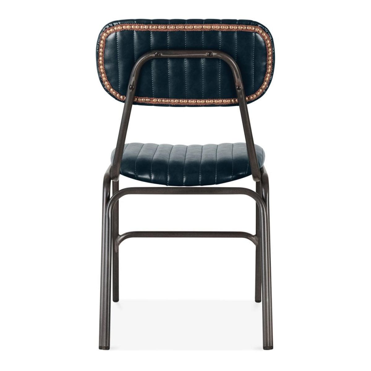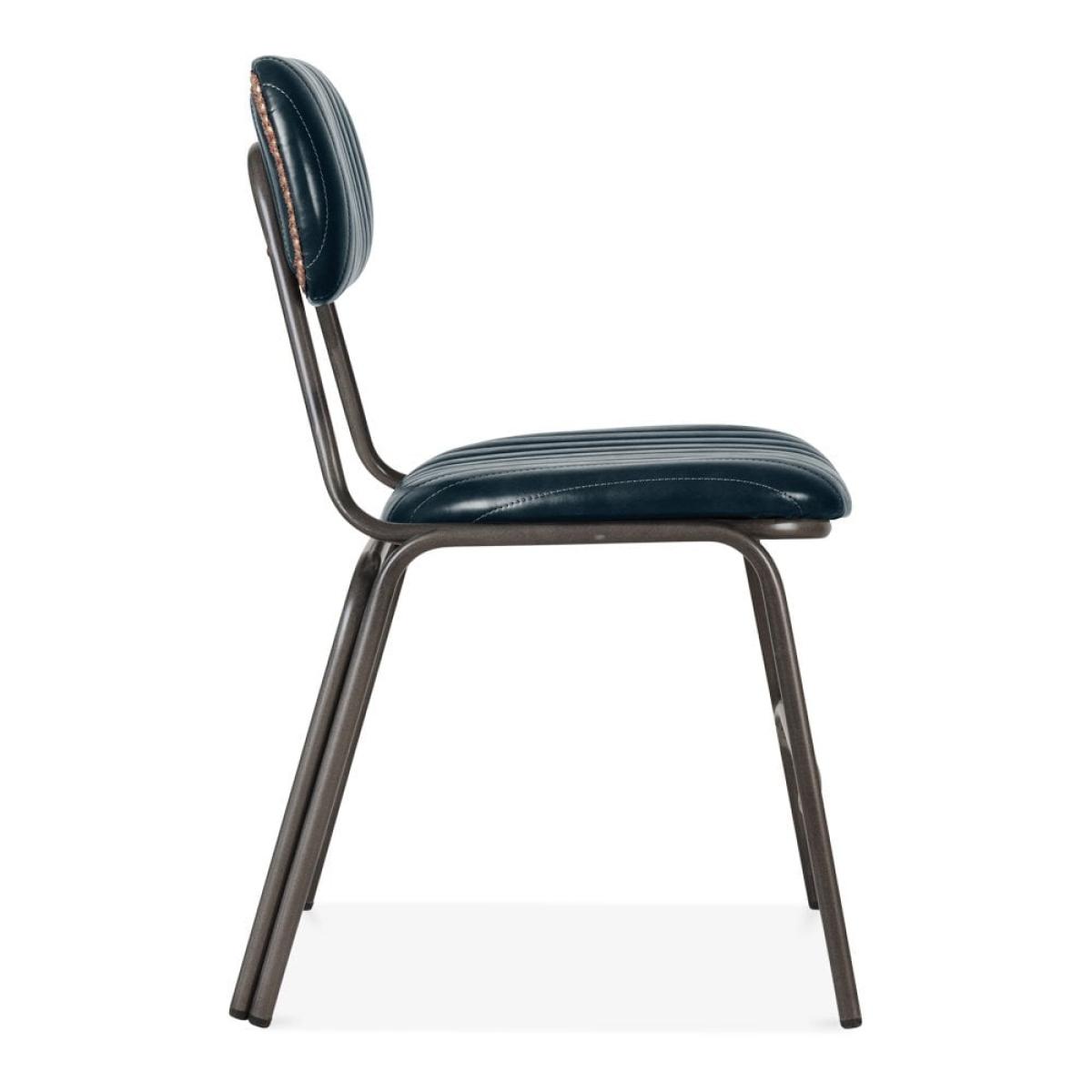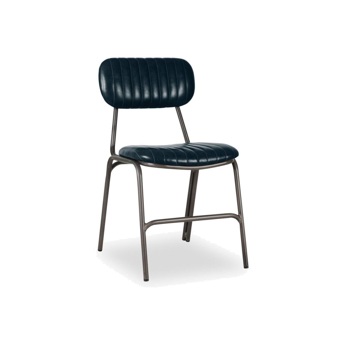 Showcasing the best of industrial design, the Boston dining chair is upholstered in soft dark blue faux leather with padded seat for extra comfort. Featuring ribbed backrest and slim dark gunmetal legs, the Boston is a modern chair for your dining room or kitchen. View The Boston Range