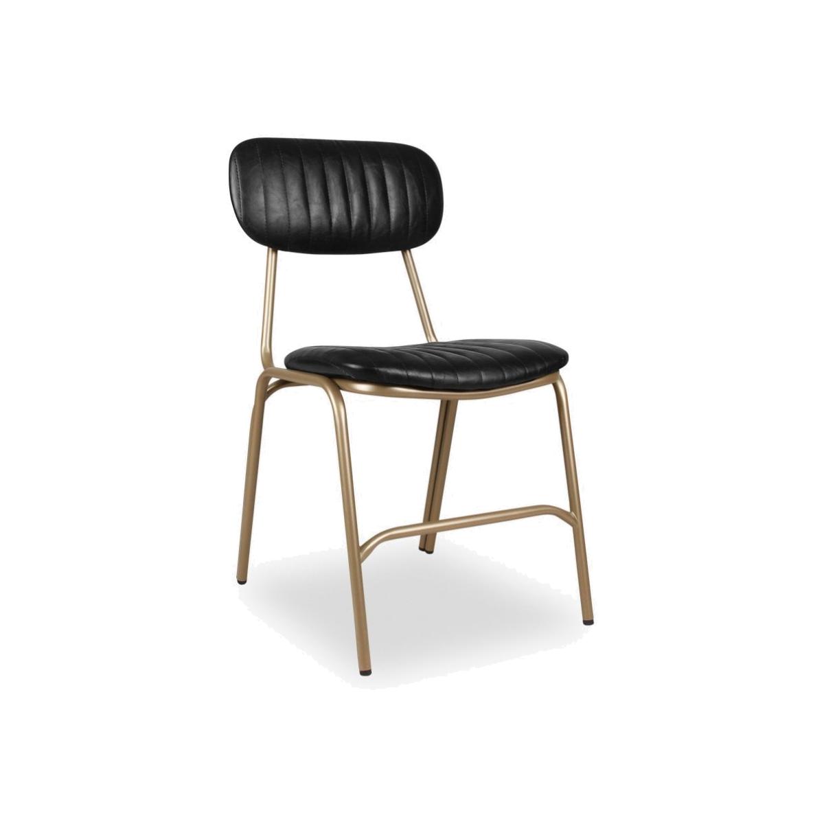 Showcasing the best of industrial design, the Boston dining chair is upholstered in soft vintage black faux leather with padded seat for extra comfort. Featuring ribbed backrest and slim metal legs, the Boston is a modern chair for your dining room or kitchen. View The Boston Range