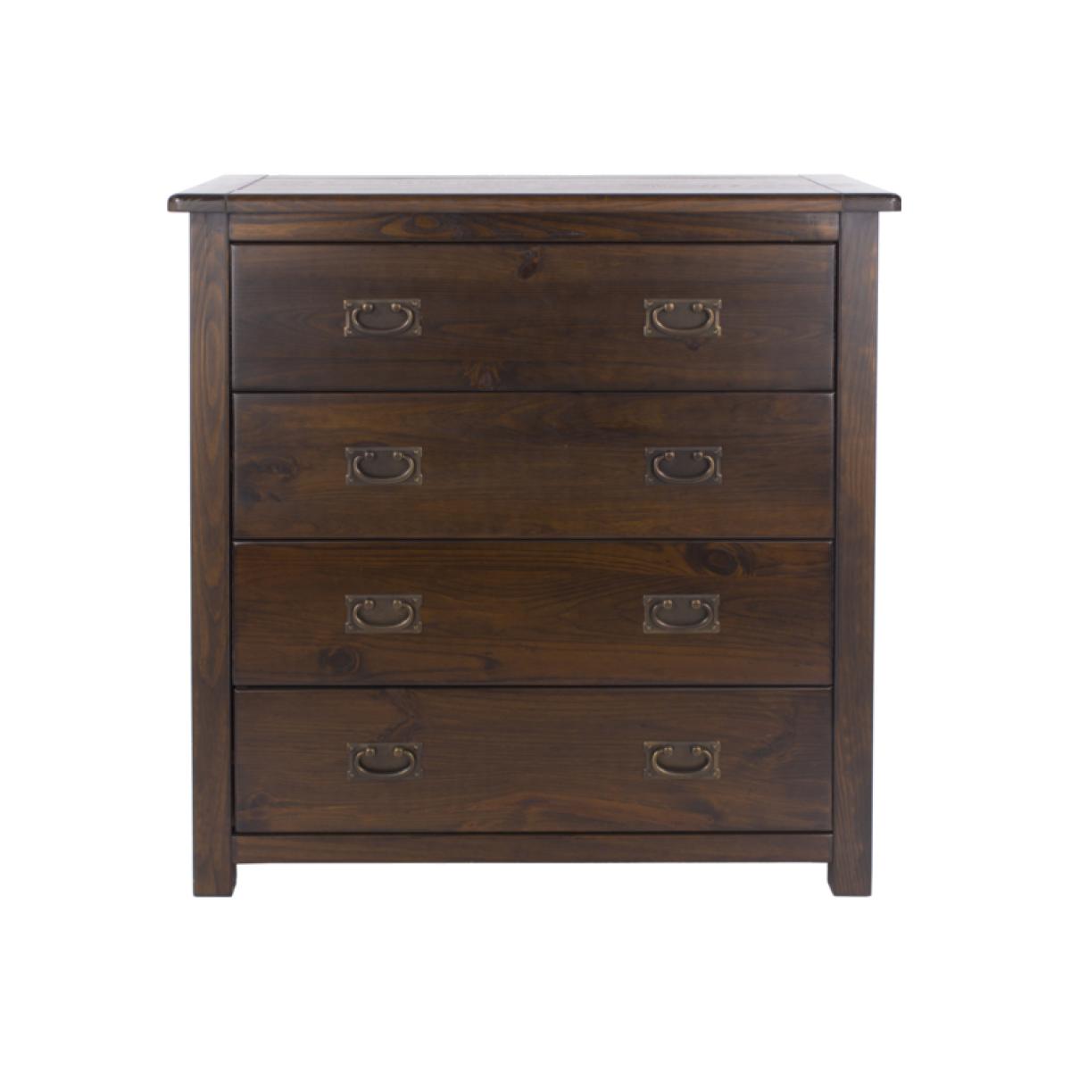 Add a touch of antique flair to your bedroom with this beautifully crafted Boston Four Drawer Chest. The sturdy and durable cabinet is perfect for storing your clothing, shoes and bedding, with the dark lacquered wood bringing richness to your lamps and ornaments that you can place on top. The simple design and vivid, dark tone of the cabinet creates a sense of opulence, with the antique classic styling on the metal handles adding to the luxury. Place in your bedroom, hallway or living room, with the rich design matching well with traditional, understated interior decor, perfect for turning your house into an elegant home.