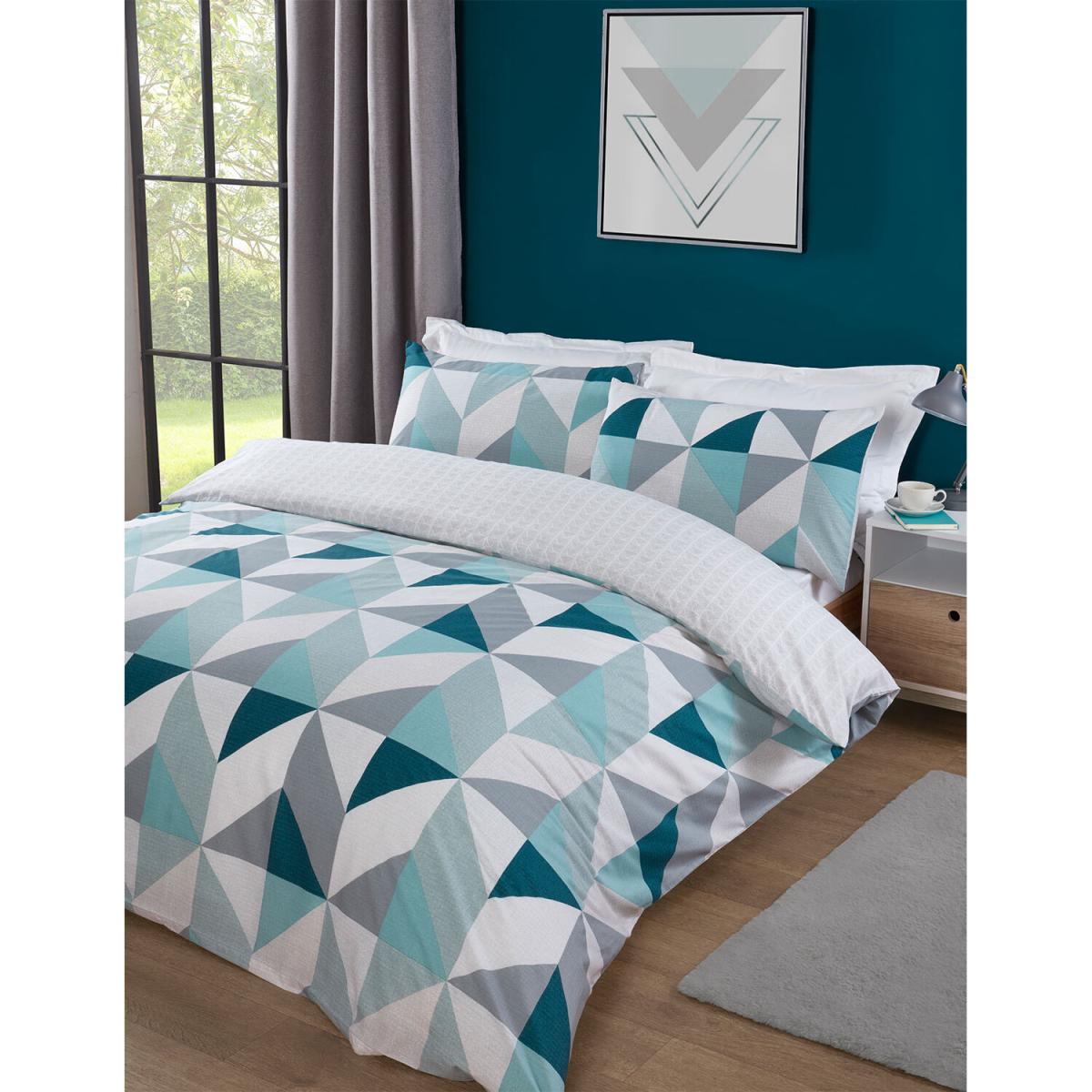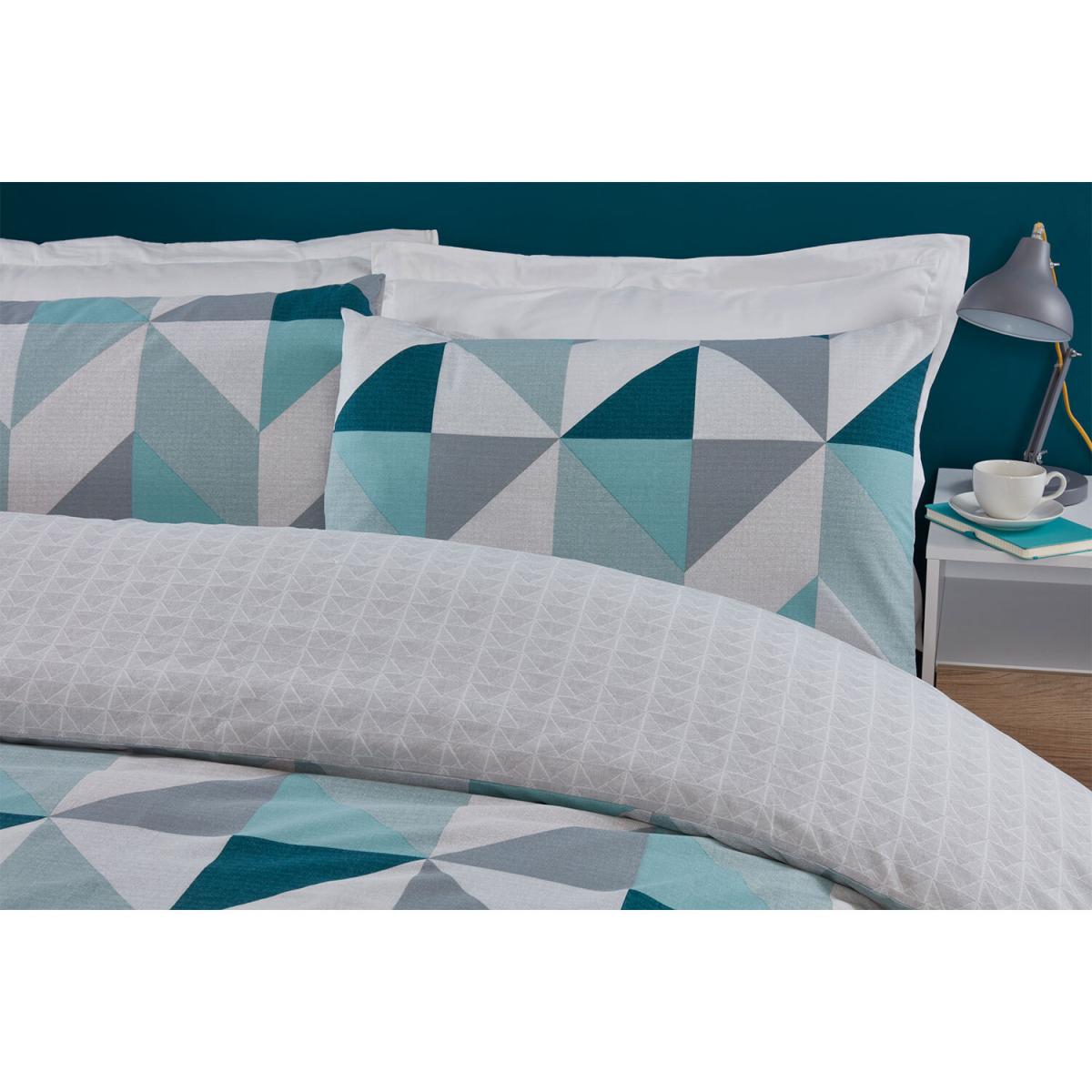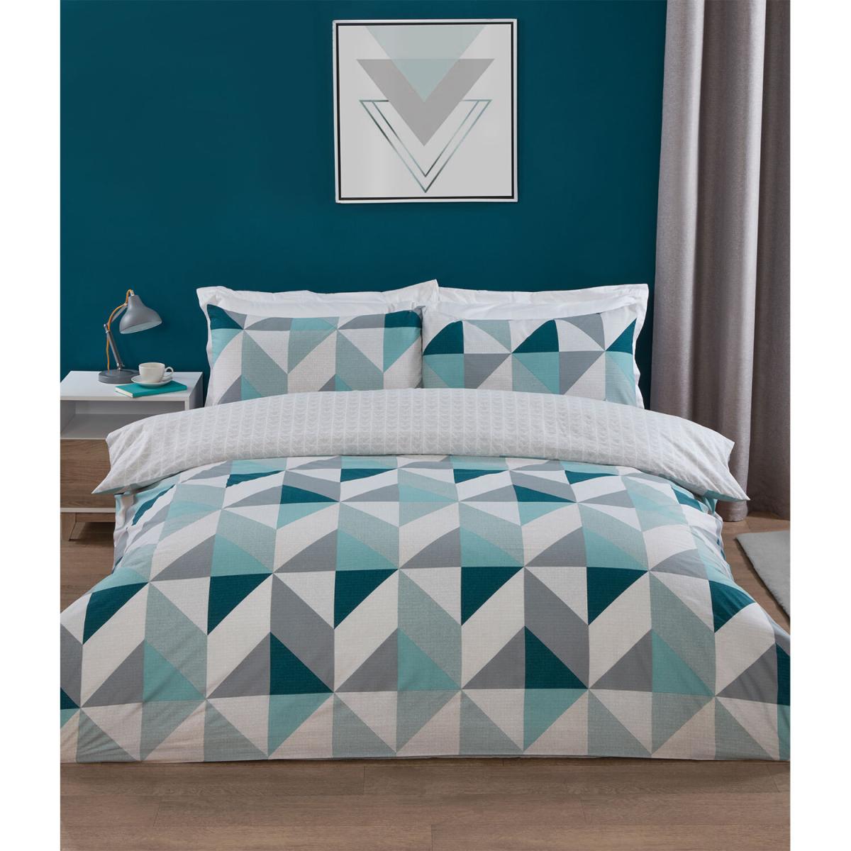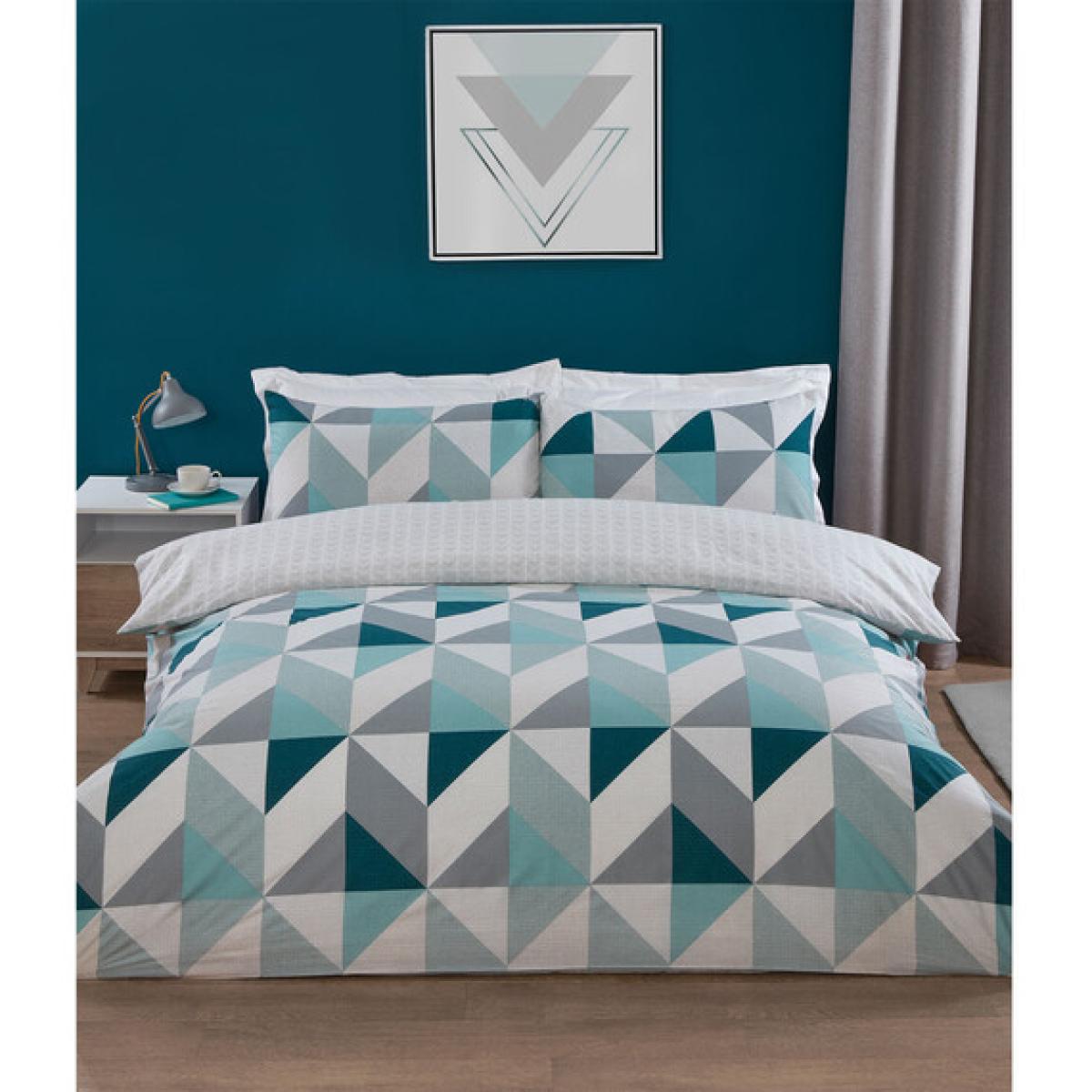 I love this duvet set for its contemporary geometric design and fresh teal hue, making it an ideal choice for adding colour and visual interest to a variety of interiors. It works particularly well in modern or minimalist bedrooms, where clean lines and bold patterns can really stand out. For styling tips, consider pairing with neutral or white bedding layers to let the geometry shine, and add textured accessories like a chunky throw or matte ceramics for depth. The single size is perfect for smaller bedrooms or guest rooms, giving a crisp, stylish aesthetic without overwhelming the space.
