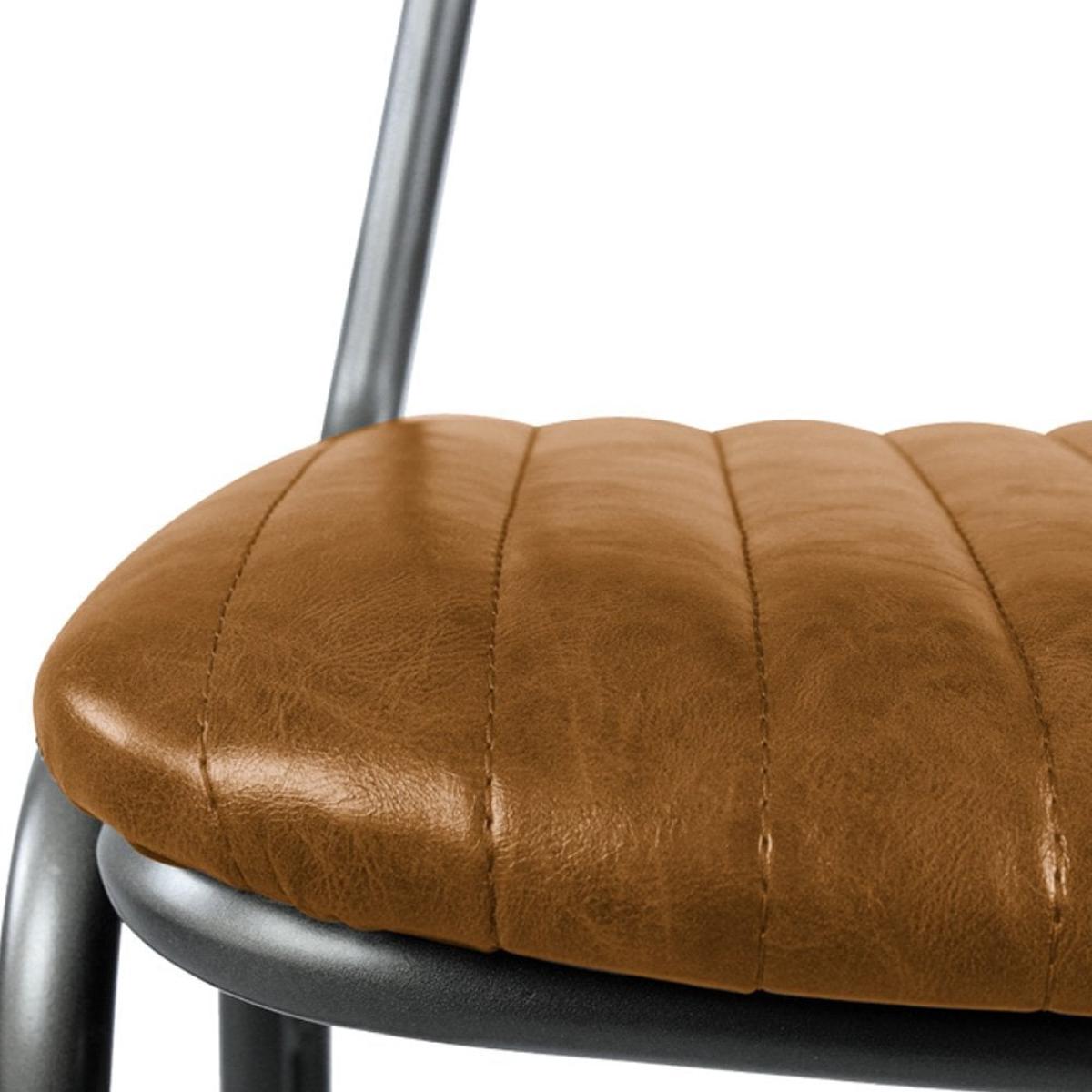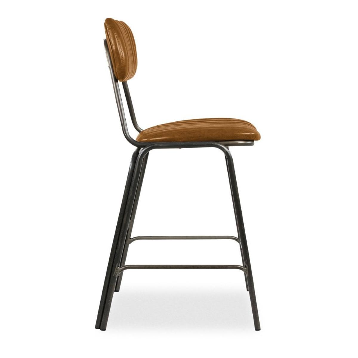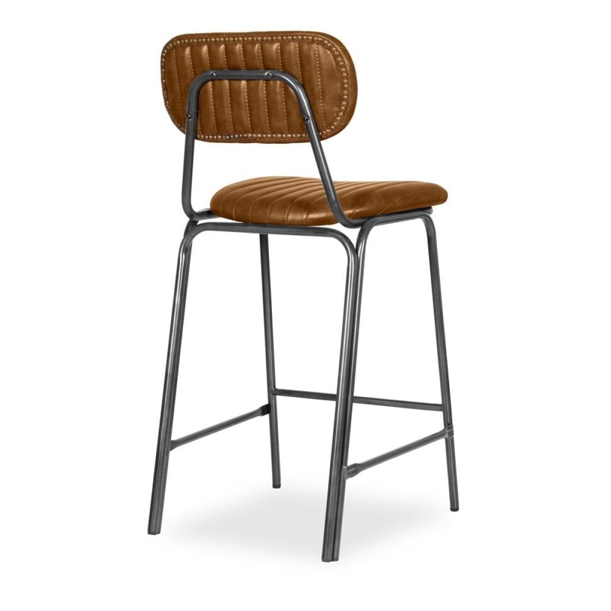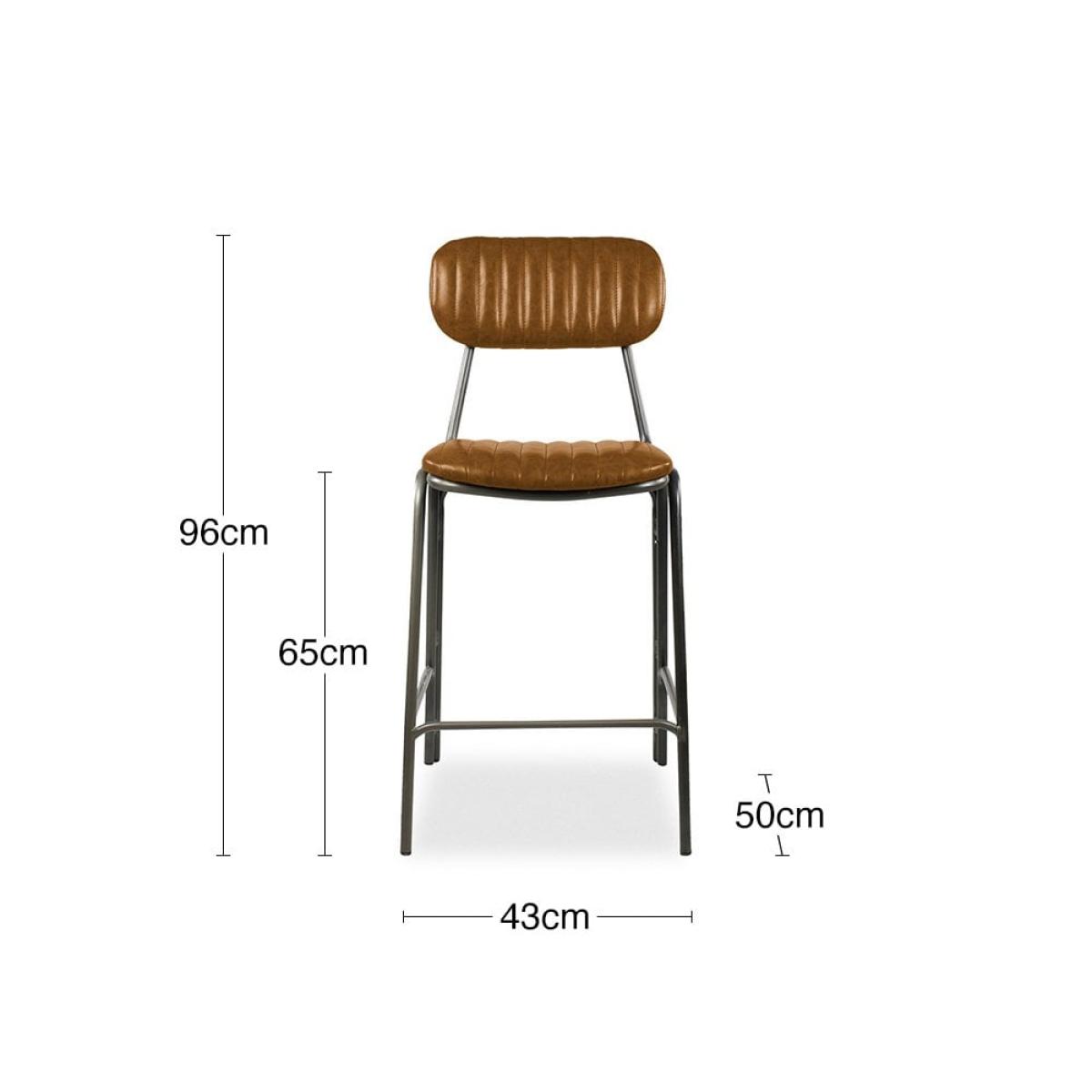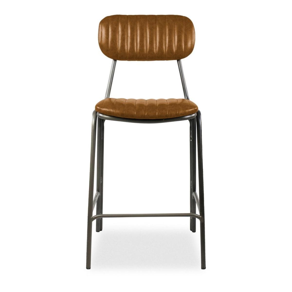 Introducing the Boston Kitchen Stool; a fresh take on a classic industrial design, this tan faux leather upholstered bar stool features a padded seat with a backrest and a gunmetal frame with a built-in footrest. Upgrade your kitchen breakfast bar or counter area without compromising comfort.