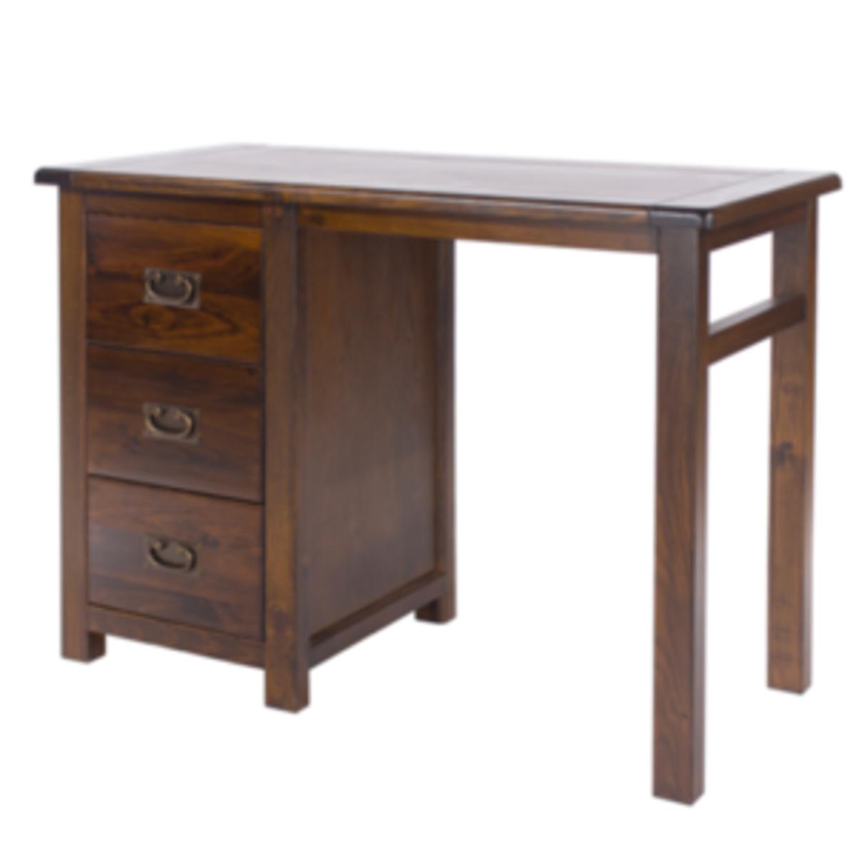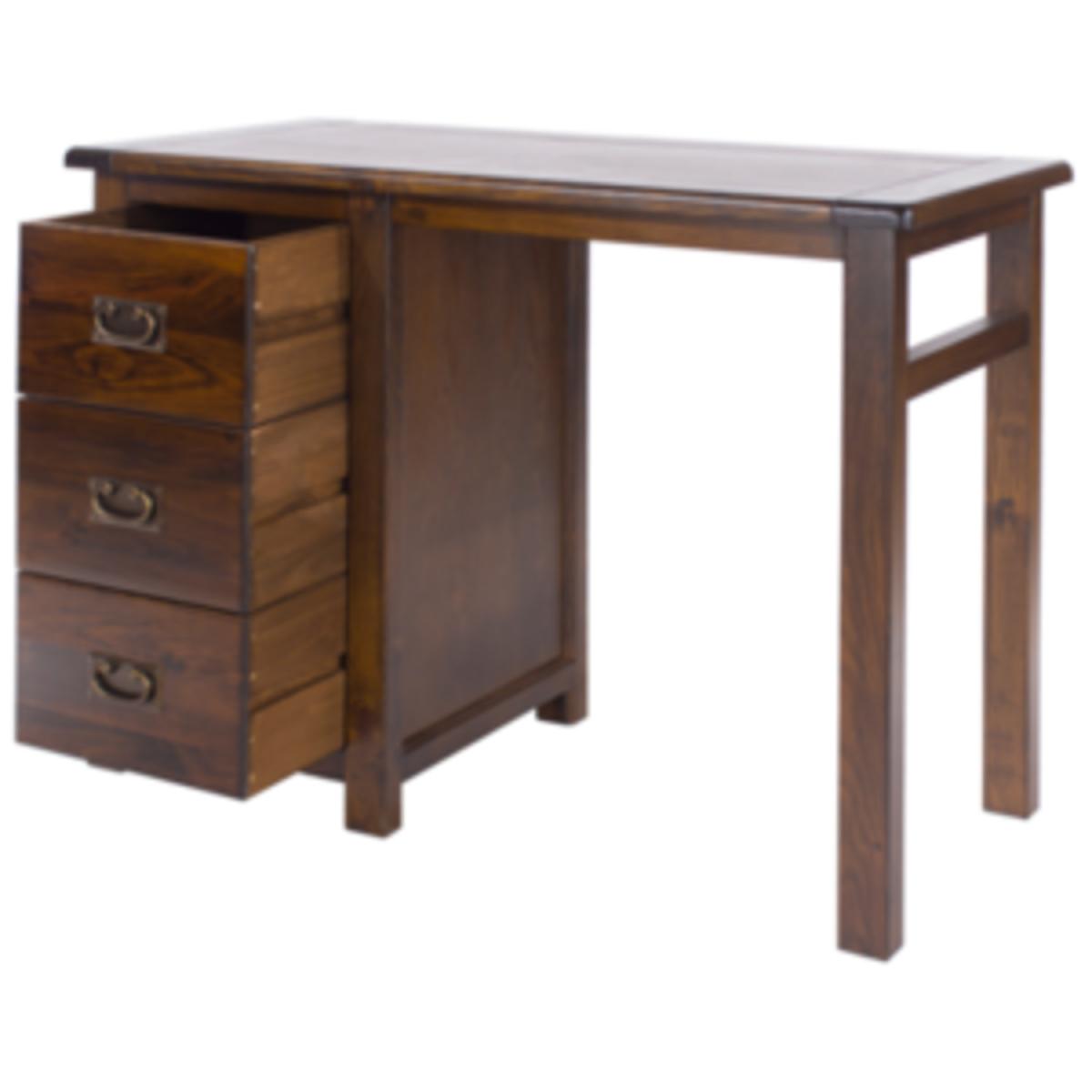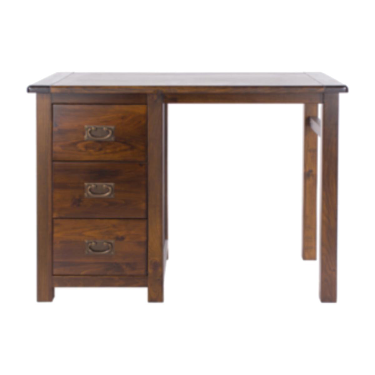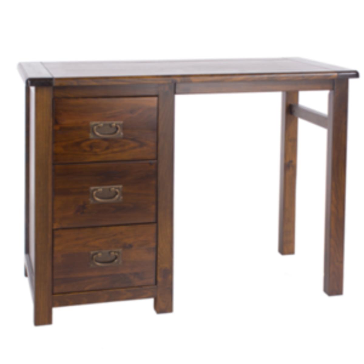 Add a vintage touch to your house with this Boston Pedestal Dressing Table. Featuring three dark lacquered wood drawers on one side, you can store away any make-up and accessories with ease. Finished with antique effect handles, this dressing table offers a historic decoration that many will love. Place in your bedroom, hallway or living room, with the rich design matching well with traditional, understated interior decor, perfect for turning your house into an elegant home.