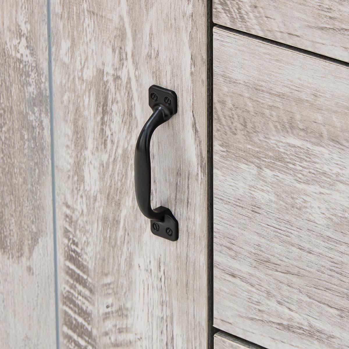 I’m a fan of this grey sideboard for its mix of weathered-wood effect and matt metal frame - it brings a relaxed yet structured feel to a room. It works equally well in a contemporary farmhouse kitchen or a minimalist living room, pairing nicely with soft linens and matte ceramics. For styling, group a couple of low-profile vases or sculptural bowls on one side of the top, balance them with a round wall mirror or framed art above, and leave the other side clear to keep the look fresh. Inside, use the drawers for table linens or home-office supplies and the cupboards for larger items such as platters, games or tech components.