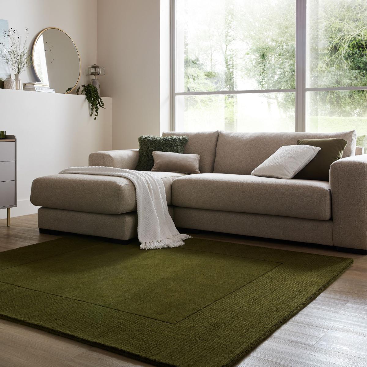 * Hand Crafted rug* Thick wool pile* Cut and loop pile* Available in a range of colours Introduce the latest trend to your home with this stunning rug that features a subtle edge detail that draws attention to your stylish living space. The Boston Wool Rug is luxuriously handmade from 100% wool by highly skilled weavers. Each fibre has been individually attached to create a contemporary rug that feels warm underfoot and can even improve sound insulation for a quieter and comfier room. Versatile and hardwearing, so do not be afraid to show this stunning rug of in high traffic areas in your home. Don’t forget to buy our anti-slip mat[ here]( http://www. dunelm. Rug pictured is 160cm x 230cm. For regular cleaning, we recommend using a suction-type vacuum to ensure that rotating brushes won't damage the wool pile. In the case of an accidental spillage, blot with a clean and dry cloth. Due to the woollen composition of our Boston Wool Border rug a small amount of fibre loss is normal, but simply trim loose fibres with household scissors. To keep your rug looking fresh and even rotate regularly to balance out wear. When you receive your rug, we recommend re-rolling with the shaggy pile facing outwards for 24 hours in a warm room. This will help your rug settle flat with ease. Our Boston Wool Border rugs can also be used on heated floors to keep you extra toasty! To be safe, keep away from fires such as lit candles and don't leave children and babies unsupervised on this rug. Please note: This product also contains latex.