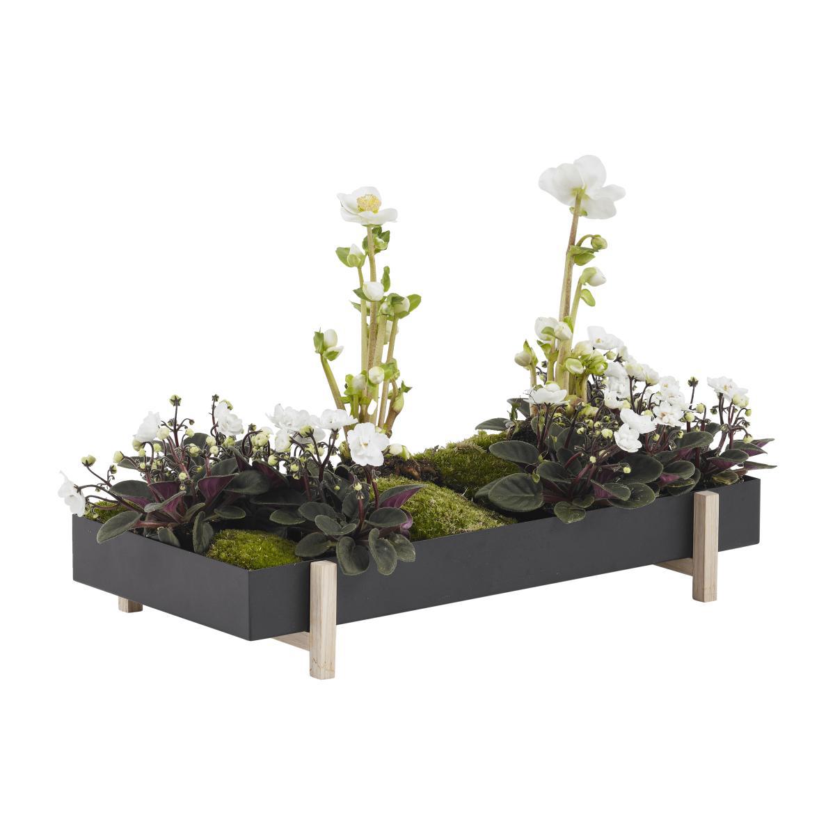 Created by the designers from the Thai studio "Atelier 2+", this plant tray mixes Scandinavian and Asian influences. Botanic Tray is a contemporary, poetic creation that means you’re always close to nature. Very decorative, this black metal tray resting on an ash base lets you compose a modern miniature garden, a designer oasis of greenery in your home. With its original flat shape, Botanic Tray elegantly introduces new proportions and suggests a new way of organising your plants. Arranged side by side in this tray, your plants will be shown off to best effect in an original way. The sober, uncluttered design of this flowerpot adapts to all your requirements: ornamental plants, bonsai, cacti, flowers, ferns, stones, moss, bark… Botanic Tray can be used all year round with seasonal flowers and plants. Botanic Tray evolves to meet your plant requirements of the moment! Unleash your inner artist and let your imagination run free to create your mini-indoor garden. Use Botanic Tray to create an incredible natural centrepiece, place it on a sideboard or console, or fill it with aromatic herbs in your kitchen… The wooden support lets air circulate and prevents condensation from forming.