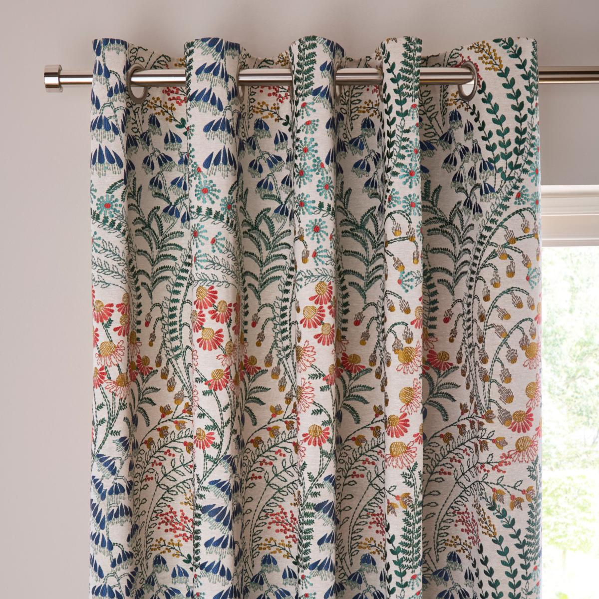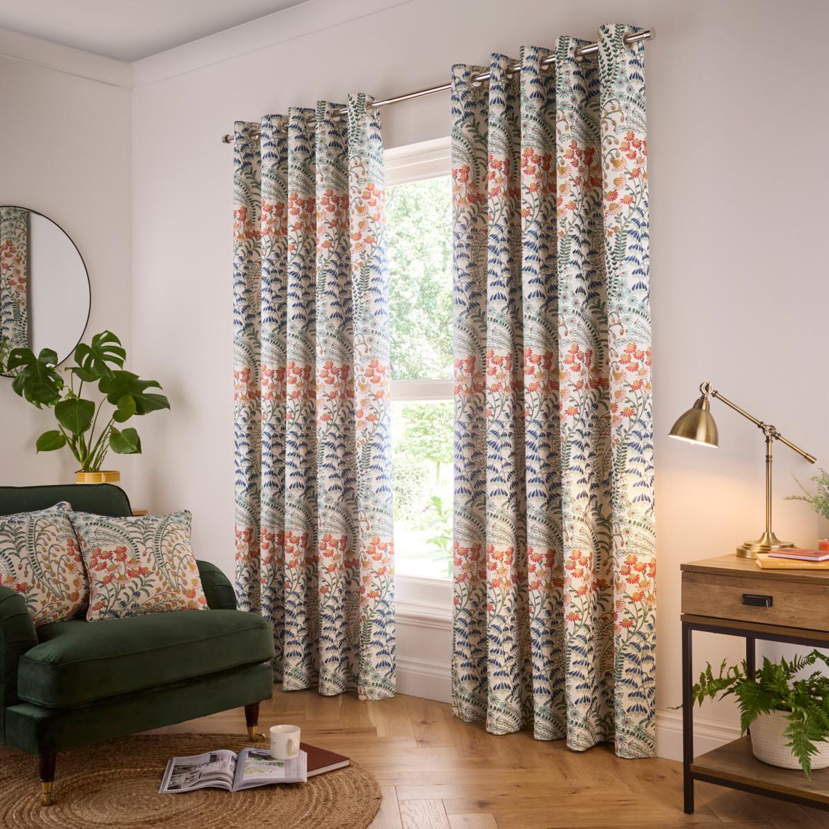 * Includes 2 x Curtain Panels * Modern, Stylish Eyelet Header * Colourful Palette & Design * Regular Lining * Available in Multiple Sizes These woven curtains offer a stunning floral trail in a wonderful colourful palette, offering a design that will suit various settings in any home. These luxury curtains have weighted corners and feature a timeless eyelet header,This collection is verified by OEKO-TEX® and independently tested for harmful substances as well as manufactured using sustainable processes under socially responsible working conditions.