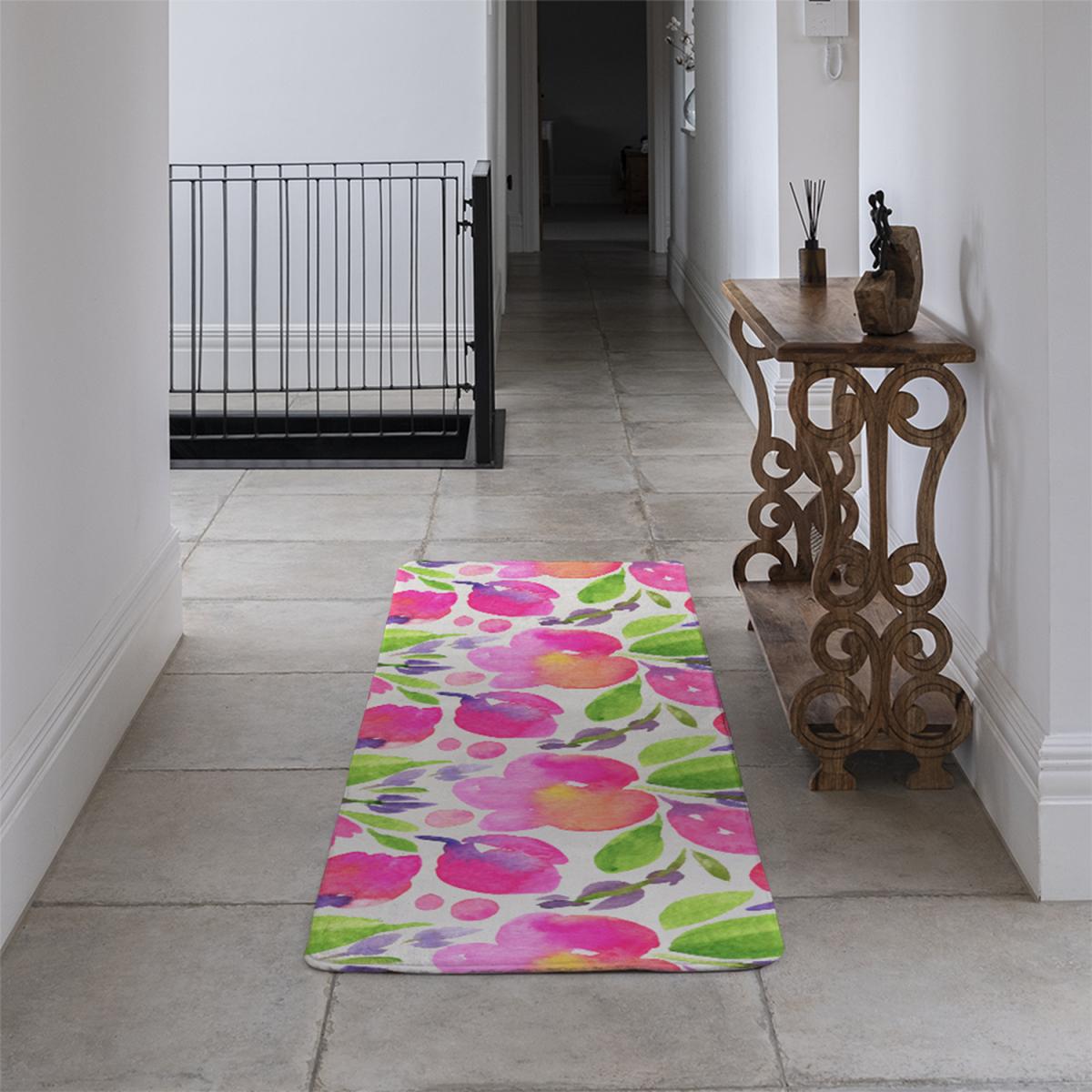 Botanical Background Runner Rug - Pink